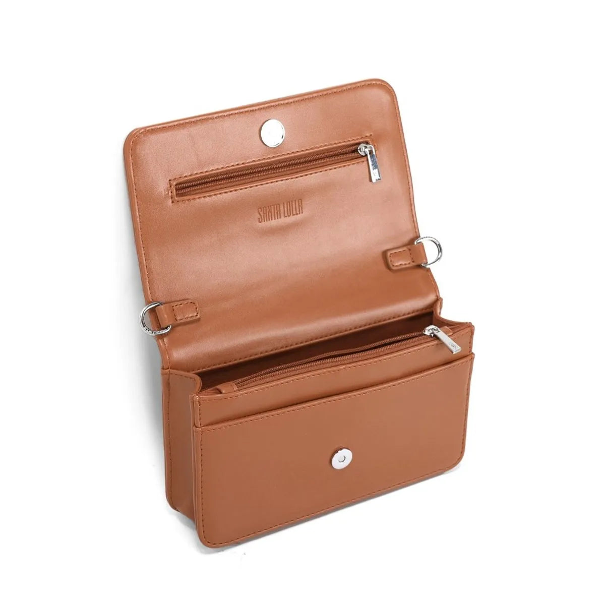 O interior bem organizado oferece espaço suficiente para carregar seus itens essenciais com segurança, enquanto a alça ajustável proporciona conforto e versatilidade no uso. O logo da Santa Lolla em destaque reforça a autenticidade e o glamour da peça.