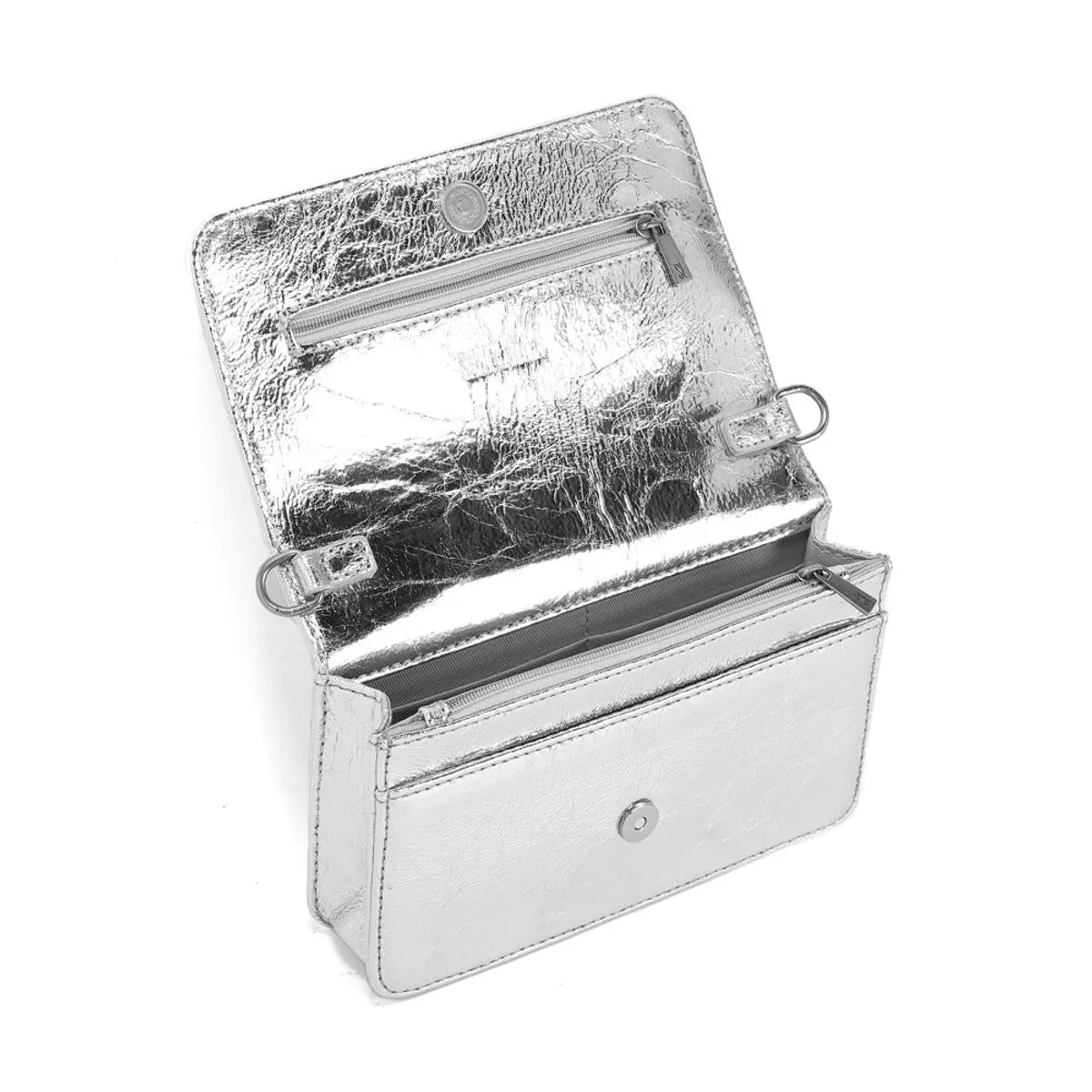 A Bolsa Metal Crinkle e Soft da Santa Lolla é um verdadeiro statement de moda! Com acabamento metalizado crinkle e soft, ela chama atenção pelo visual moderno e ousado, perfeito para quem adora brilhar em qualquer ocasião. Seu design compacto e elegante é ideal para complementar desde looks casuais até produções mais sofisticadas.