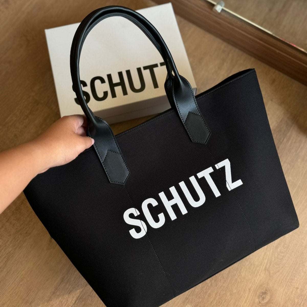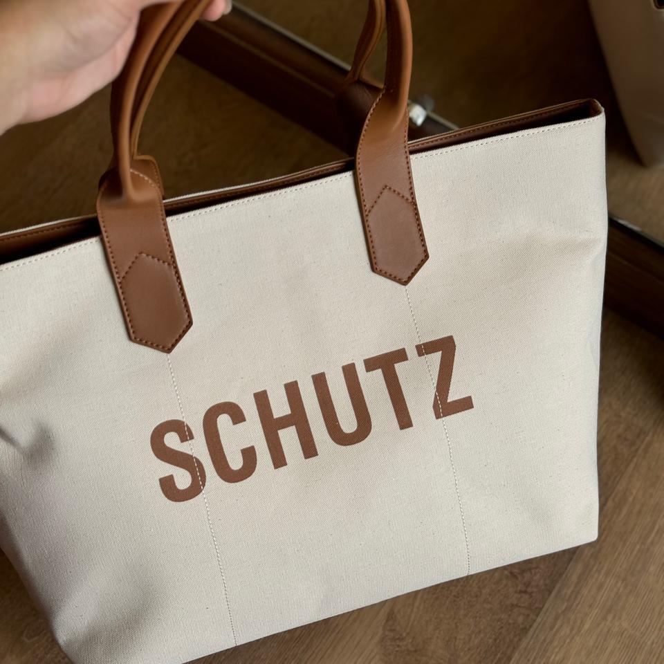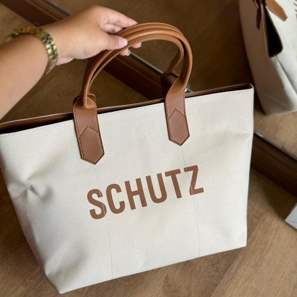 Essa bolsa shopping bag é a combinação perfeita de estilo e funcionalidade! Feita em lona com detalhes em couro preto, ela exibe o logo da Schutz em um contraste superfashion na parte frontal. Com amplo espaço interno, você pode levar tudo o que precisa com conforto e elegância. A alça de ombro longa proporciona praticidade, garantindo que você esteja sempre pronta para arrasar.