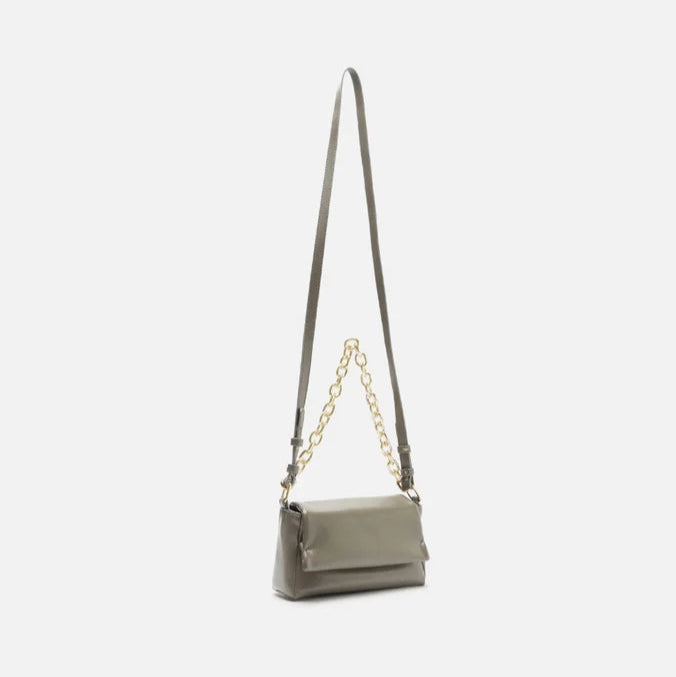 A bag com acabamento acetinado e alça em corrente é tendência! A escolha ideal para inserir um toque moderno e imponente nas produções. Aposta ainda no tom neutro e tem tudo para protagonizar seus looks!