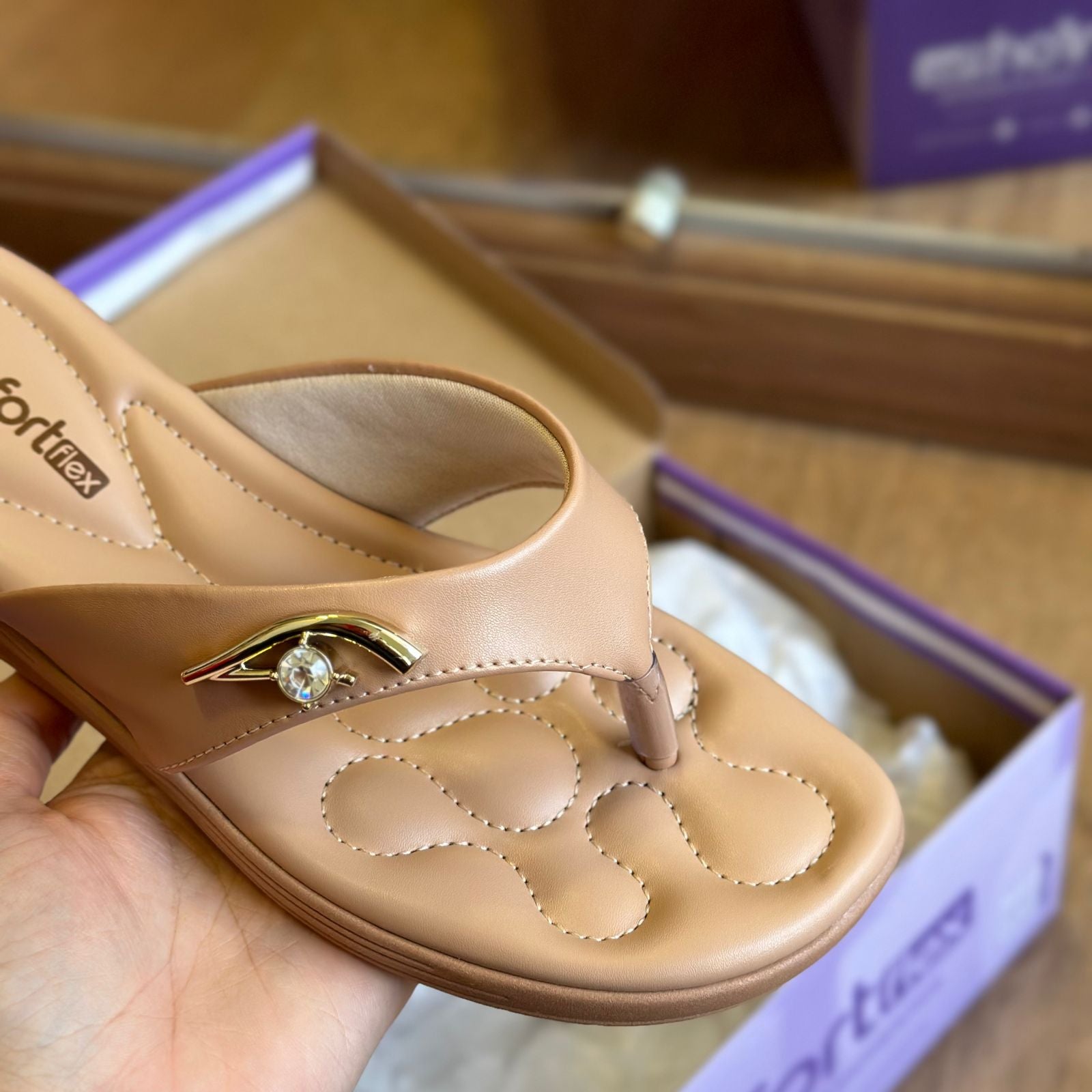 Dê um passo à frente no estilo e no conforto com nossas rasteiras exclusivas! Desenhadas para mulheres modernas que valorizam a elegância sem abrir mão do bem-estar, nossas rasteiras combinam design sofisticado com materiais de alta qualidade. A linha conta com sola em TR, que proporciona durabilidade e aderência, e uma palmilha de EVA conformado que entrega uma flexibilidade única Comfortflex. Com um salto de 2 cm, estas rasteiras oferecem a altura ideal para um caminhar confortável e estável. Versáteis e estilosas, nossas rasteiras proporcionam um toque de glamour e conforto em qualquer ocasião. Tecnologia SoftDay – Palmilha super macia, com maior conforto e extra maciez.