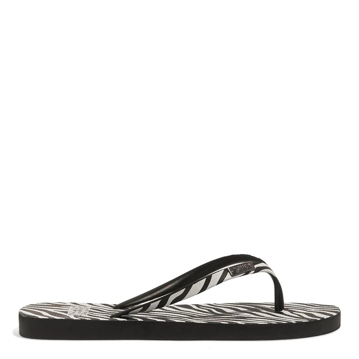 Chinelo estilo flip flop confeccionado inteiramente em borracha, proporcionando flexibilidade e conforto. O design incorpora uma estampa detalhada de animal print no padrão onça, cobrindo toda a palmilha. As tiras possuem formato fino e acabamento liso, oferecendo um visual delicado e minimalista. O solado flat apresenta textura antiderrapante para maior segurança ao caminhar. Modelo ideal para ocasiões informais, combinando praticidade e um toque sofisticado.
