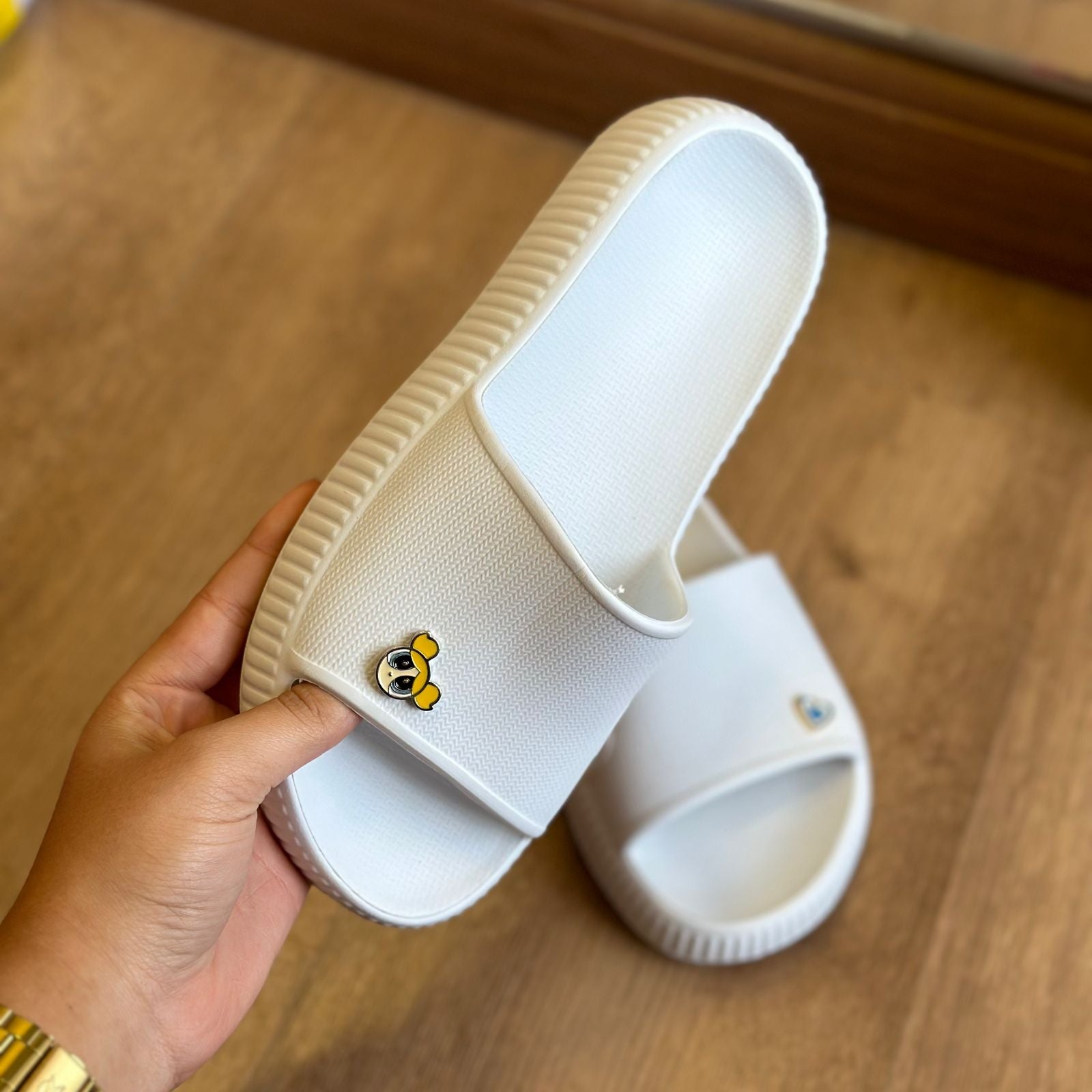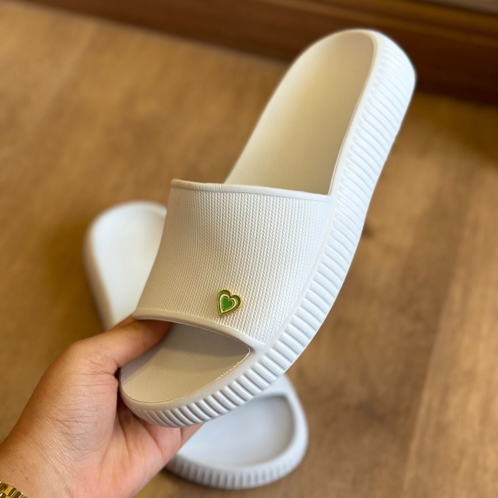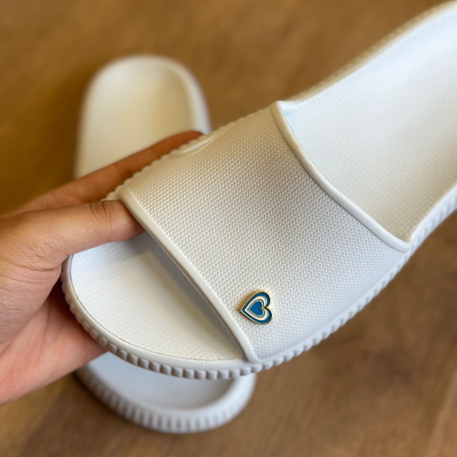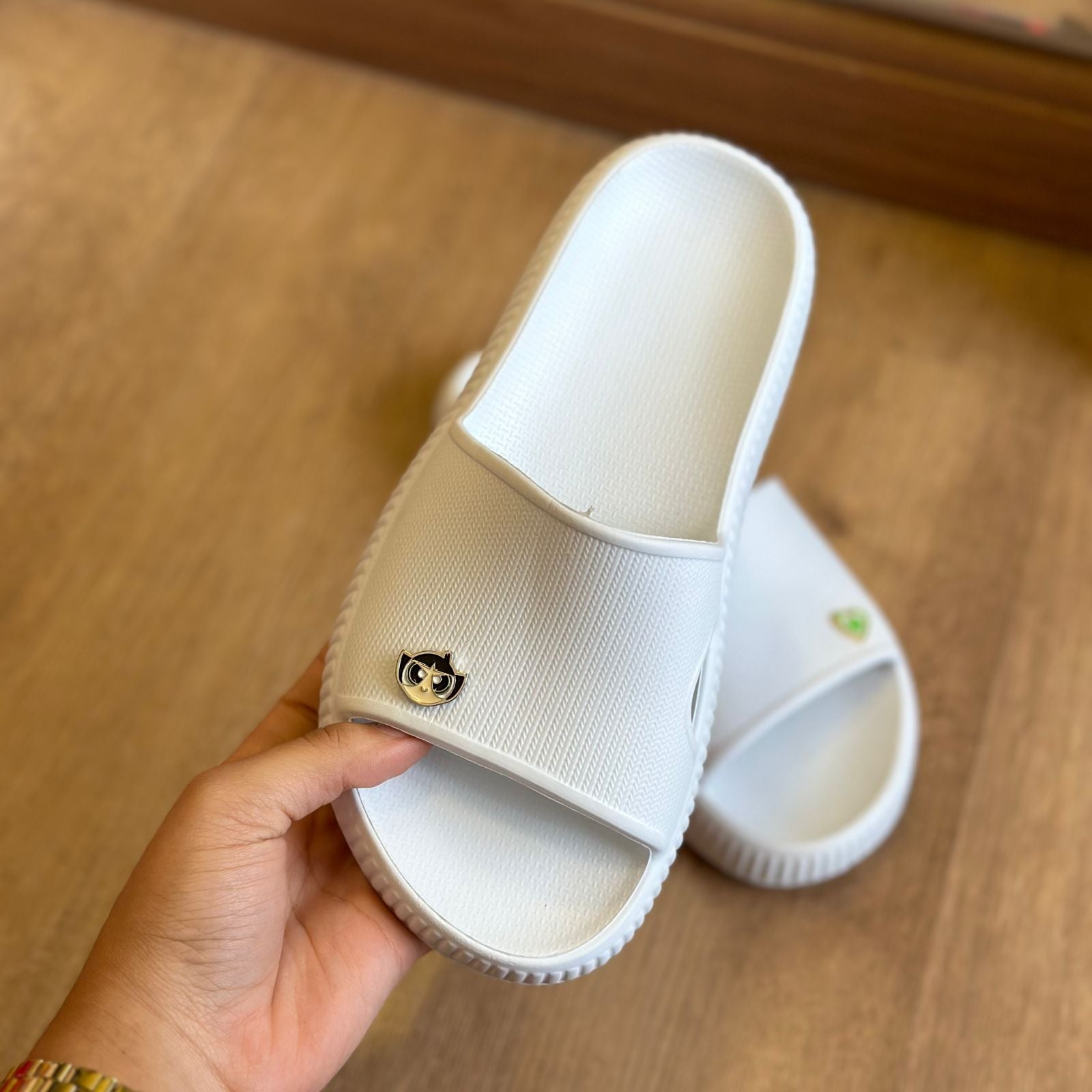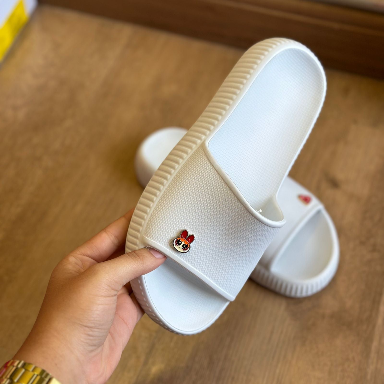 Chinelo Mikelly Nuvem (Branco) + Pin Meninas Super Poderosas e Coração