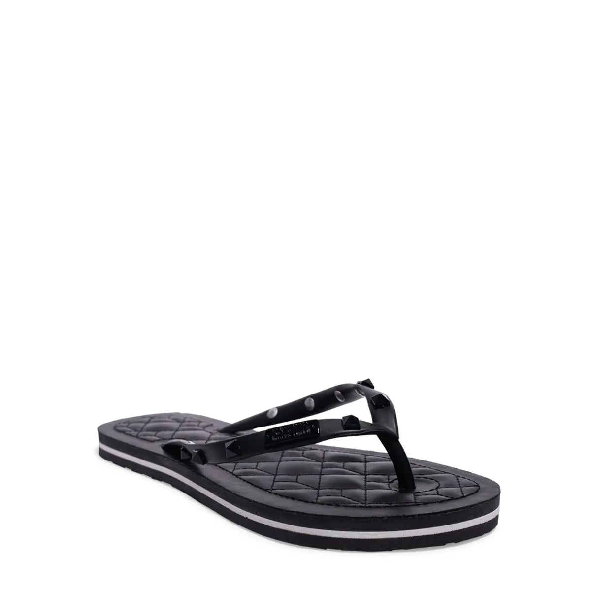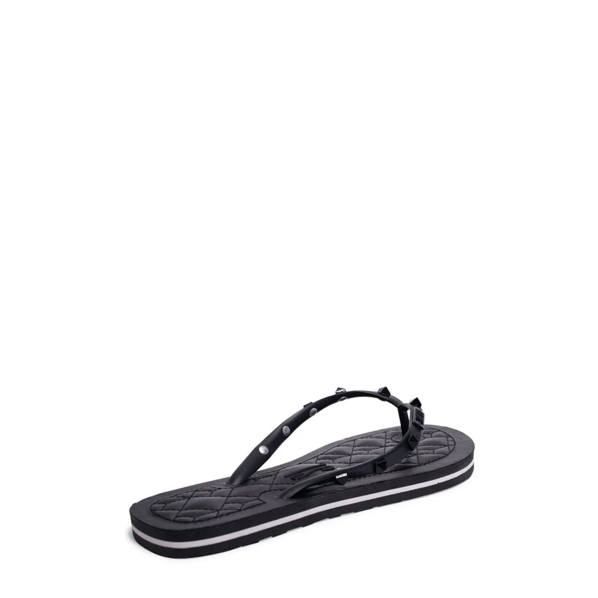 A flip flop é confeccionada em borracha metalizada, que confere um acabamento brilhante e moderno, perfeito para quem busca um toque de sofisticação no look casual. As tiras, elegantes e minimalistas, são adornadas com spikes metálicos, adicionando um toque ousado e contemporâneo ao modelo. O design equilibrado entre o brilho da borracha metalizada e o detalhe dos spikes cria uma peça única, que traz personalidade e estilo ao chinelo. A sola é confortável e prática, proporcionando estabilidade ao caminhar, enquanto a superfície texturizada ajuda a evitar escorregões. Uma flip flop perfeita para quem deseja combinar conforto e um visual impactante, com um toque de atitude e modernidade.