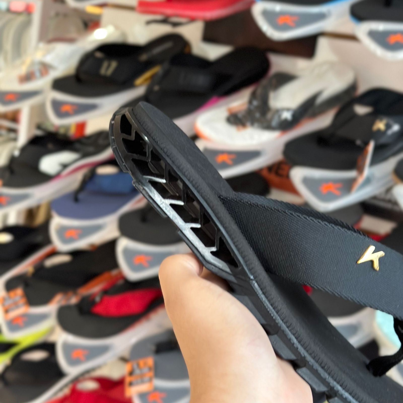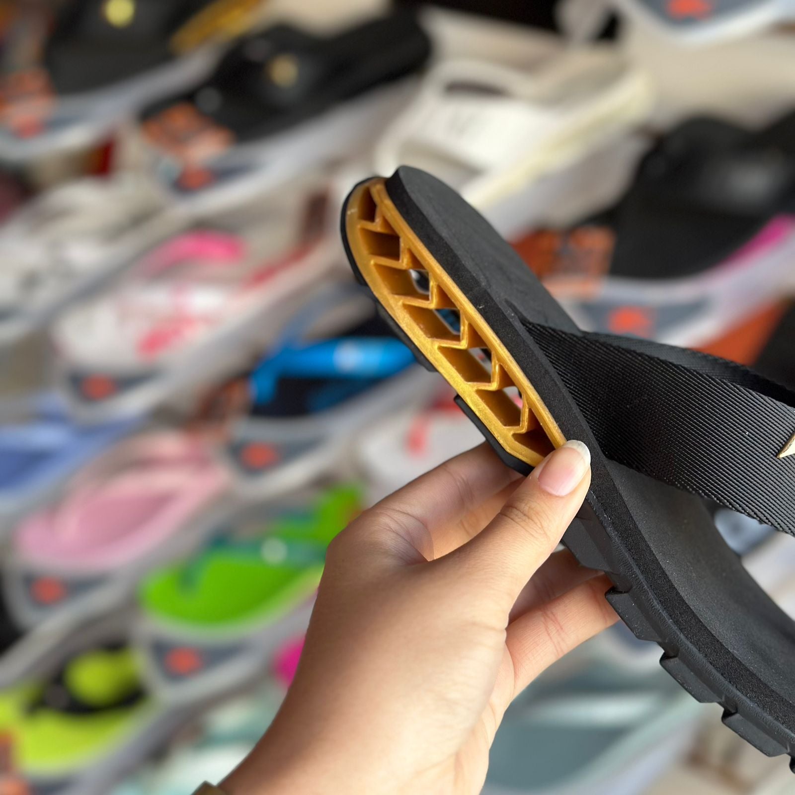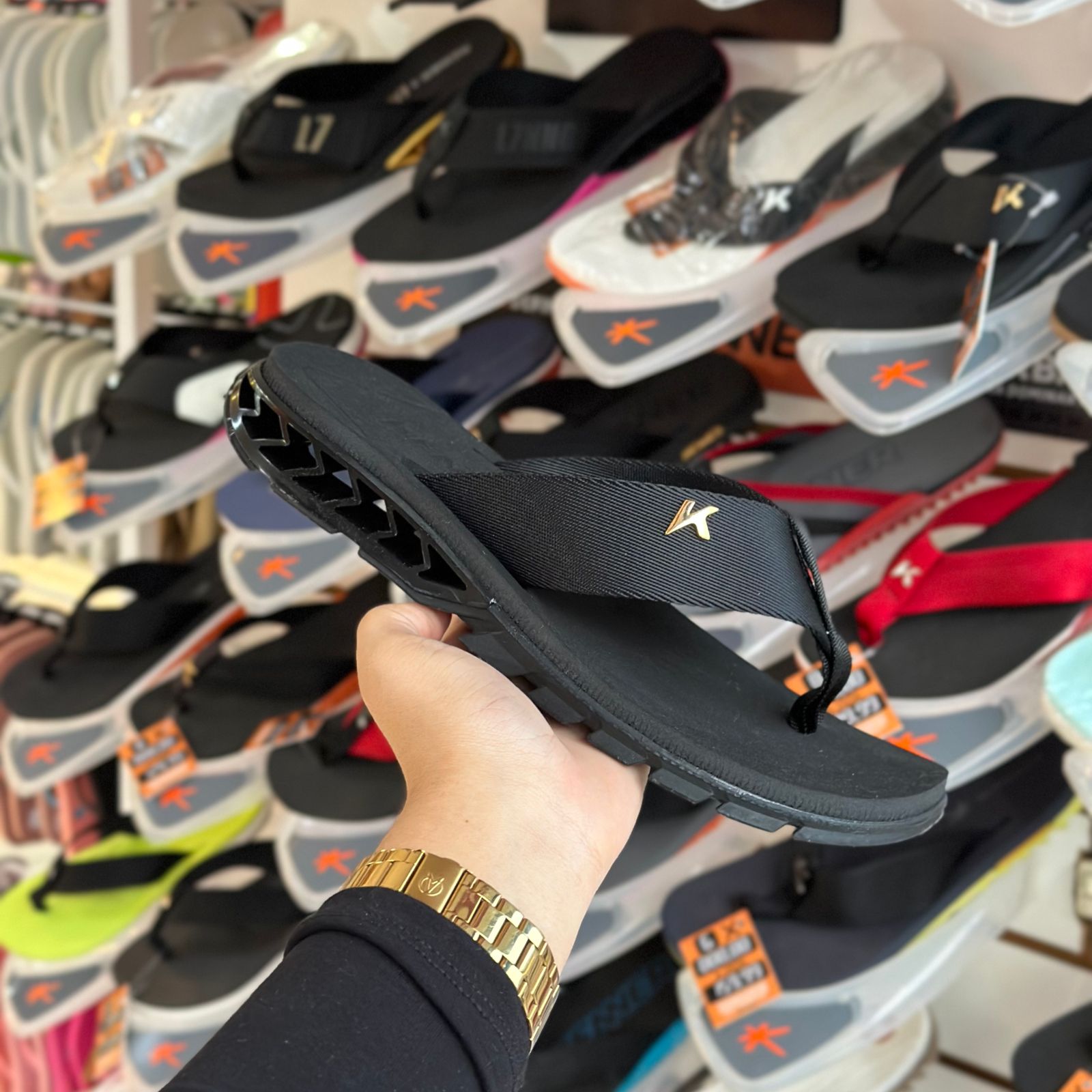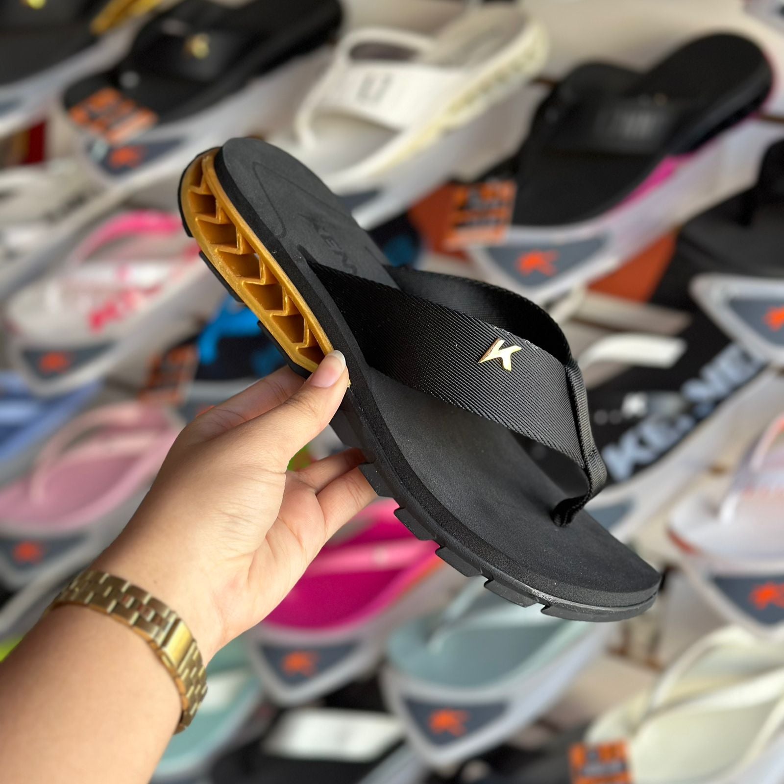 | Solado na cor preta e megatratorado de borracha vulcanizada para garantir mais segurança ao caminhar |