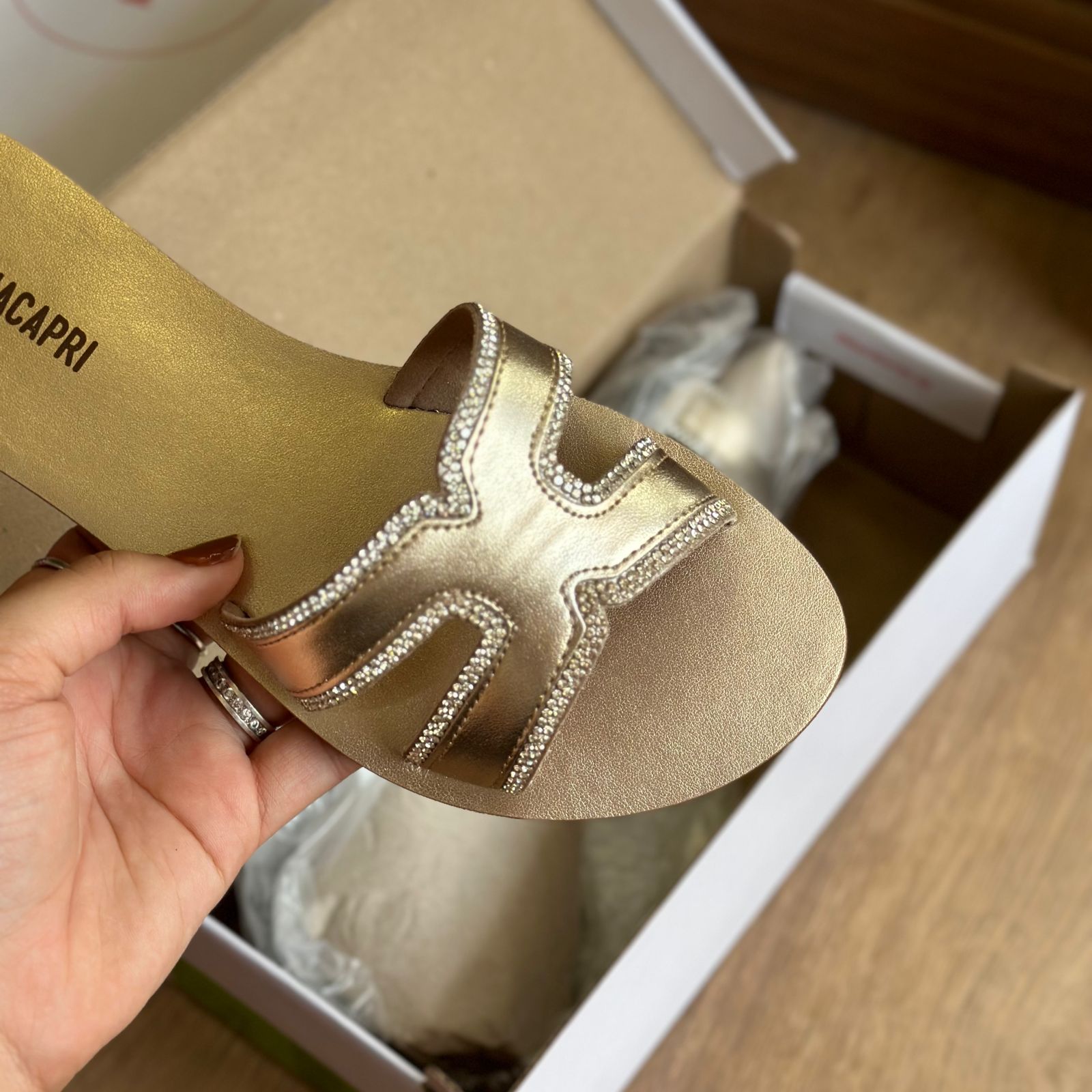 Porque Apostar: A rasteirinha Anacapri mais versátil e prática que você vai ter! Para curtir o melhor da temporada com um toque glam na produção. Com shape leve, esse modelinho vai bem com tudo e acompanha o look para esticar no barzinho ou na balada. Glam vibes, estamos prontas!