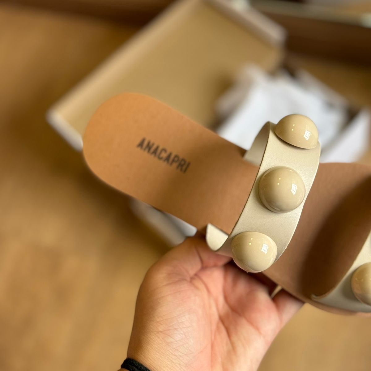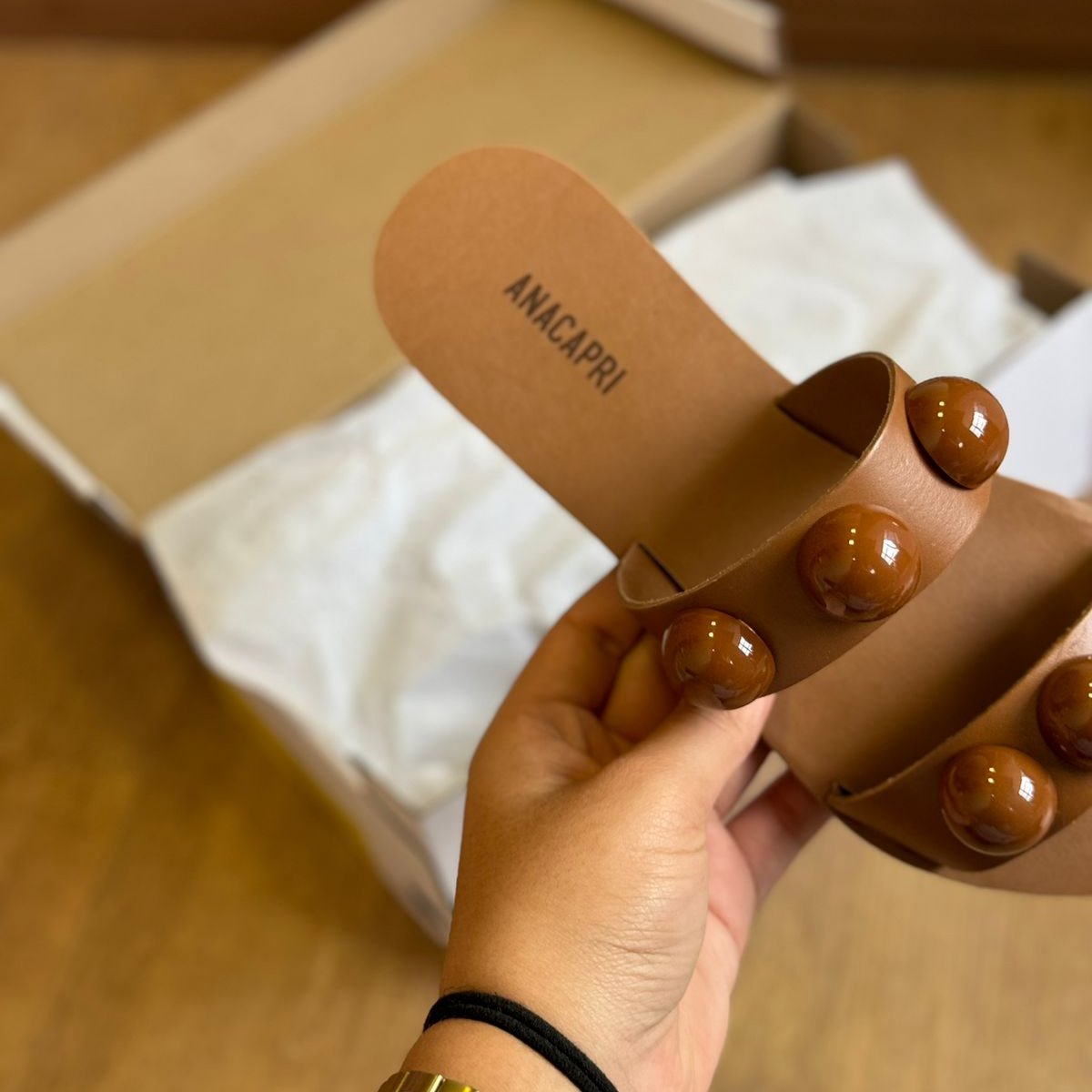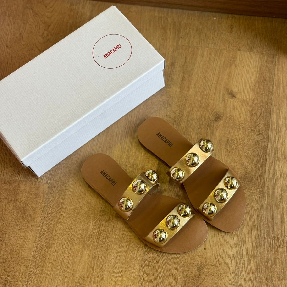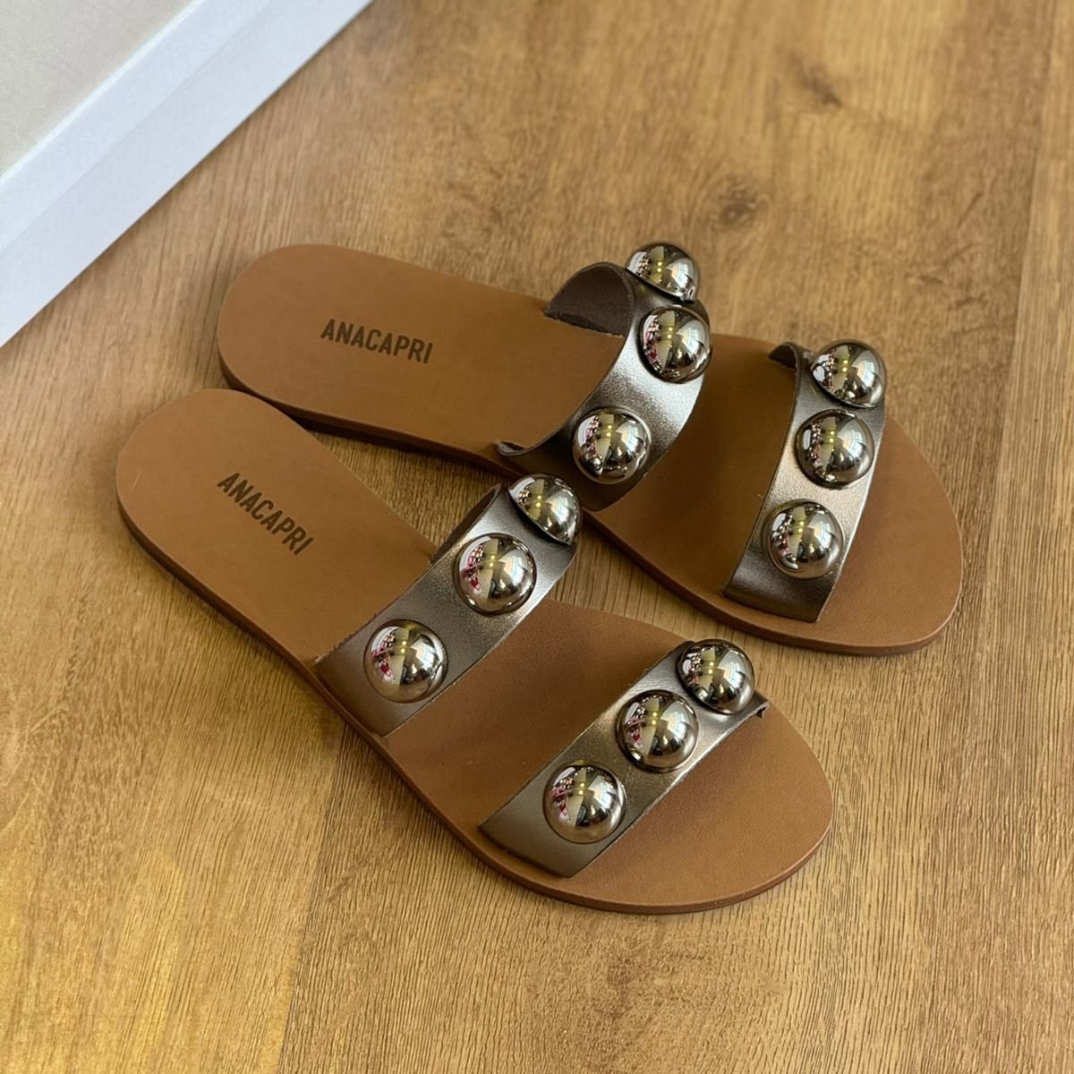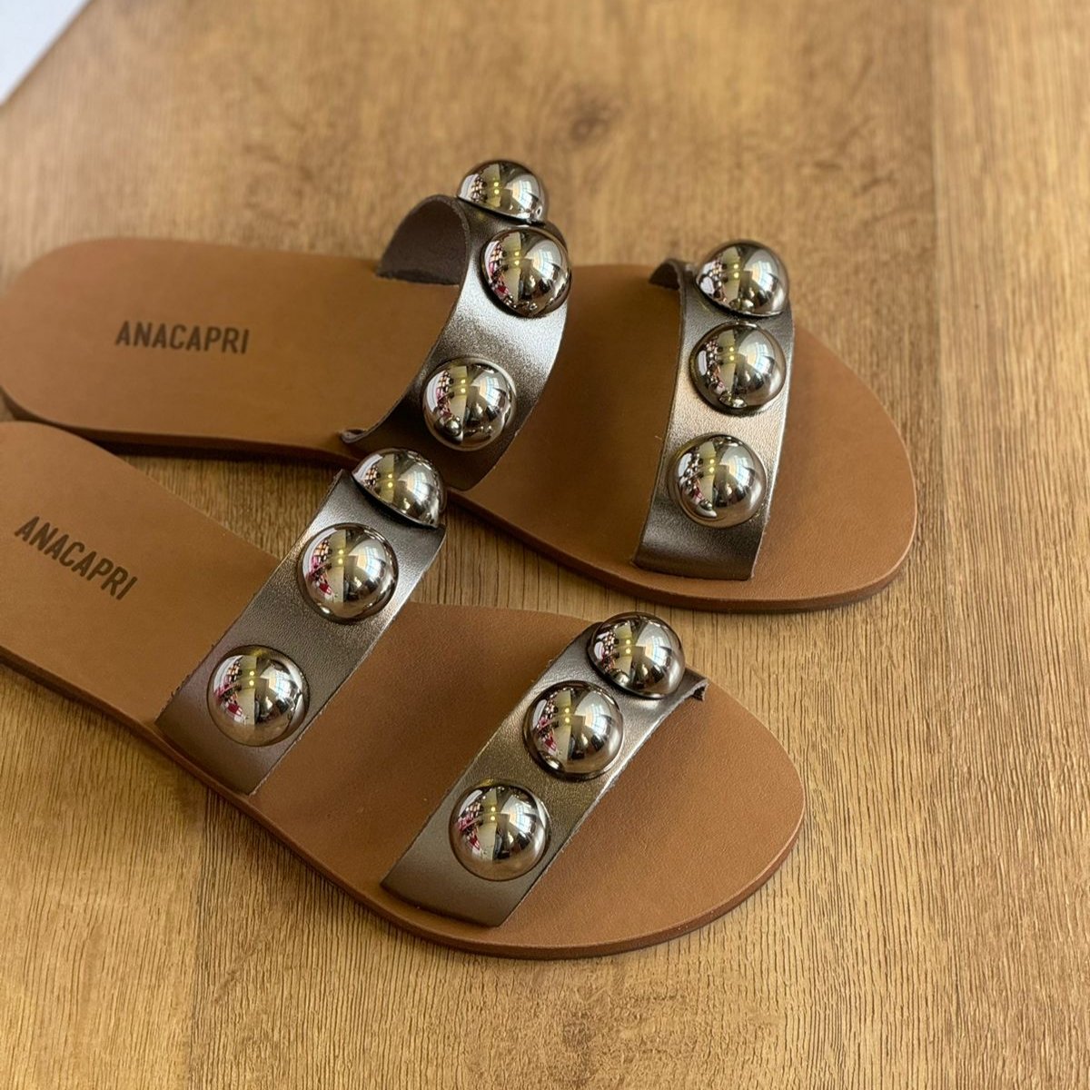 Rasteira Ana Capri Tiras Paralelas Esfera Pop Couro C300140145