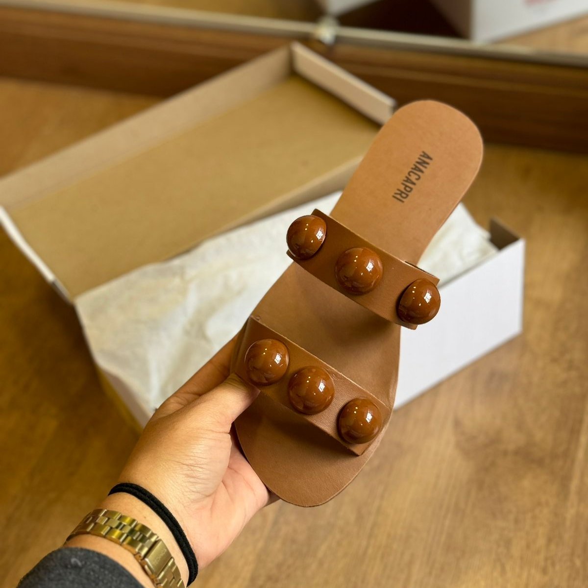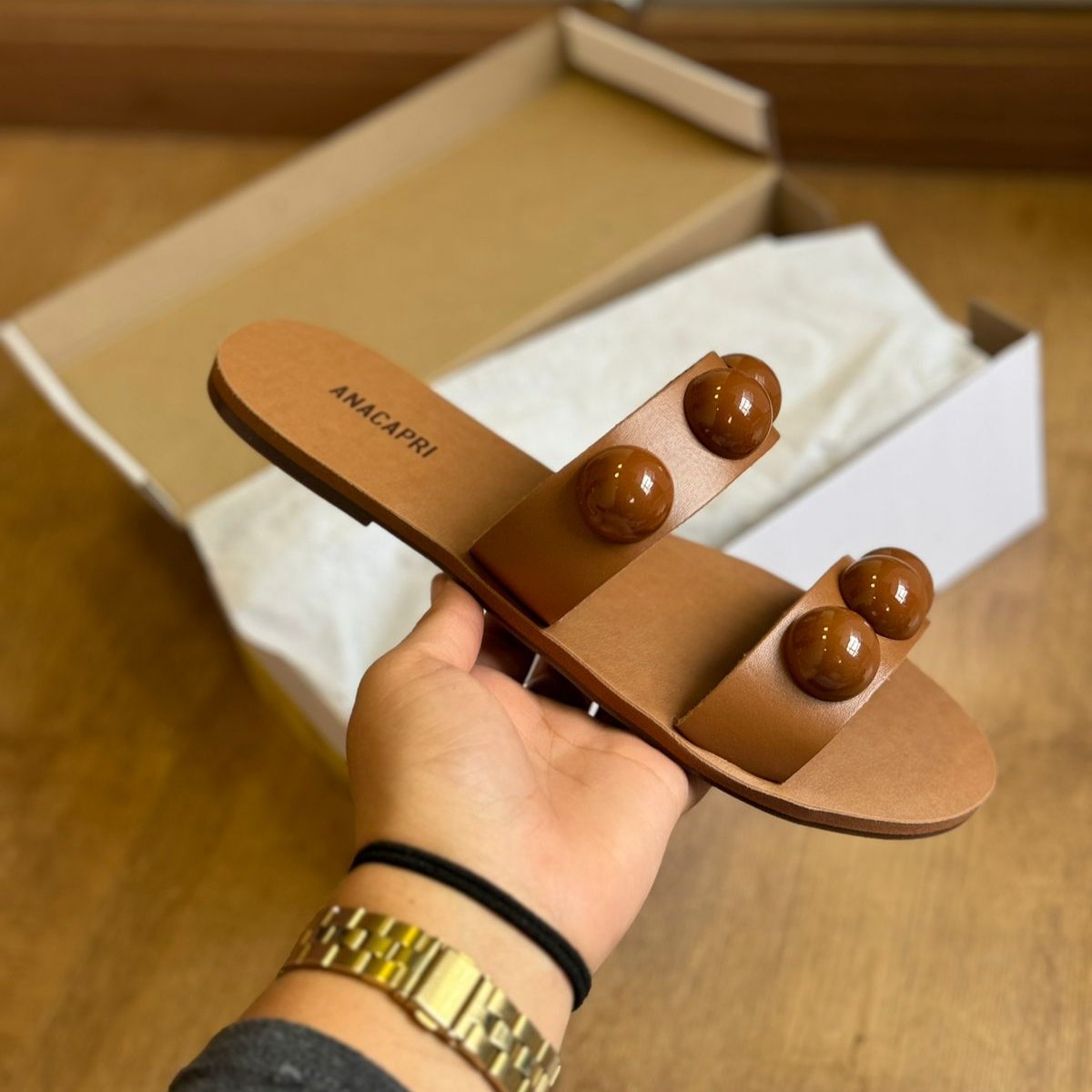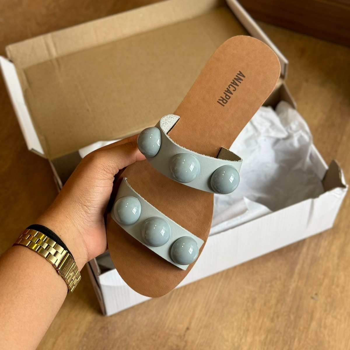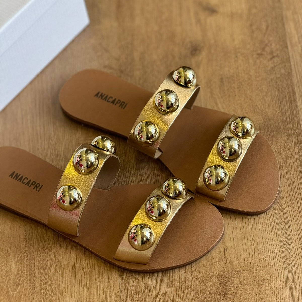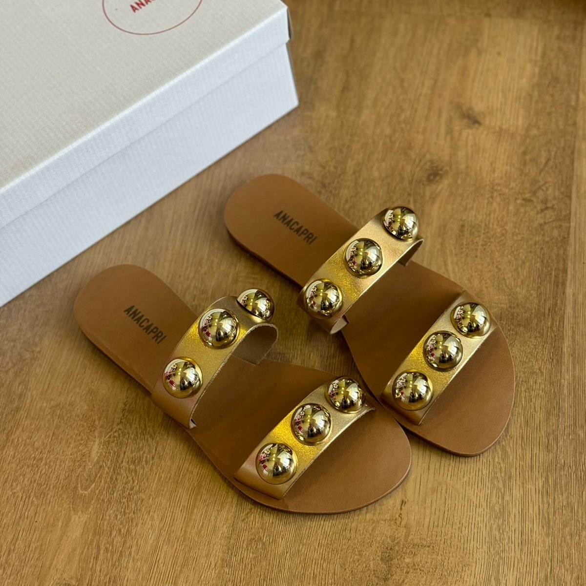 Rasteira Ana Capri Tiras Paralelas Esfera Pop Couro C300140145