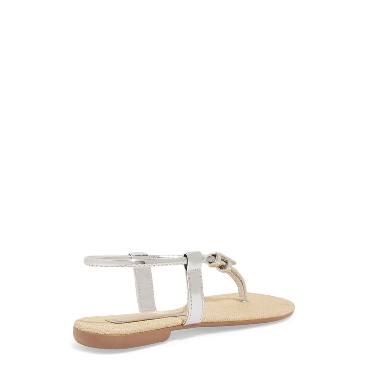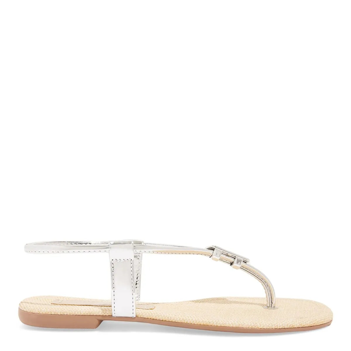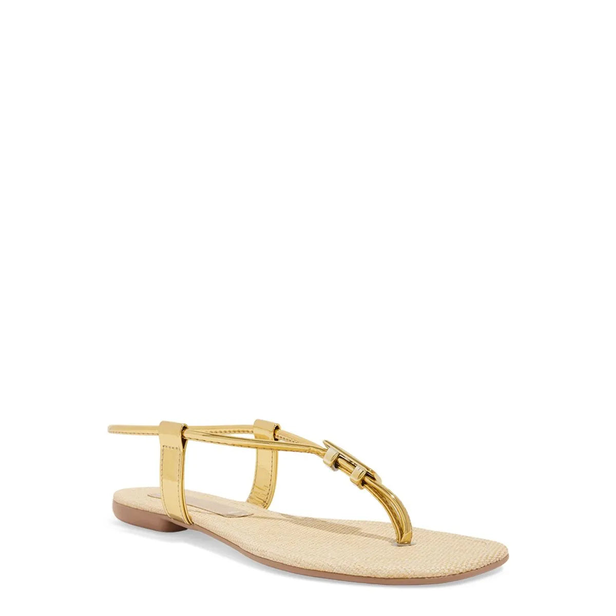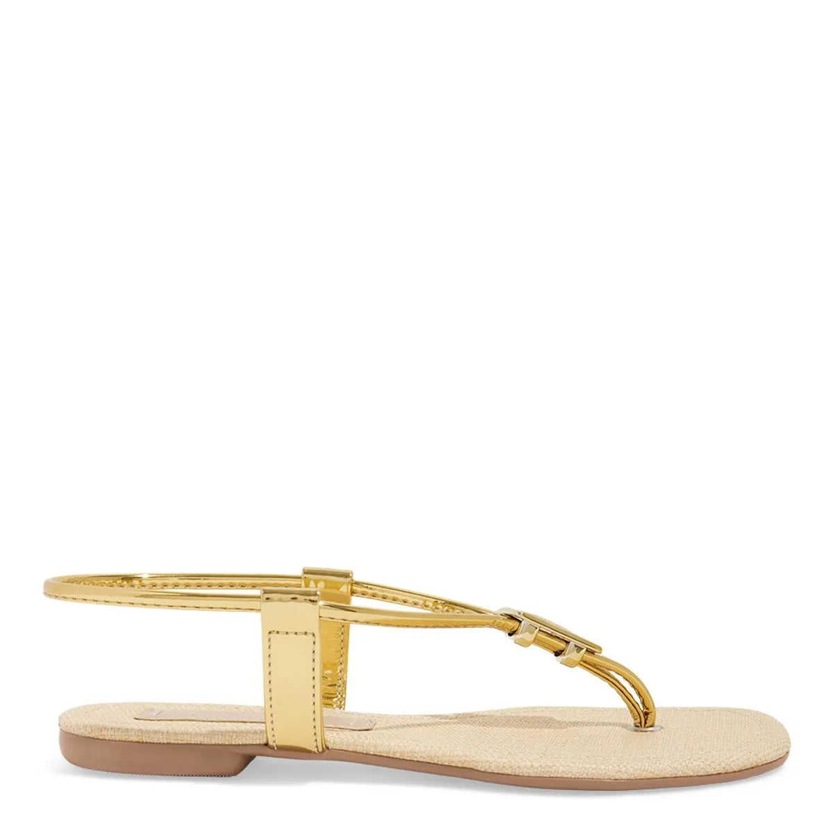 Rasteira specchio de bico quadrado confeccionada em material tecnológico, oferecendo toque macio e confortável. O modelo possui salto flat e tiras finas em acabamento metalizado com ajuste sobre a tira frontal da rasteira, que agregam um charme artesanal ao design.