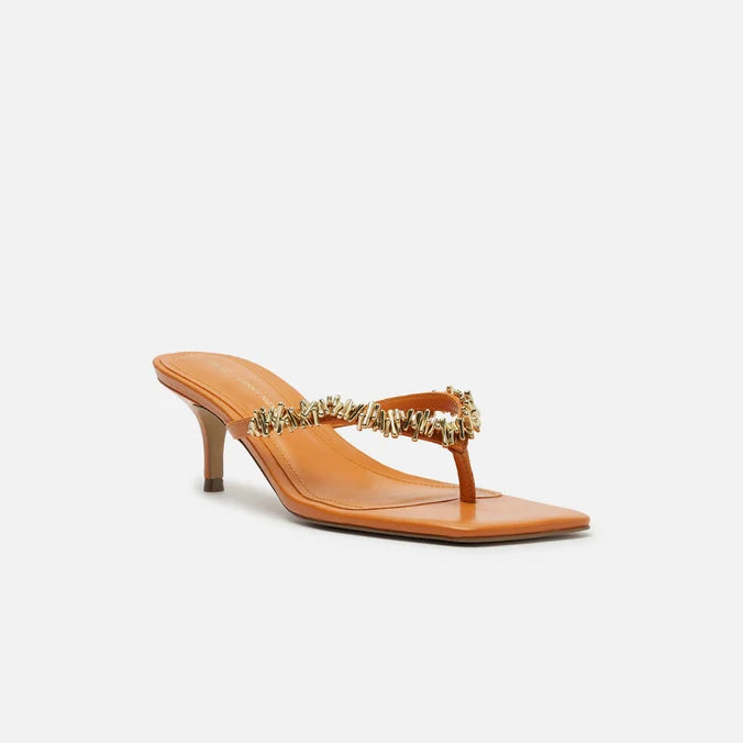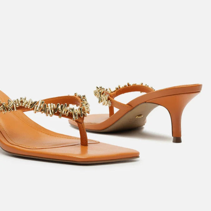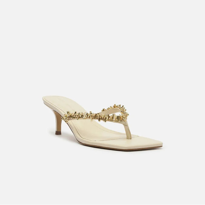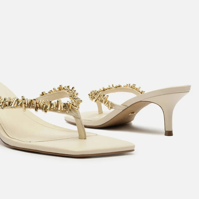 A Sandália Arezzo Lenny Niemeyer é o modelo ideal para quem busca sofisticação e elegância. Com design minimalista e moderno, ela possui um cabedal fino na cor bege que realça a delicadeza dos pés, adornado por detalhes metálicos dourados que agregam charme e luxo. A palmilha acolchoada garante conforto para uso prolongado, enquanto o salto baixo oferece estabilidade sem perder o estilo. O solado antiderrapante proporciona segurança ao caminhar, tornando essa sandália uma excelente escolha para eventos formais ou ocasiões especiais.