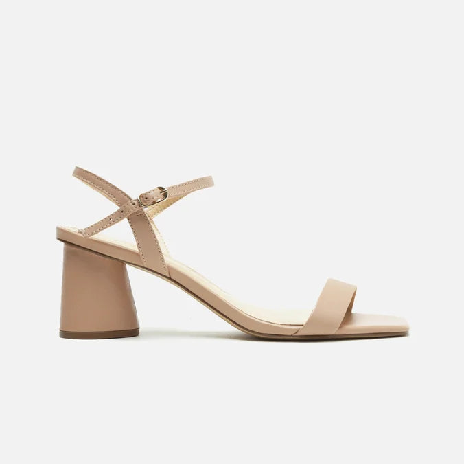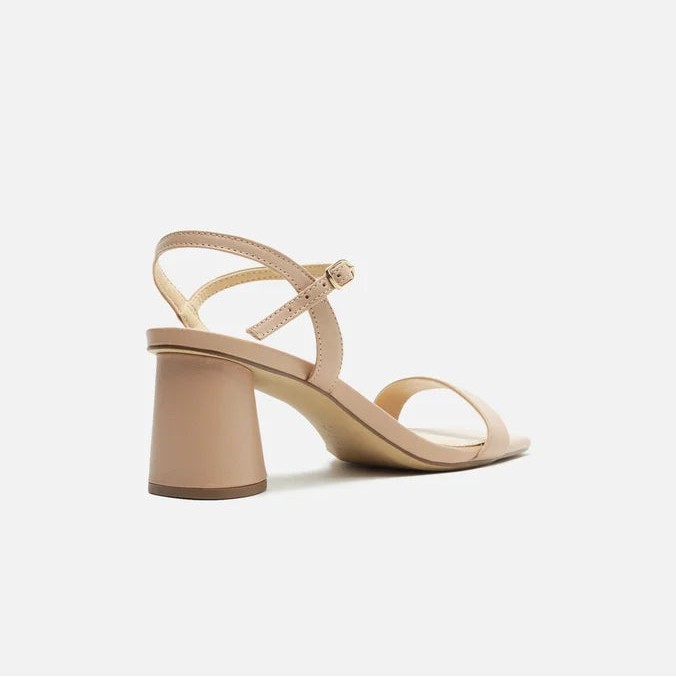 A sandália bloco já é um clássico e surge renovada com modelagem geométrica no salto. Minimalista, compõe tanto produções mais sóbrias como também looks despojados, e vai do escritório ao passeio com muito conforto. O modelo vem em tom neutro, trazendo ainda mais versatilidade.