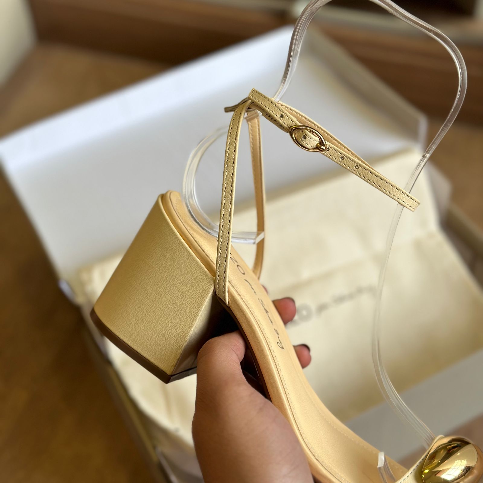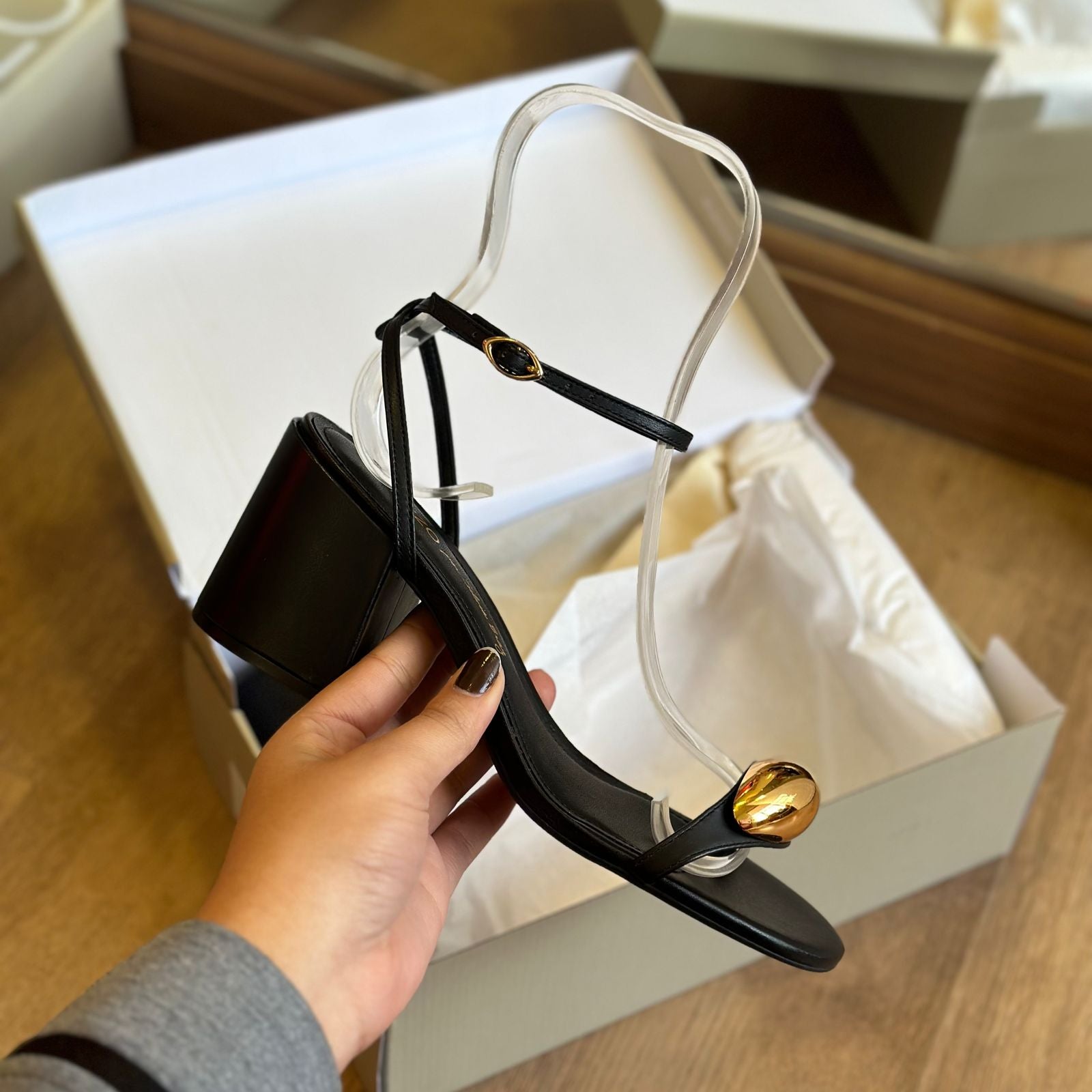 A sandália possui um design minimalista e vem com metal imponente, expressando a tendência dos bold accessories da temporada. Cria looks elegantes e insere sofisticação nas produções. O sapato é parte da collab com a influenciadora Silvia Braz.