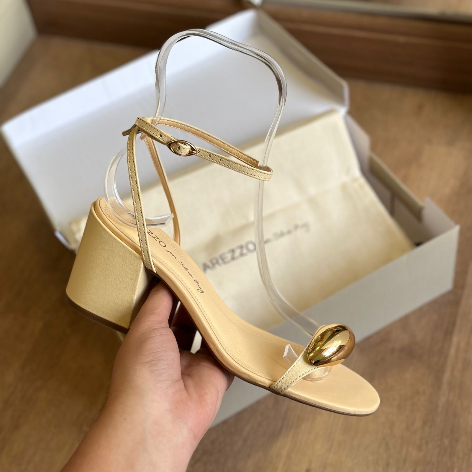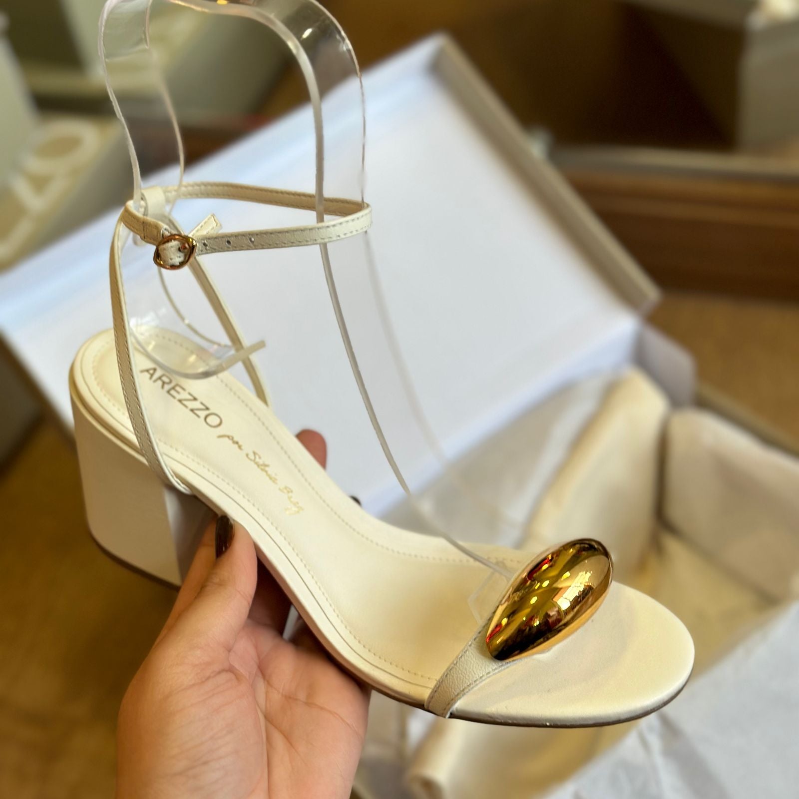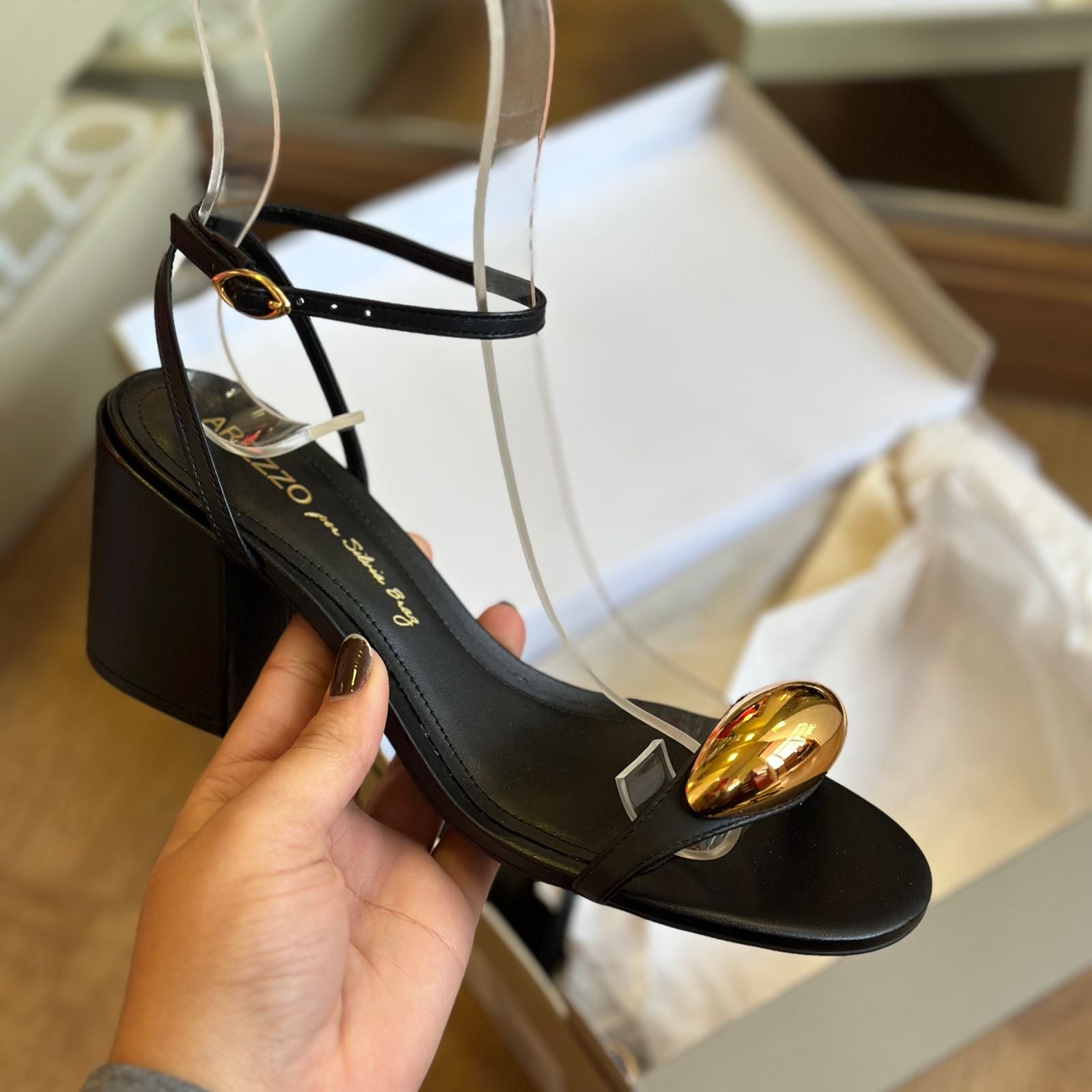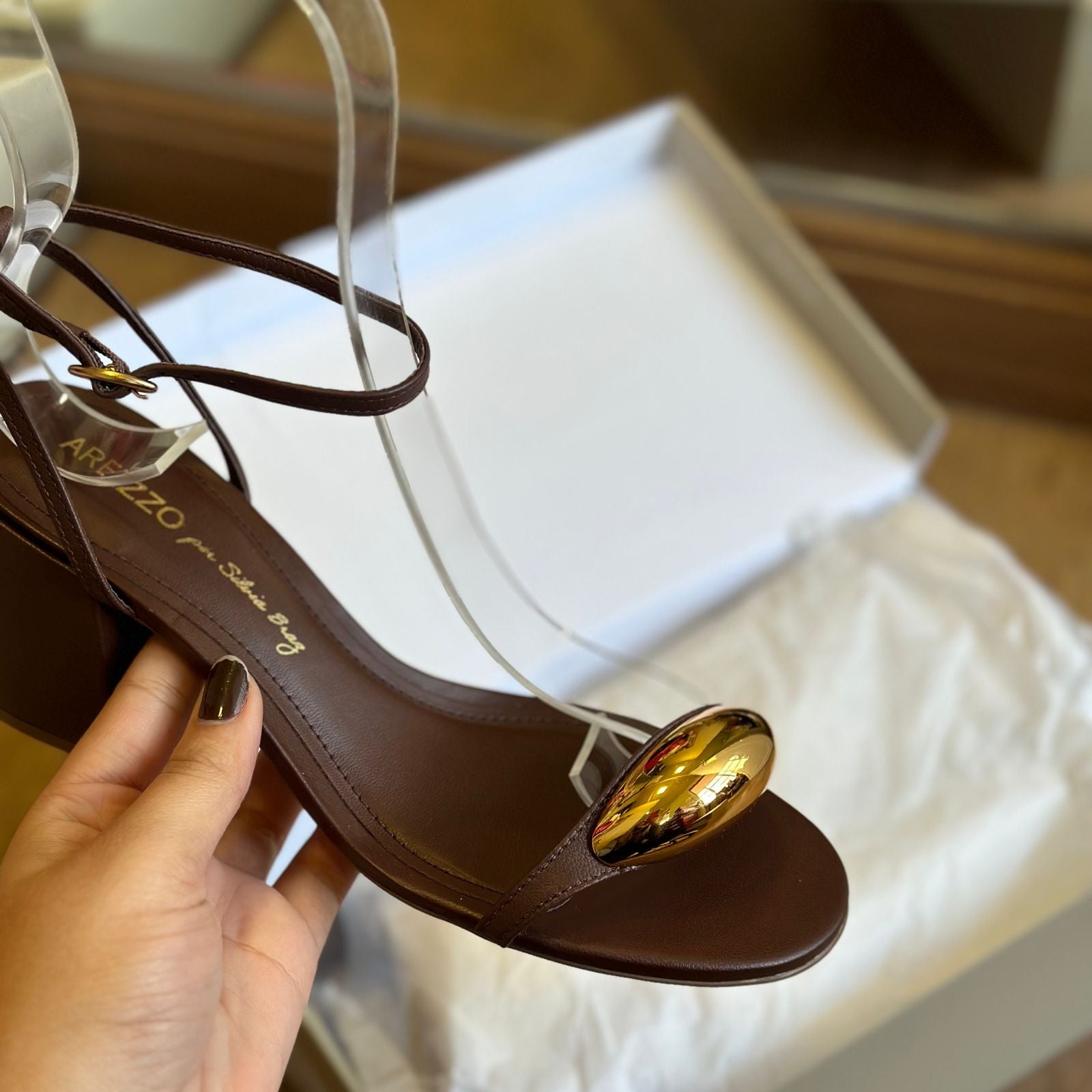 Sandália Arezzo Couro Salto Bloco Metal Silvia Braz A124630030
