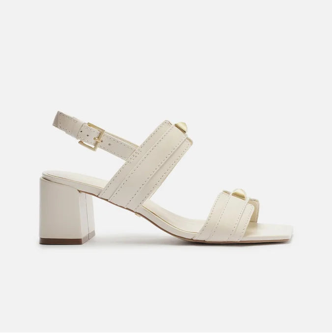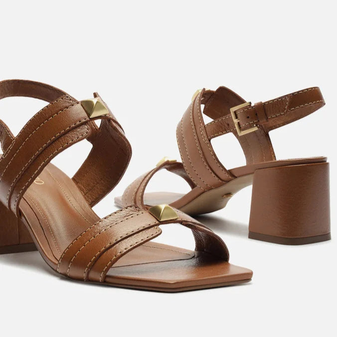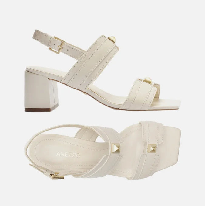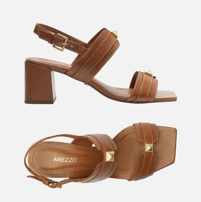Sandália Arezzo Couro Salto Bloco Tiras Tachas A134360019