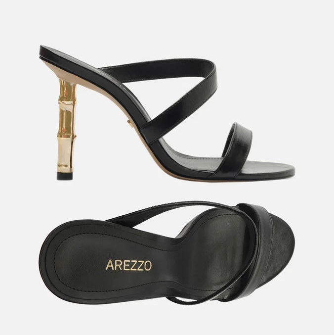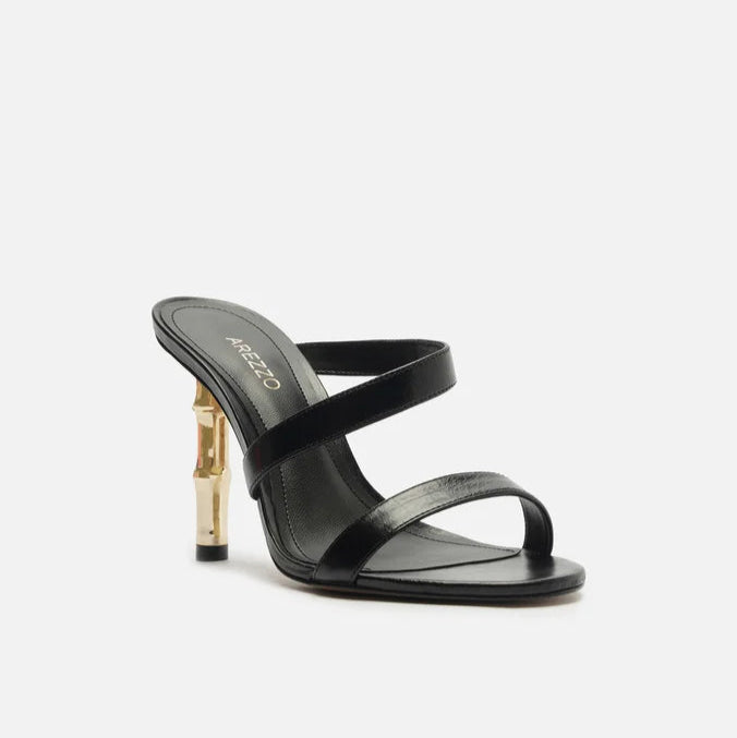 Sandália Arezzo Couro Tiras Salto Bamboo Metal A135180002