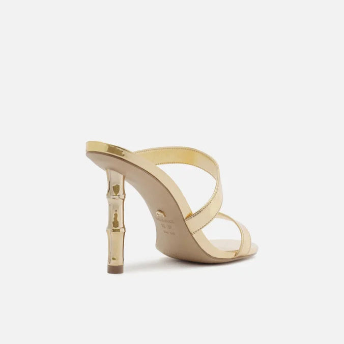 A sandália é sinônimo de estilo! Vem com salto metálico em forma de bambu, traduzindo a tendência dos fun heels e artsy da temporada. Um item para deixar seus looks ainda mais trendy e elegantes!