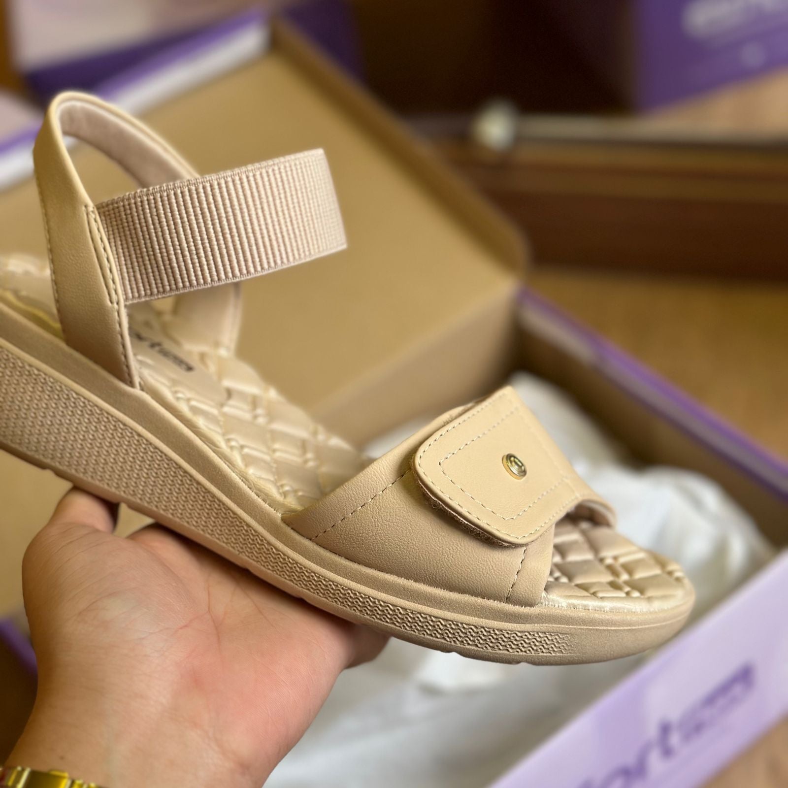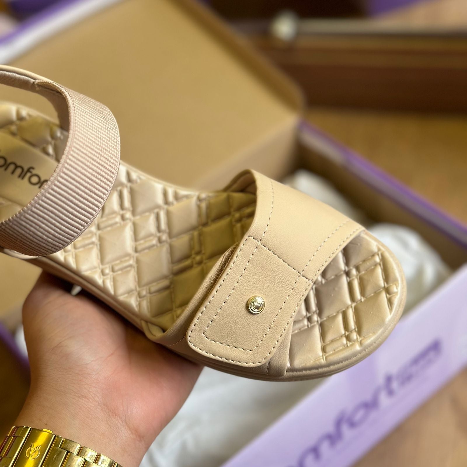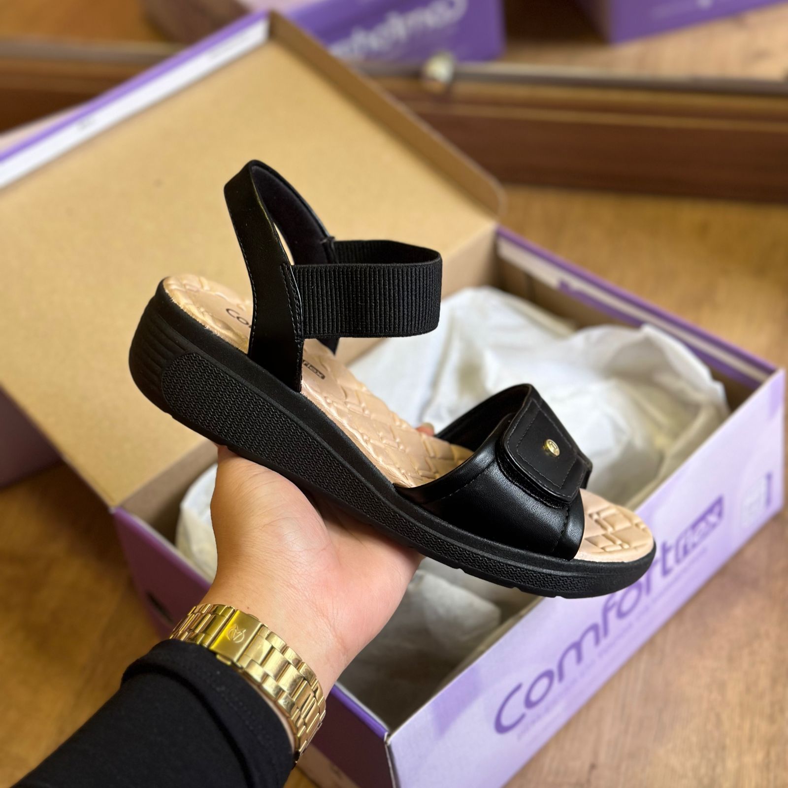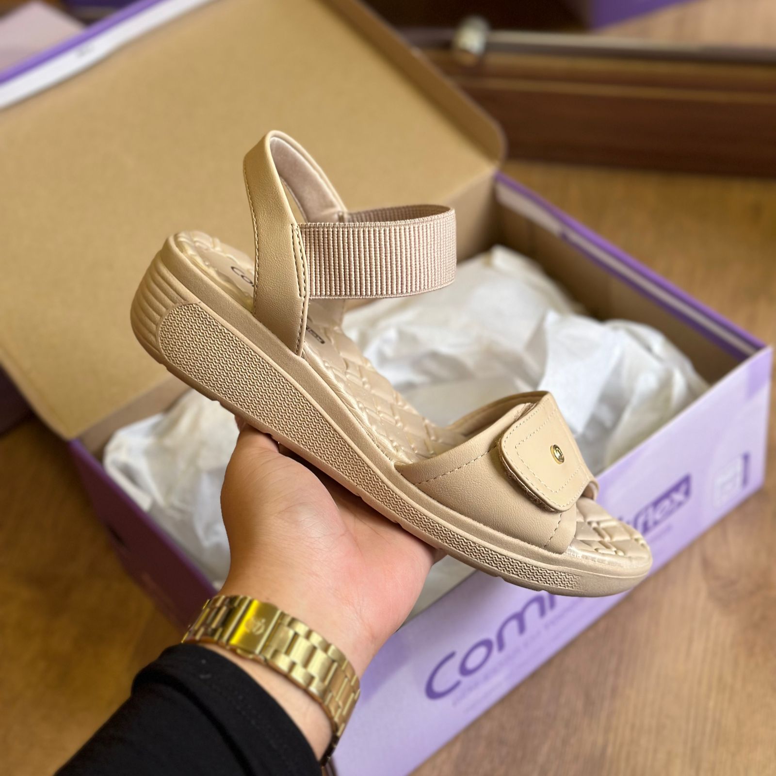 Descubra a elegância e o conforto da nossa sandália anabela com solado em PVC expandido, leve e texturizado, ideal para quem busca estilo e comodidade. A palmilha de EVA oferece extremo conforto e maciez, garantindo uma experiência agradável durante as caminhadas. Este modelo é parte de uma linha versátil que inclui tamancos, sandálias e opções de calce fácil, perfeitas para qualquer ocasião. Com design sofisticado e praticidade no uso, nossa sandália anabela é a escolha certa para quem deseja unir moda e conforto. Tecnologia Comfort Flow - Toda leveza do EVA aos seus pés. Um toque extra de conforto.