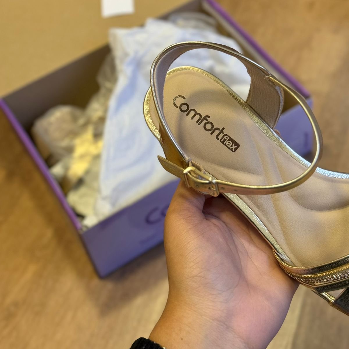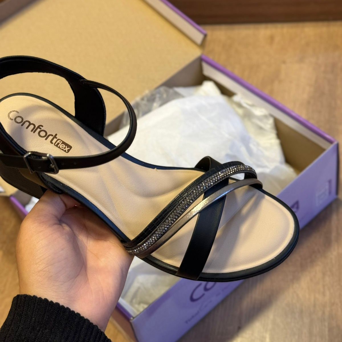 Dê um toque de brilho no seu look com a Sandália Comfortflex Salto Bloco 2456408. Com seu salto confortável e sua tira brilhante, ela é perfeita para qualquer ocasião. Seja o destaque com estilo e conforto!