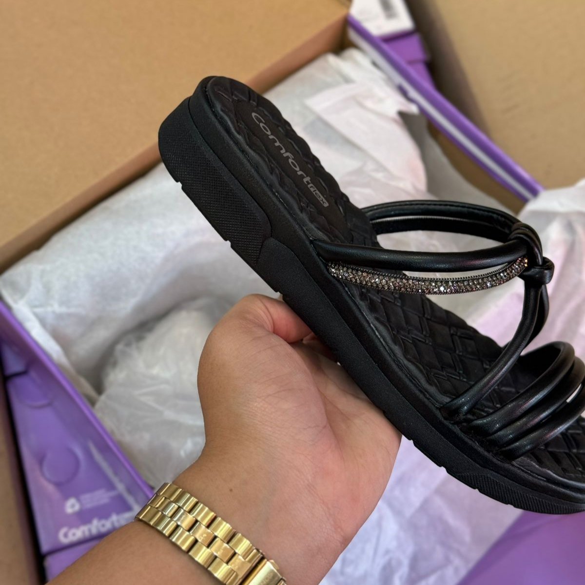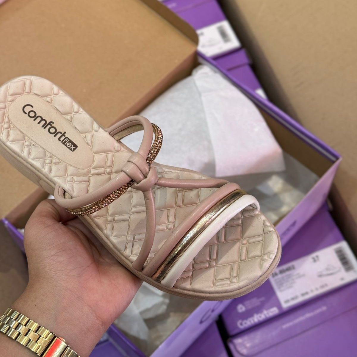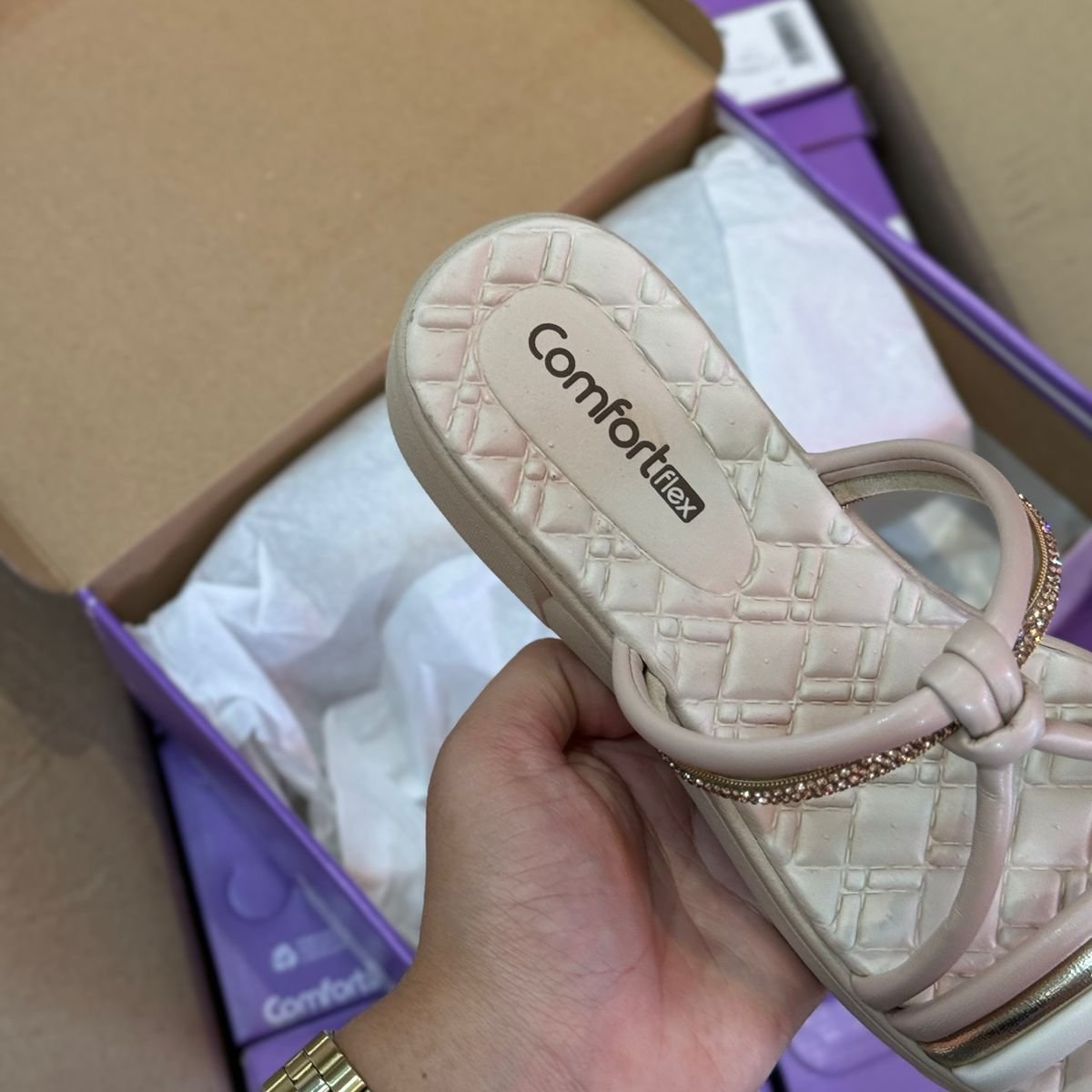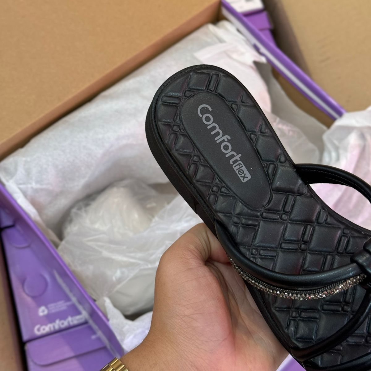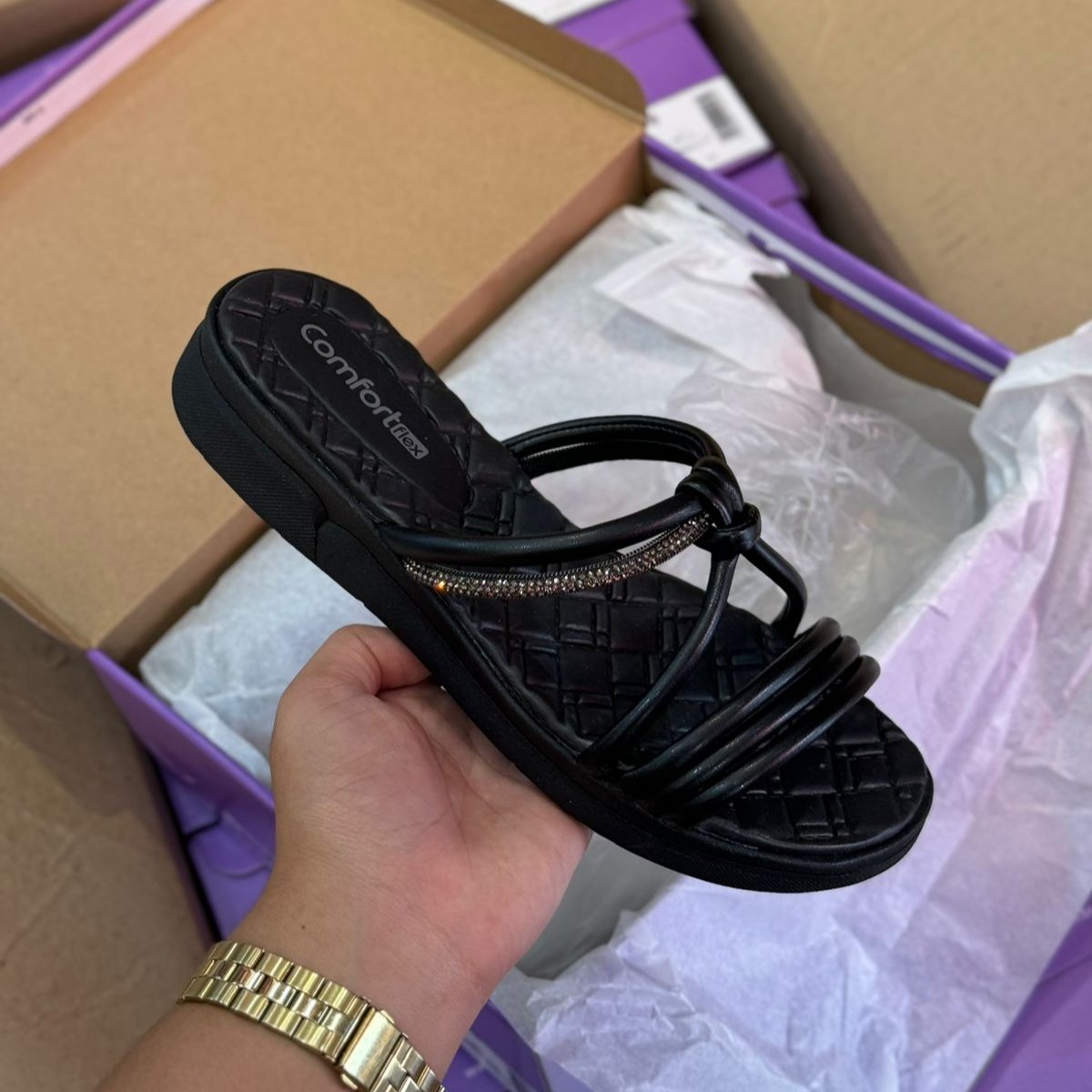Sandália Comfortflex Tiras Brilhantes 2442405