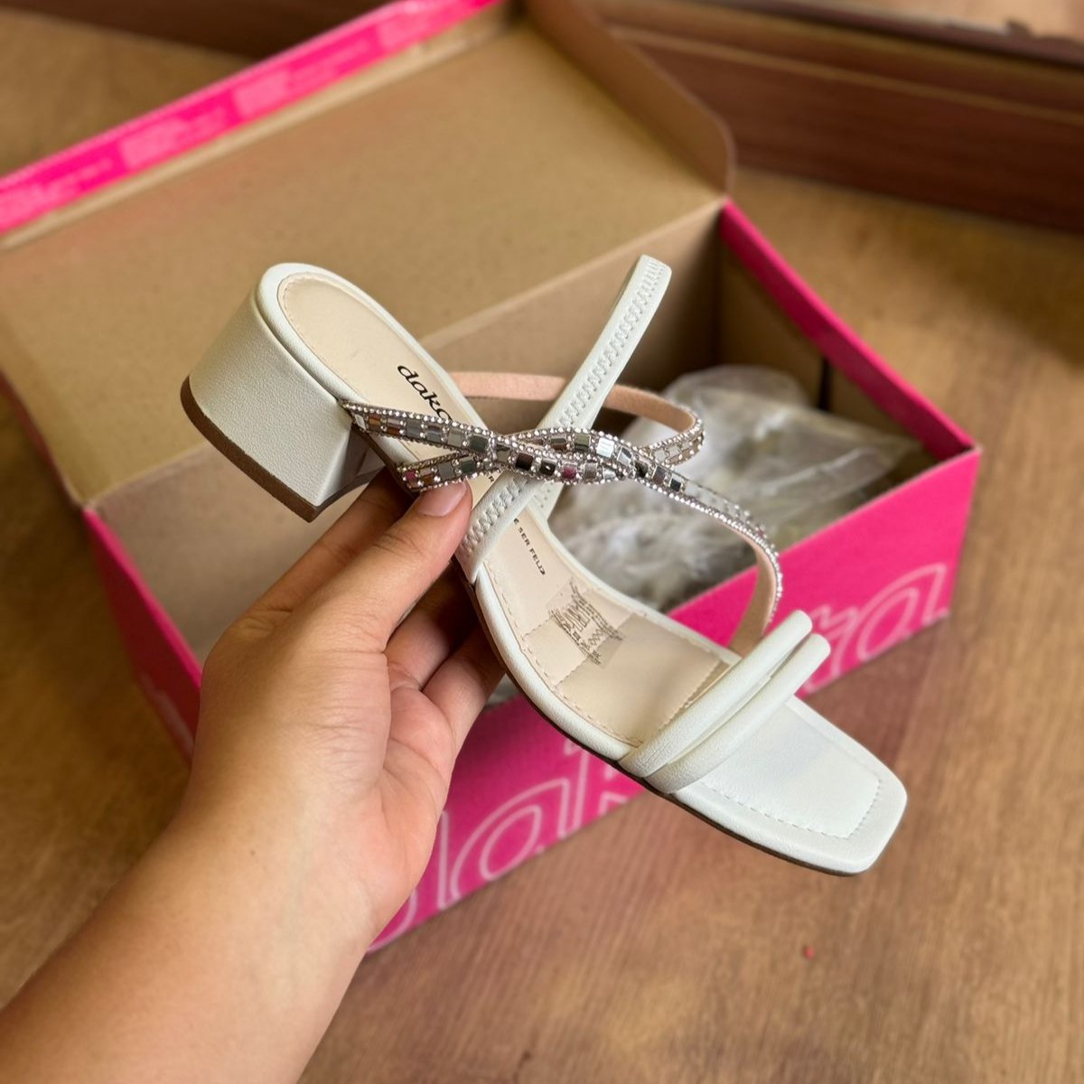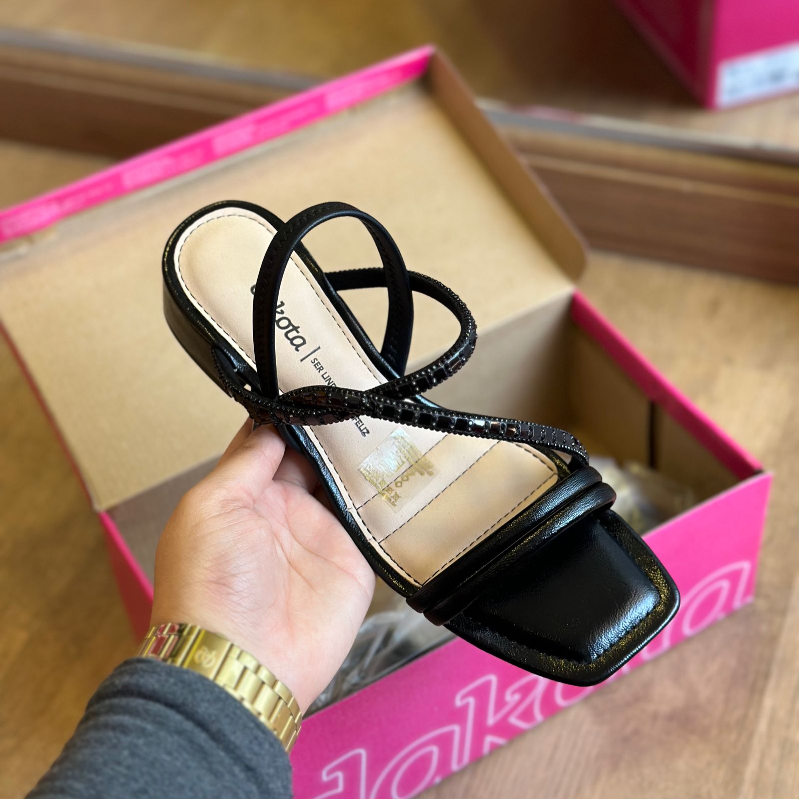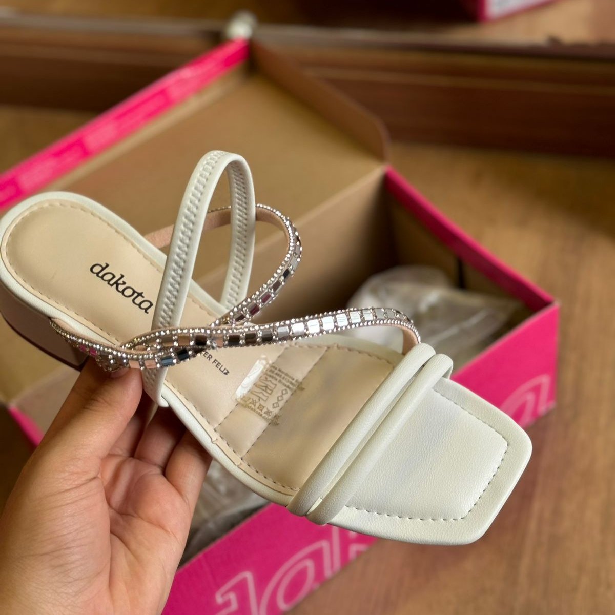 O destaque da sandália fica por conta das aplicações presentes nas tiras sobre o pé, que conferem um toque de charme e exclusividade ao modelo. A sandália Dakota é perfeita para combinar com jeans e camiseta para um look casual, com um vestido para um visual mais elegante ou com saia e blusa para um look feminino e charmoso.