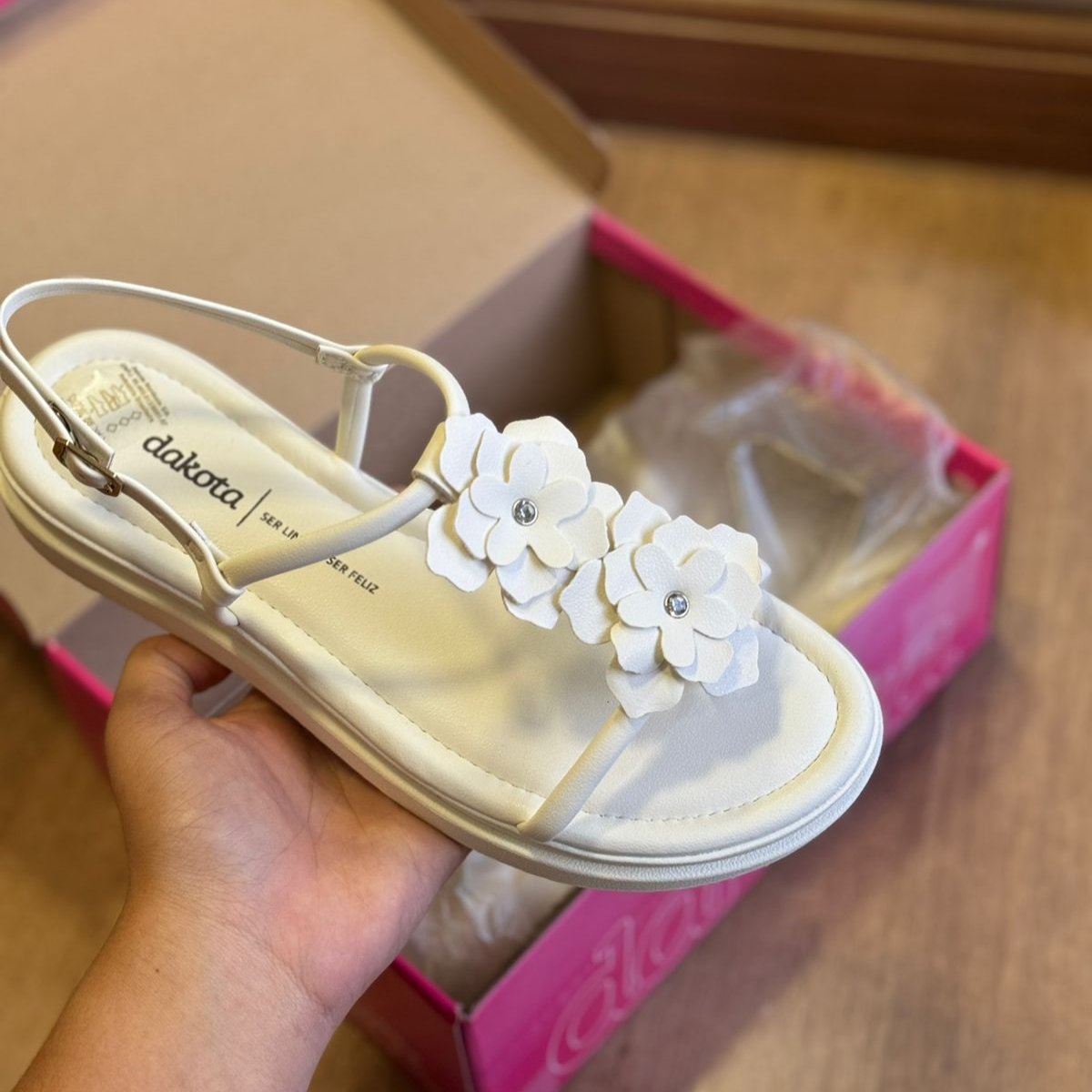 A Sandália Dakota Flatform da coleção Primavera/Verão 2024 é perfeita para quem busca um calçado confortável, estiloso e com um toque de feminilidade. Seu design minimalista e atemporal destaca a aplicação de flores com pedrarias sobre o pé, um detalhe que adiciona um toque de romantismo e delicadeza à peça, seguindo uma das principais tendências da temporada.