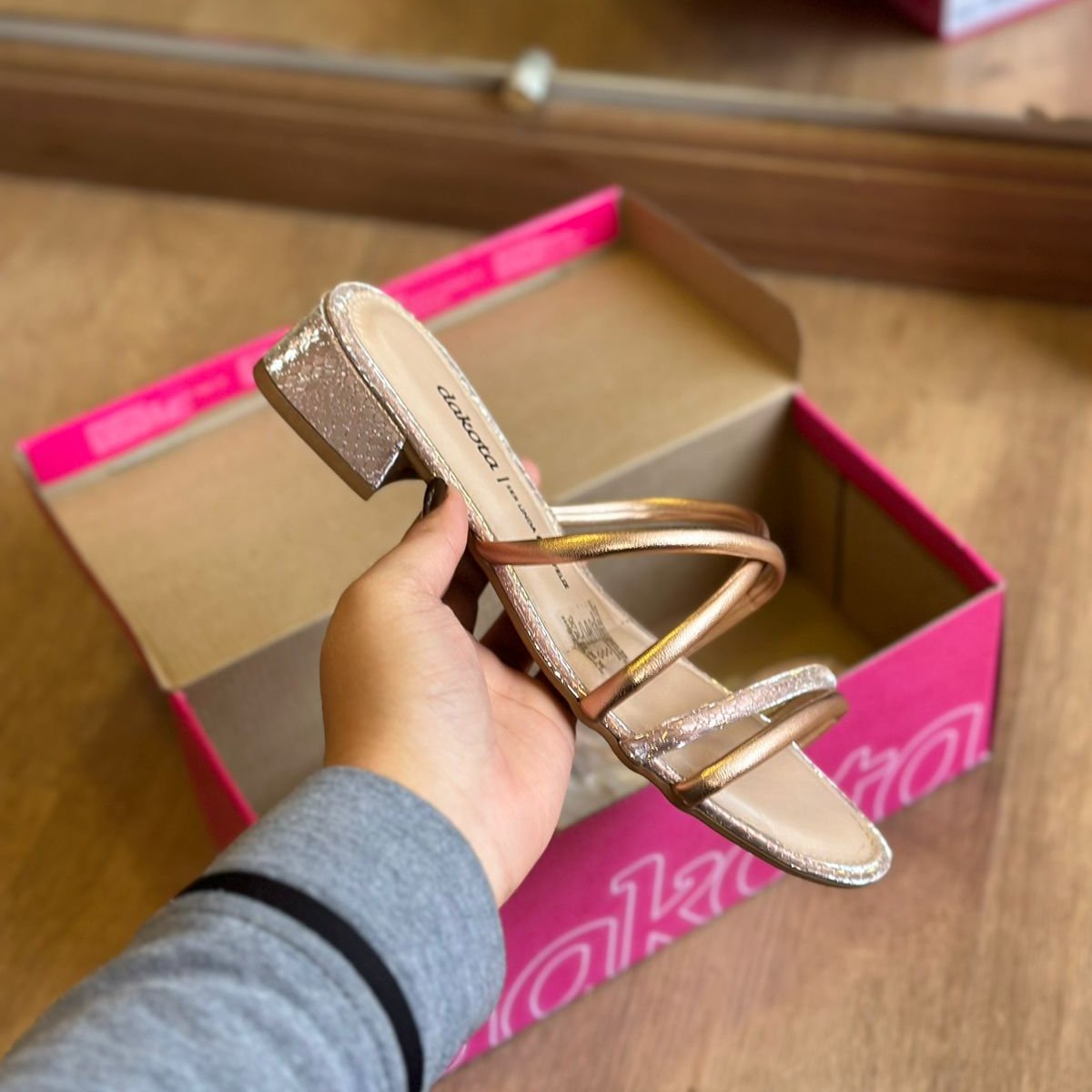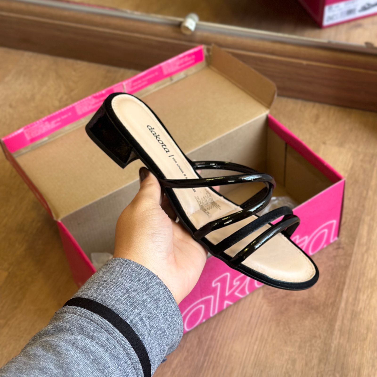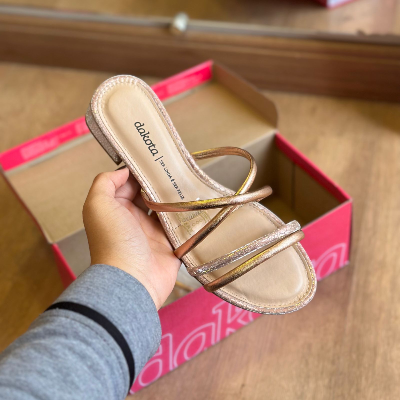 Esta sandália Dakota é a perfeita combinação de elegância e conforto. Com um tamanco de altura discreta, proporciona a elevação ideal para o dia a dia, sem comprometer o conforto. Suas tiras finas em acabamento brilhante envolvem o pé com delicadeza, trazendo um toque de sofisticação ao visual. Versátil e estilosa, é a escolha ideal para quem busca um calçado que complemente tanto looks casuais quanto mais sofisticados.