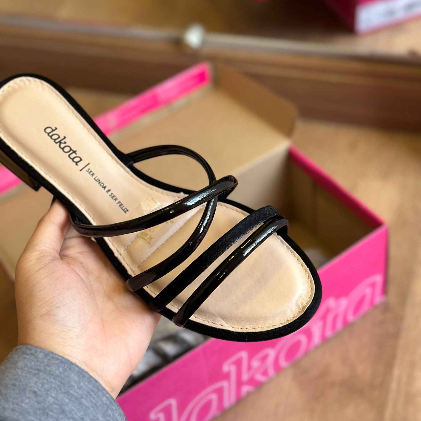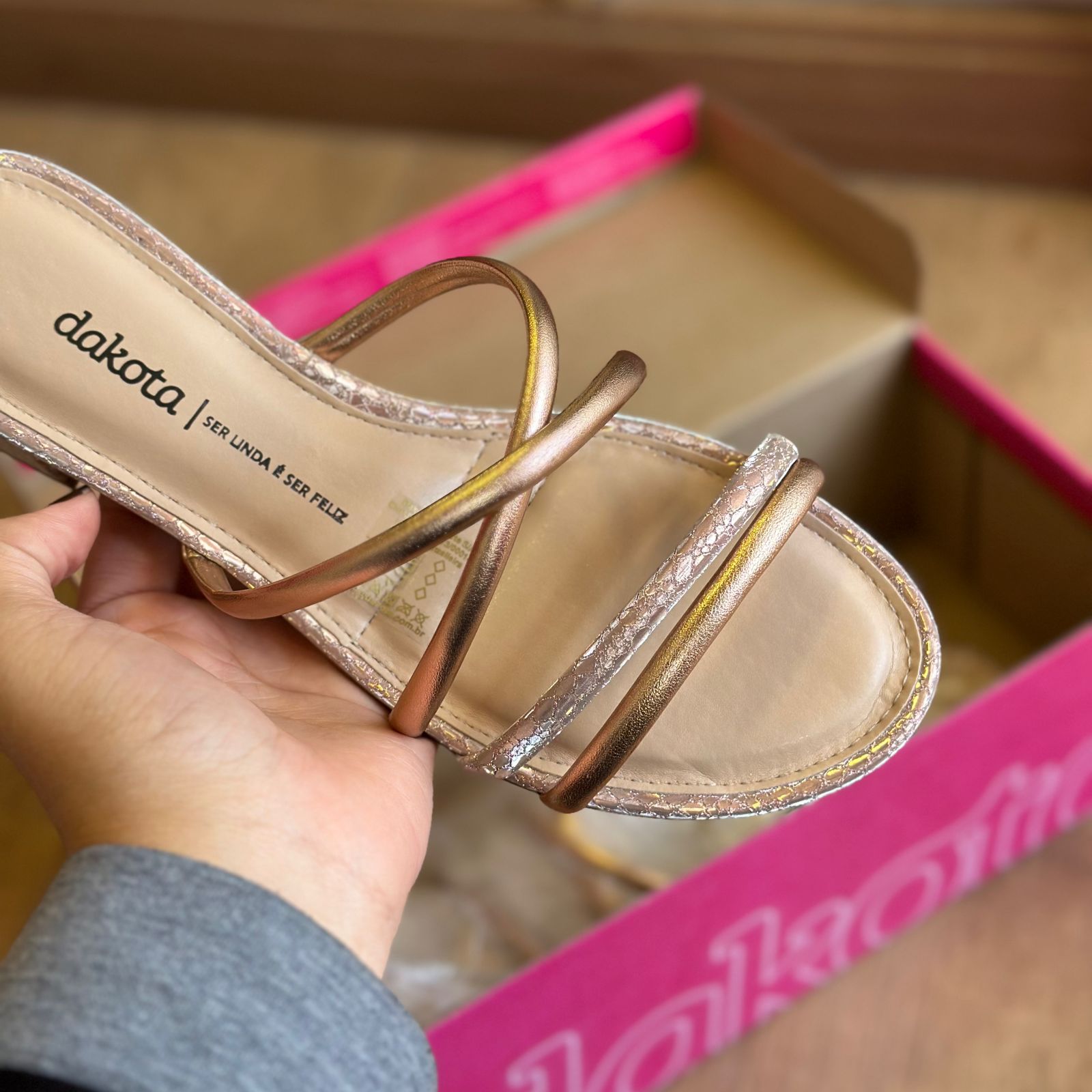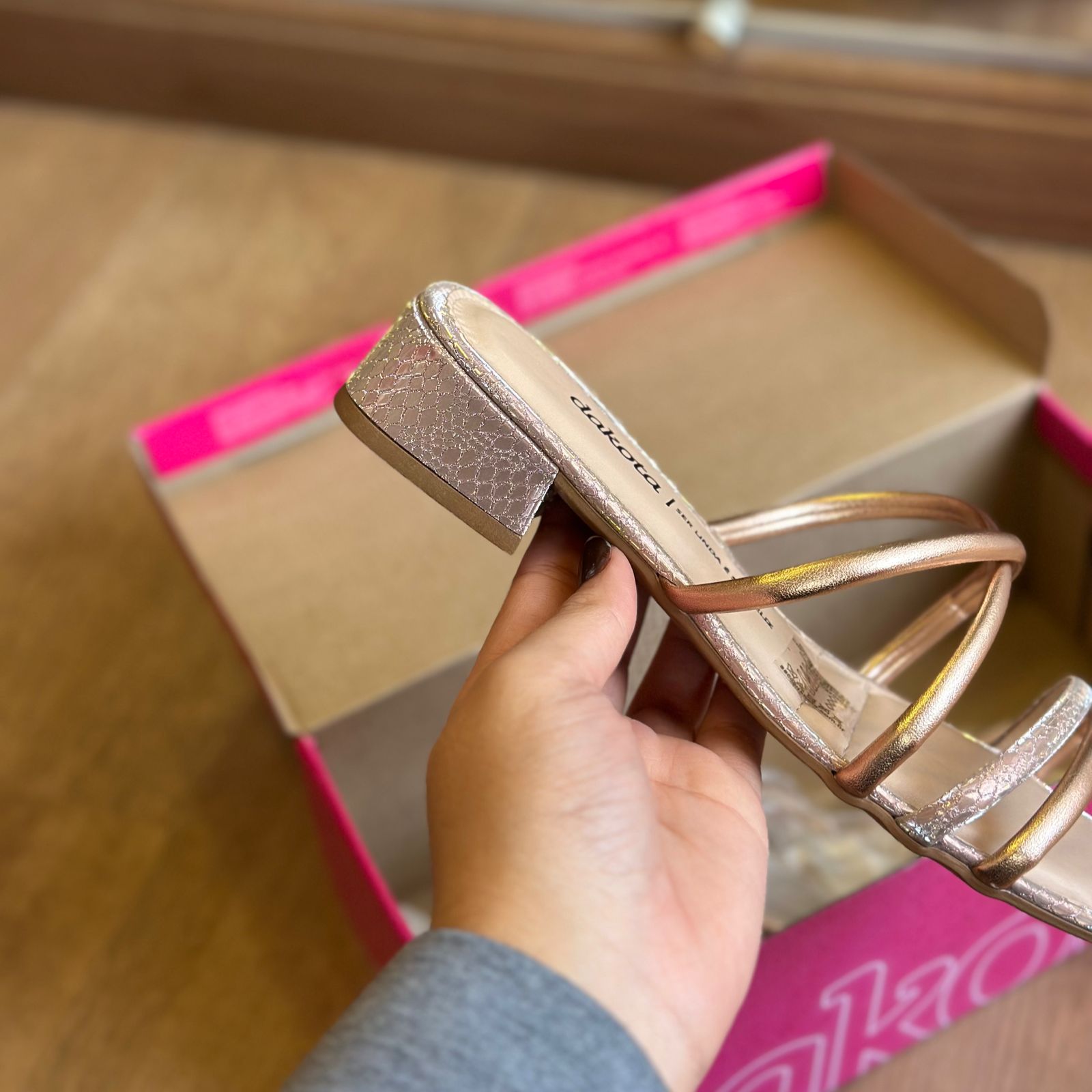 Esta sandália Dakota é a perfeita combinação de elegância e conforto. Com um tamanco de altura discreta, proporciona a elevação ideal para o dia a dia, sem comprometer o conforto. Suas tiras finas em acabamento brilhante envolvem o pé com delicadeza, trazendo um toque de sofisticação ao visual. Versátil e estilosa, é a escolha ideal para quem busca um calçado que complemente tanto looks casuais quanto mais sofisticados.