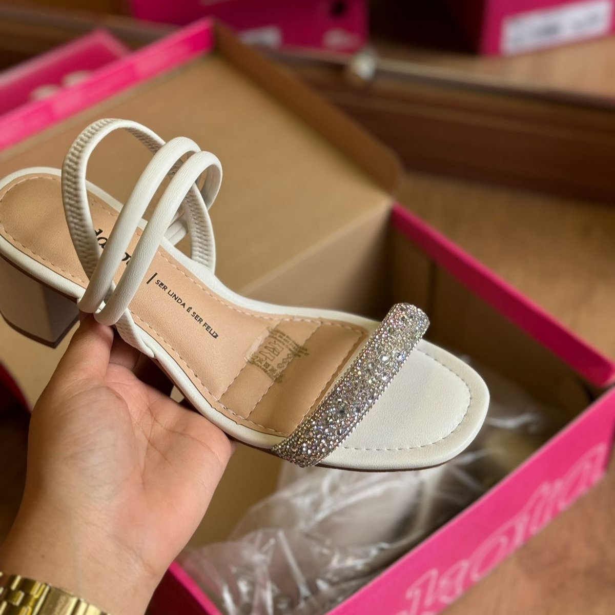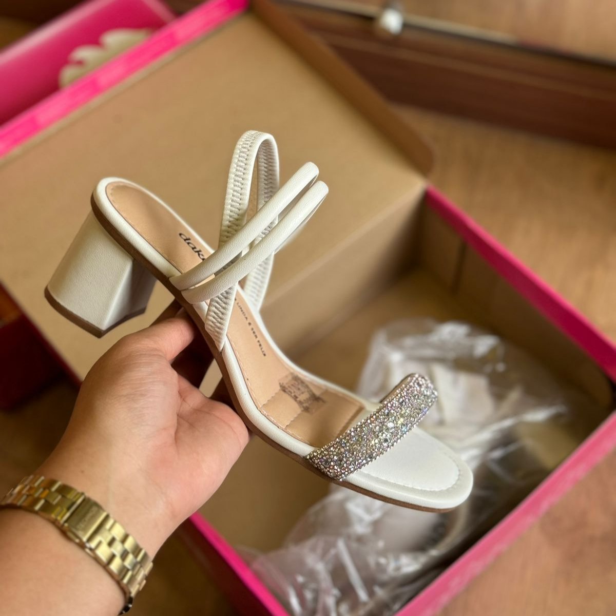O salto bloco alto com 6 cm garante estabilidade e conforto, enquanto o calce fácil com tira maleável e sem fechamento que envolve o calcanhar proporciona praticidade. O destaque da sandália são as tiras repletas de brilhos sobre o pé, agregando um toque sofisticado e atemporal ao visual. Perfeita para complementar seus looks em diferentes ocasiões, nossa dica é combinar a sandália Dakota com jeans, shorts ou calça de alfaiataria e uma blusa de seda ou canelada. Aposte em cores neutras para um look mais clássico, ou em cores vibrantes para um visual mais moderno para um look casual e chic. Além disso, para um look de balada, combine a sandália com m shorts jeans, cropped e jaqueta. Aposte em cores metálicas e acessórios para um visual mais despojado.