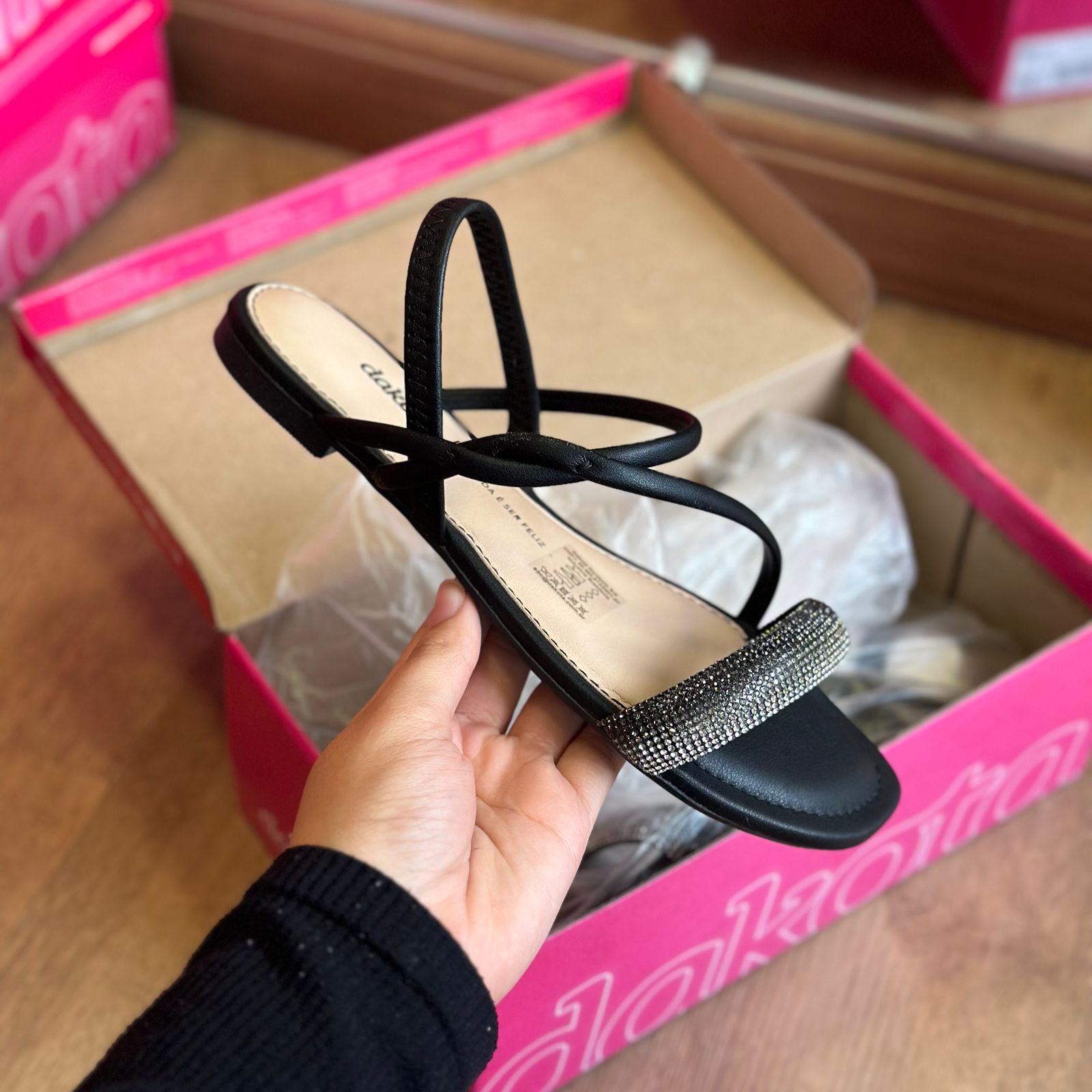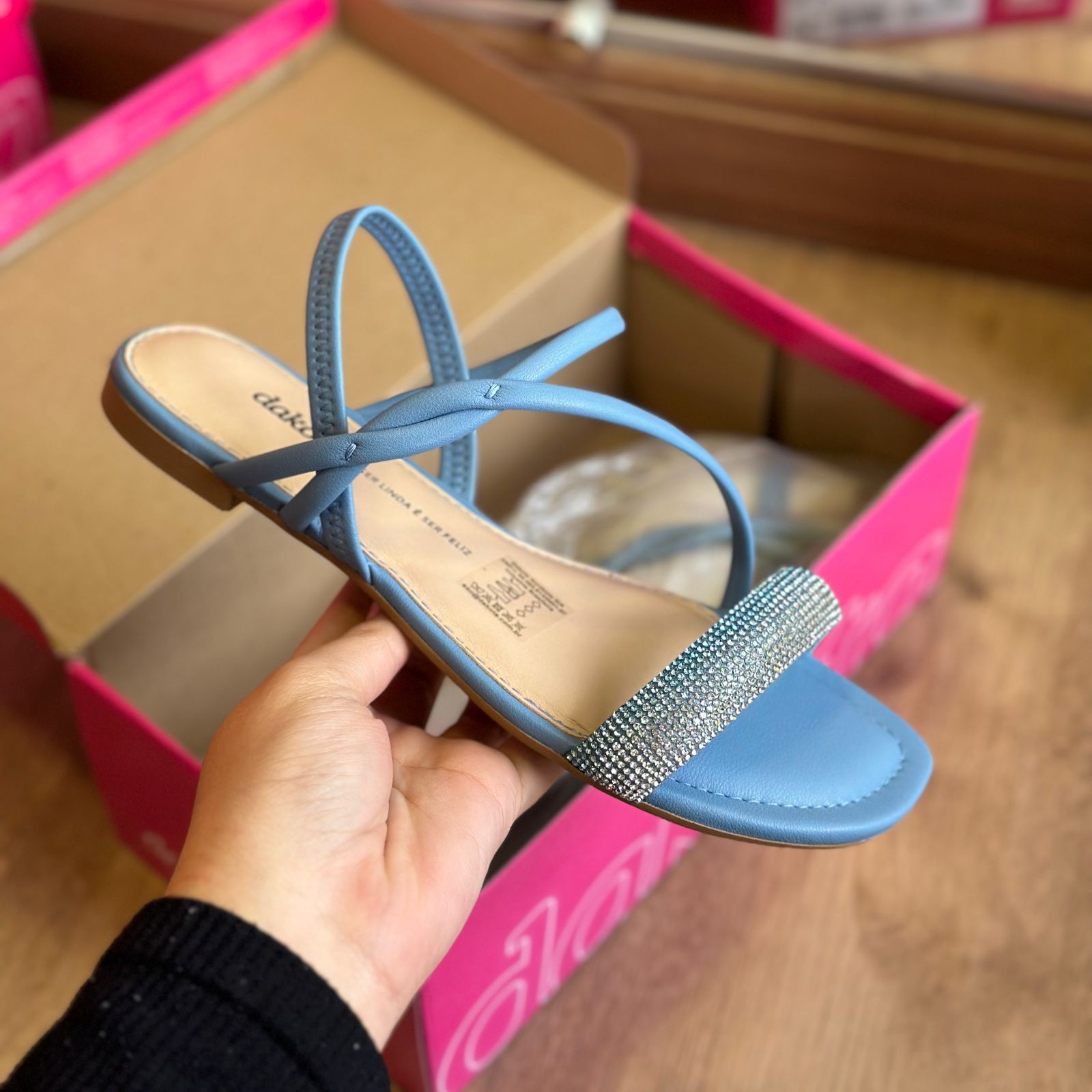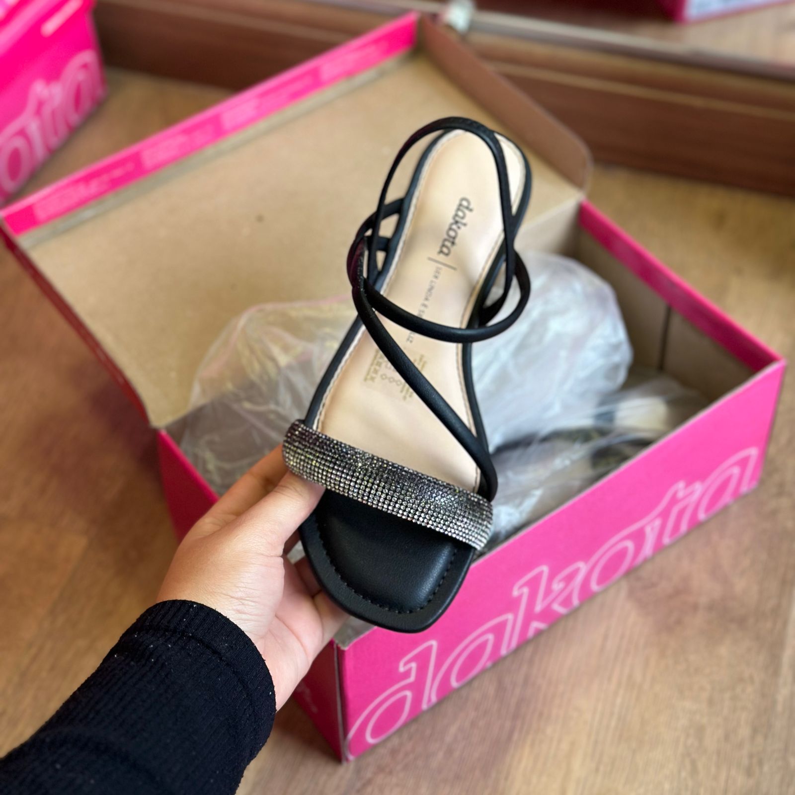 Esta sandália Dakota é perfeita para adicionar um toque de brilho ao seu visual. Com suas tiras finas elegantes, ela oferece um entorno seguro e confortável para seus pés. Ideal para qualquer ocasião, seja de dia ou de noite. Não perca a oportunidade de arrasar com essa sandália!