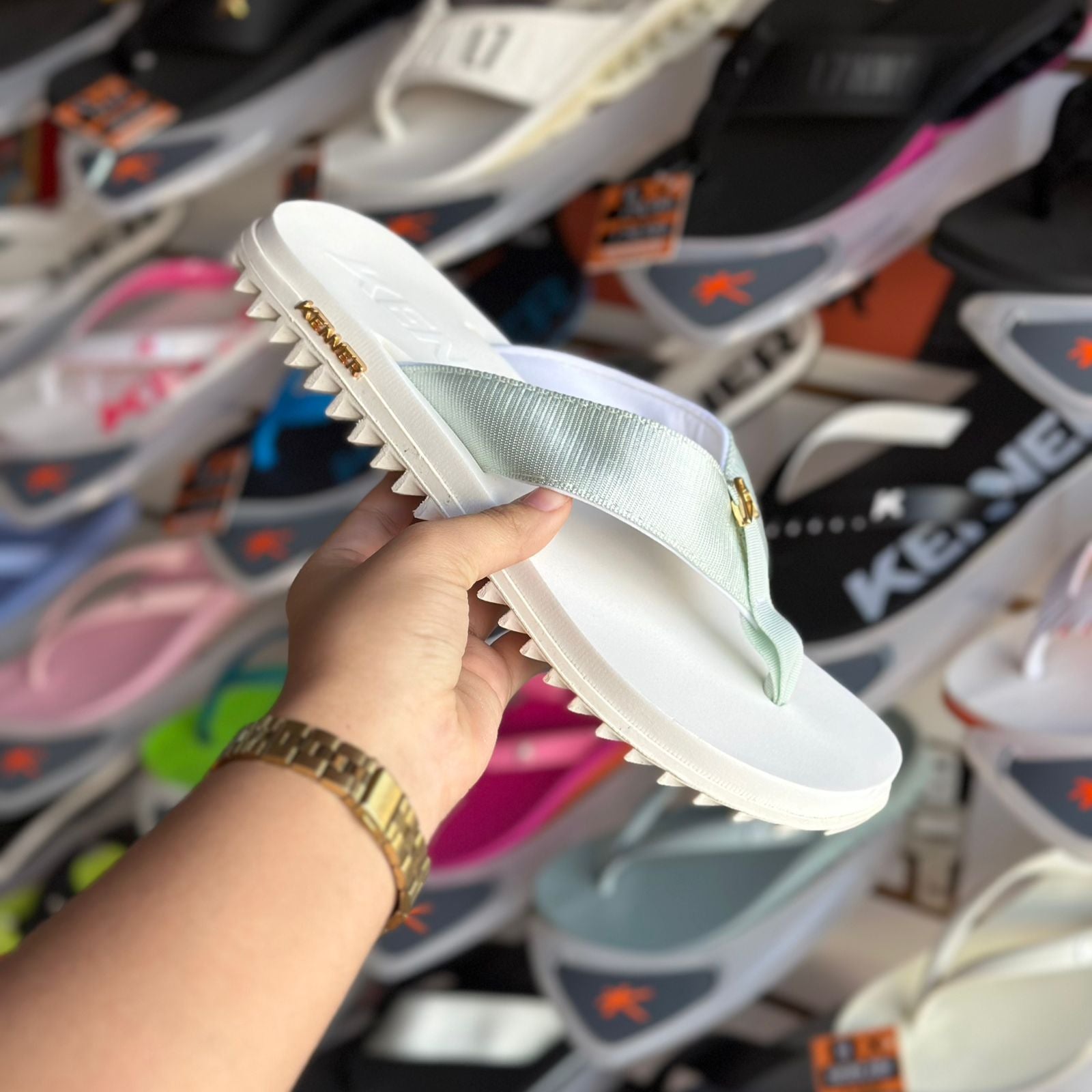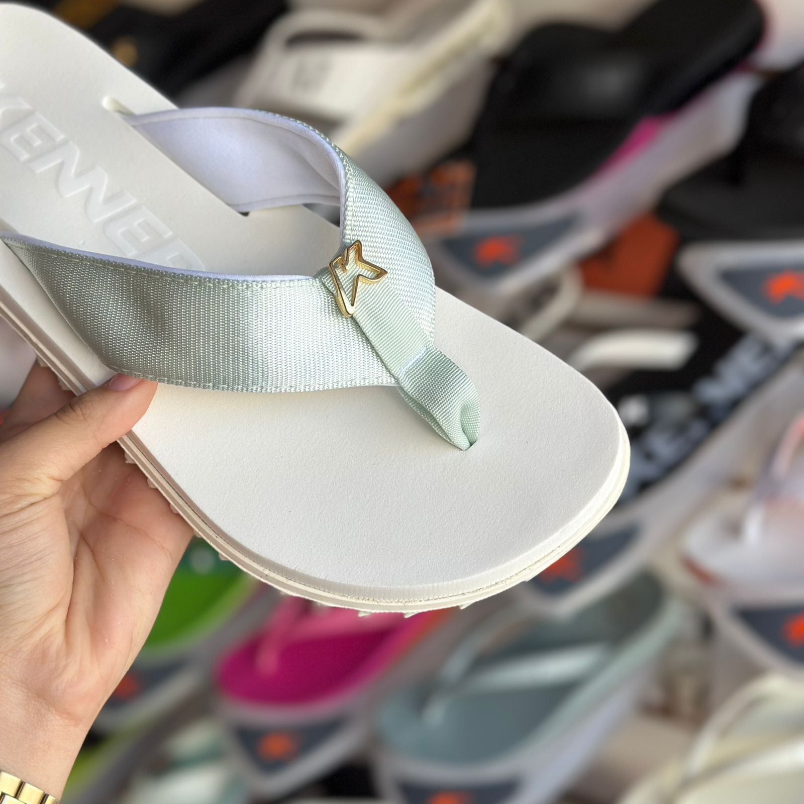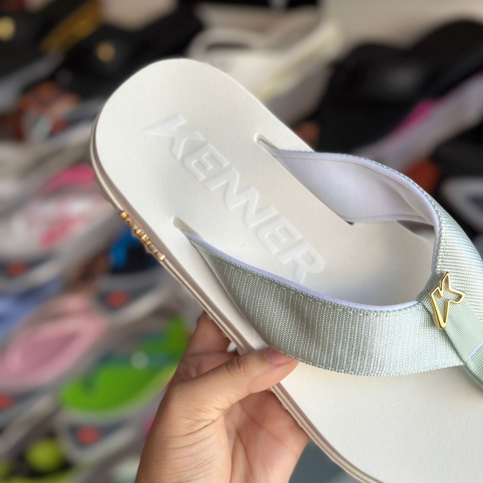 O cabedal, confeccionado com materiais de alta qualidade, oferece durabilidade e um toque suave ao toque. Os detalhes meticulosamente elaborados, como costuras reforçadas e o icônico logotipo da Kenner, conferem um charme exclusivo à sandália.