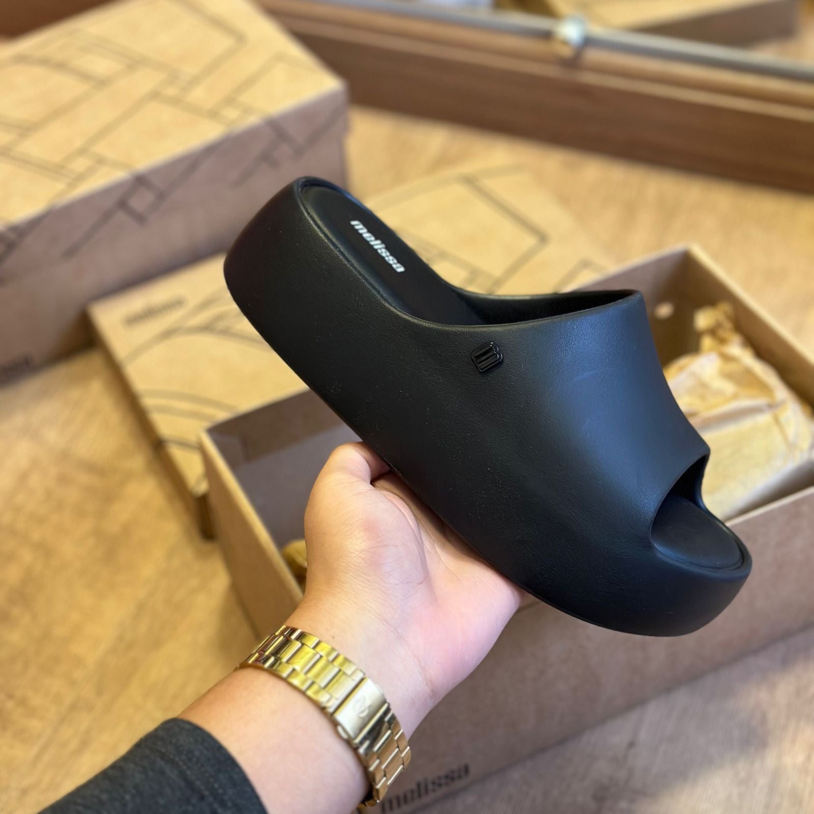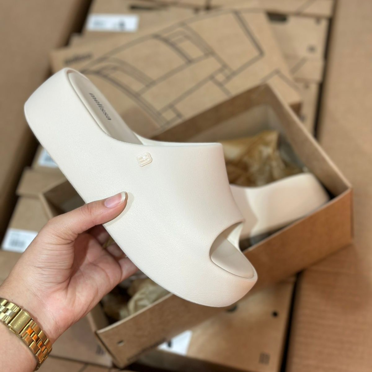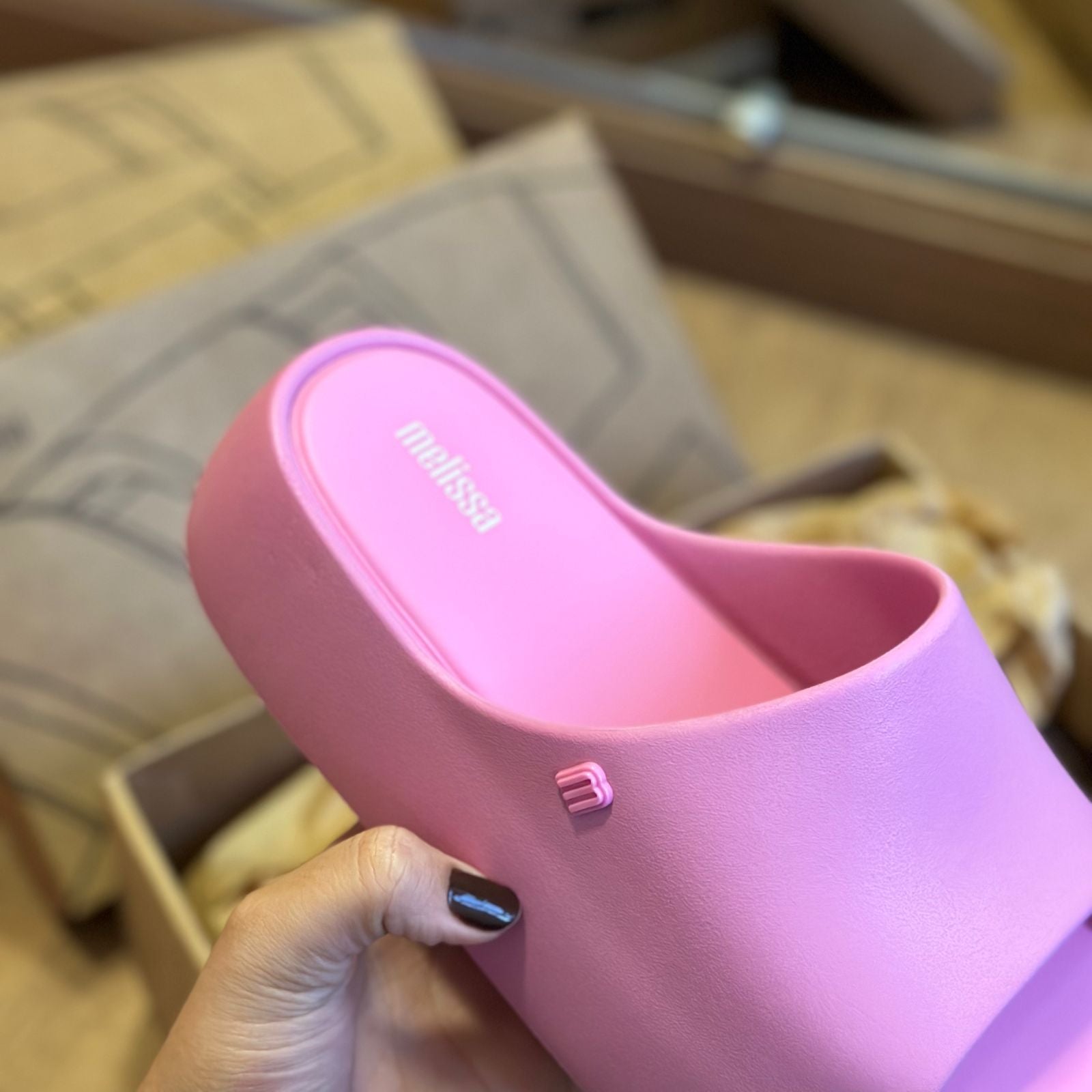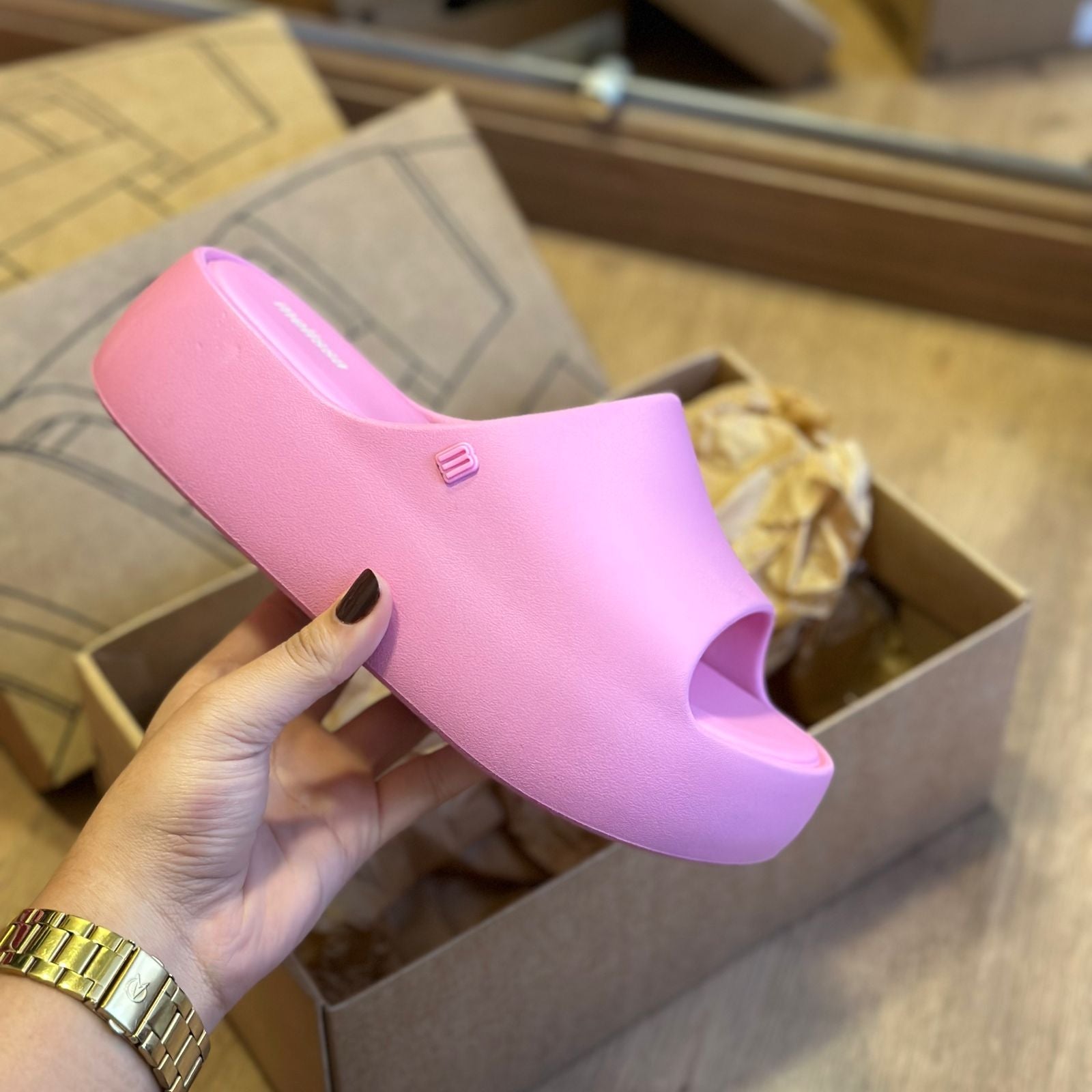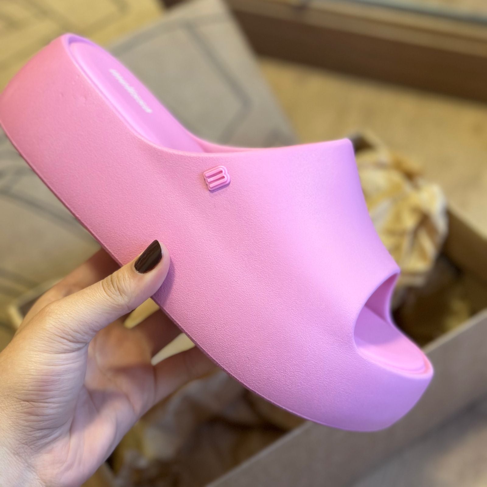 A Melissa Free é uma família de produtos que estão ao passo dos novos tempos. Fabricados a partir de EVA, os calçados e acessórios são mais leves e sustentáveis. A novidade é a Melissa Free Platform Slide, um tamanco estilo slide cheio de informações de moda. O modelo tem aparência robusta, mas é superleve e confortável para todos os momentos do dia. Destaque que chegou em 3 opções de cores: os clássicos preto e rosa, junto do bege acompanhando a moda.