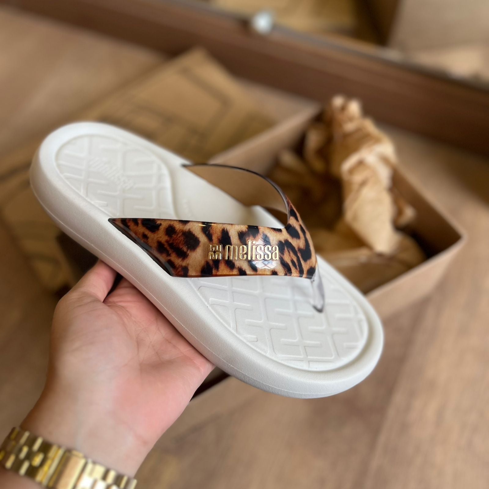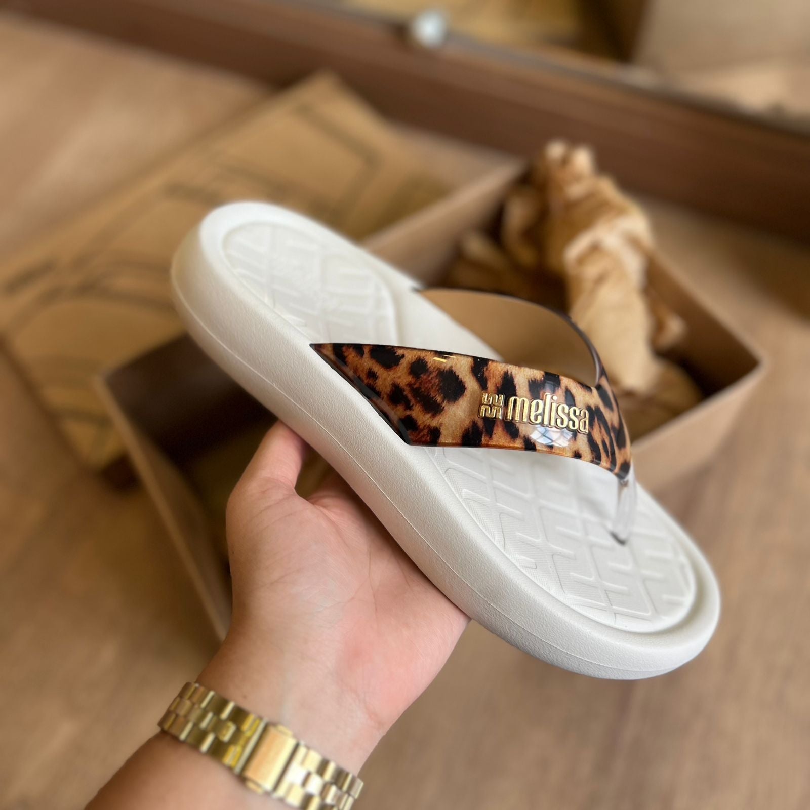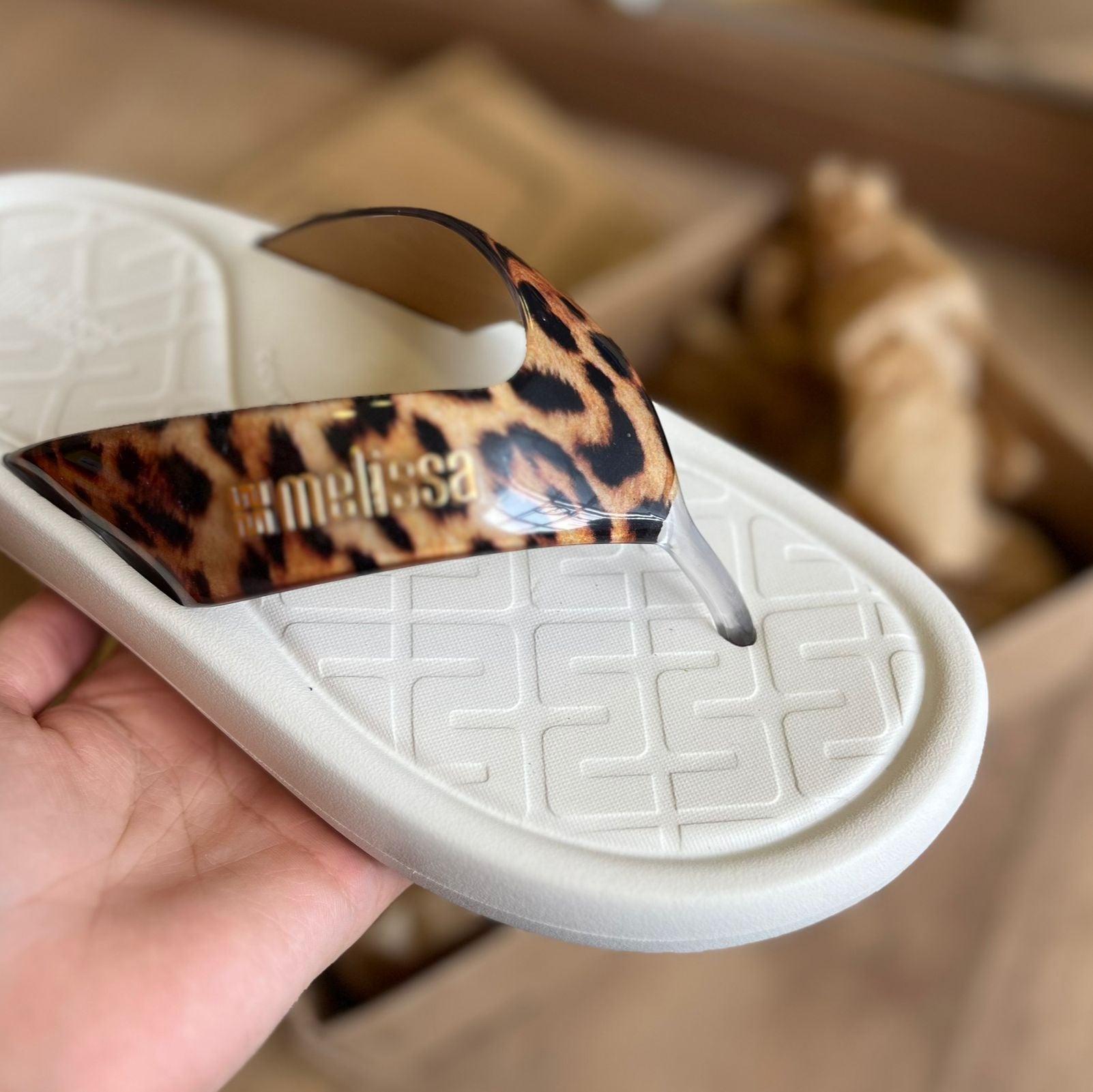 Arrase com a Sandália Melissa Station Flip Flop Bege 36045! Com estampa de onça (pra arrasar na selva urbana!), esse calçado é uma combinação perfeita de estilo e conforto. Desfrute da tendência animal print com a qualidade e irreverência da Melissa. Garanta já a sua!