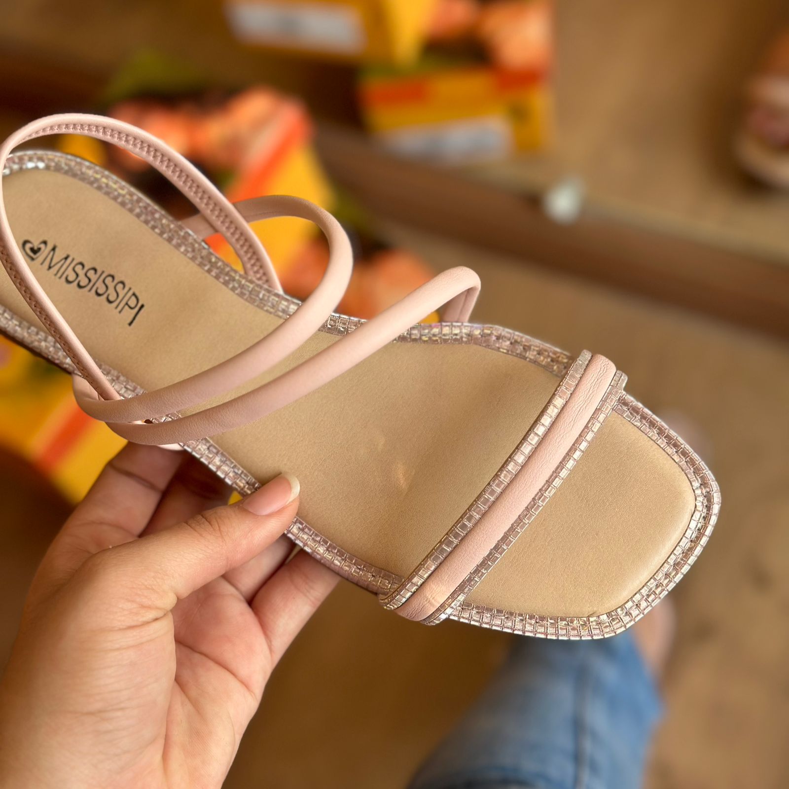 A Sandália Mississipi Rasteira é perfeita para mulheres que buscam conforto, estilo e praticidade, pois não possui fechamentos e está disponível nas cores rosa e bege. Seu design minimalista e atemporal combina elementos clássicos com toques contemporâneos, resultando em um visual versátil e elegante. A parte superior da sandália é feita de tiras macias e maleáveis de material sintético, que se adaptam perfeitamente aos pés. O destaque do modelo fica por conta do detalhe metalizado com textura presente na tira frontal e no contorno da sola, que adiciona um toque de sofisticação e modernidade ao calçado. O bico quadrado e o salto baixo de 1,5 cm conferem um ar mais casual e despojado ao modelo, sem abrir mão da elegância. Com um peso de apenas 0,446 kg, a sandália é extremamente leve e confortável, ideal para o dia a dia e momentos de lazer.