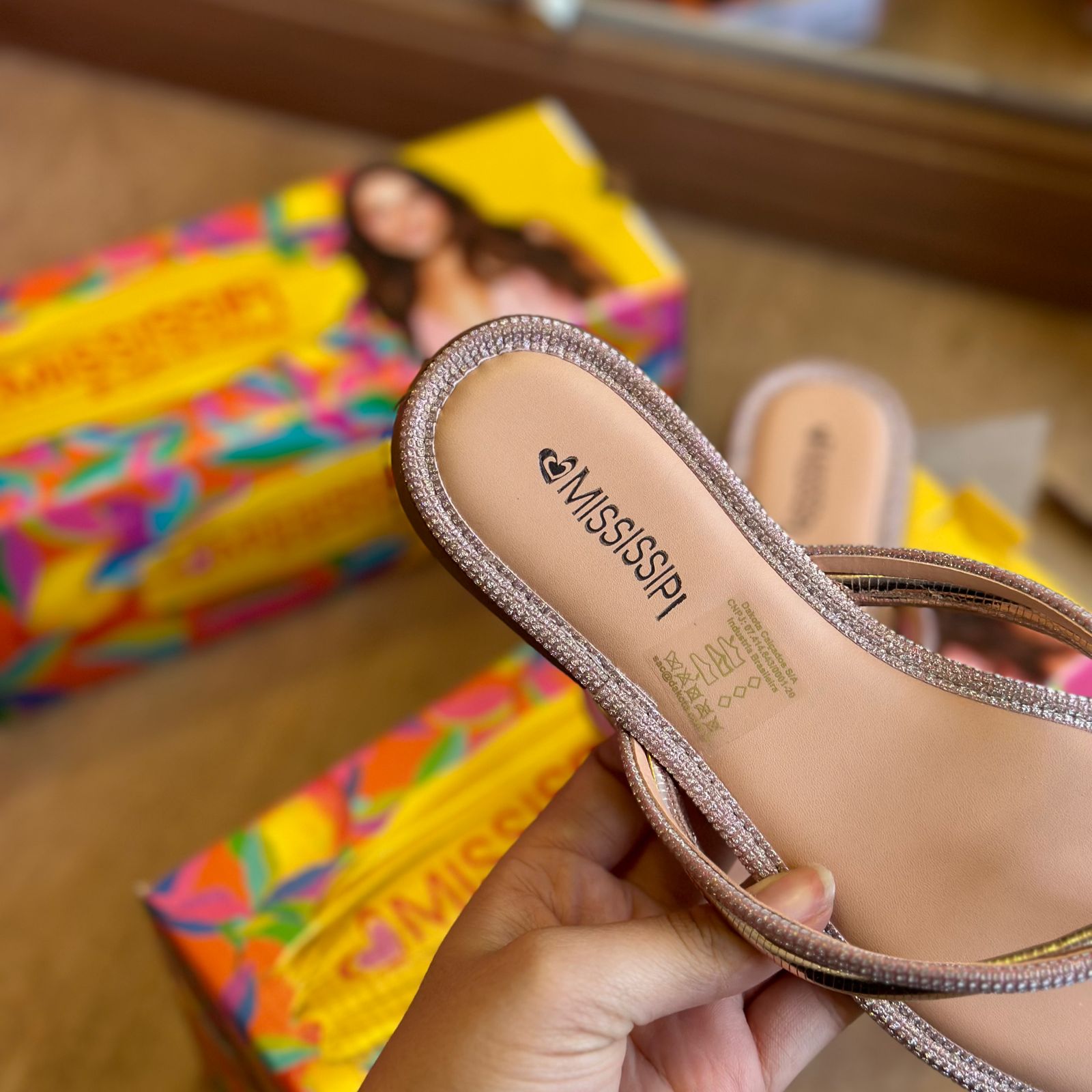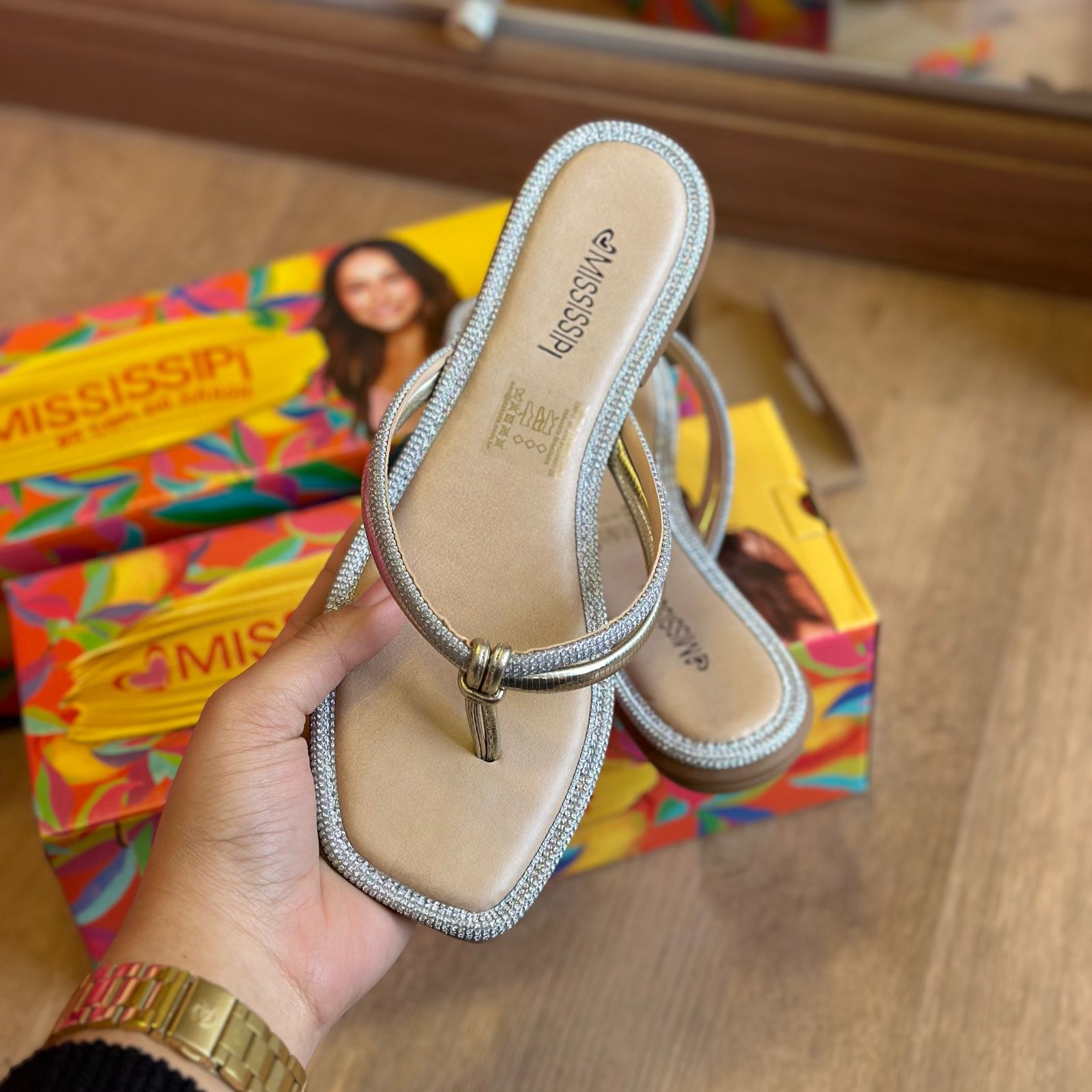 Fabricado com materiais de alta qualidade, o chinelo possui uma tira confeccionada em material sintético com acabamento em brilho cristal, que adiciona um toque de sofisticação ao calçado. Sua construção anatômica é especialmente desenvolvida para se adaptar aos contornos dos pés.