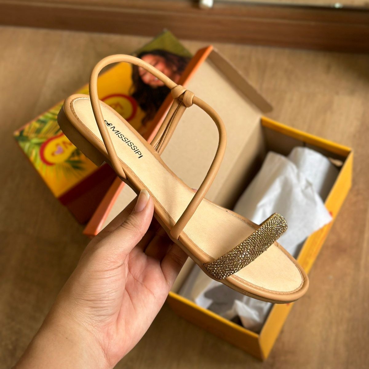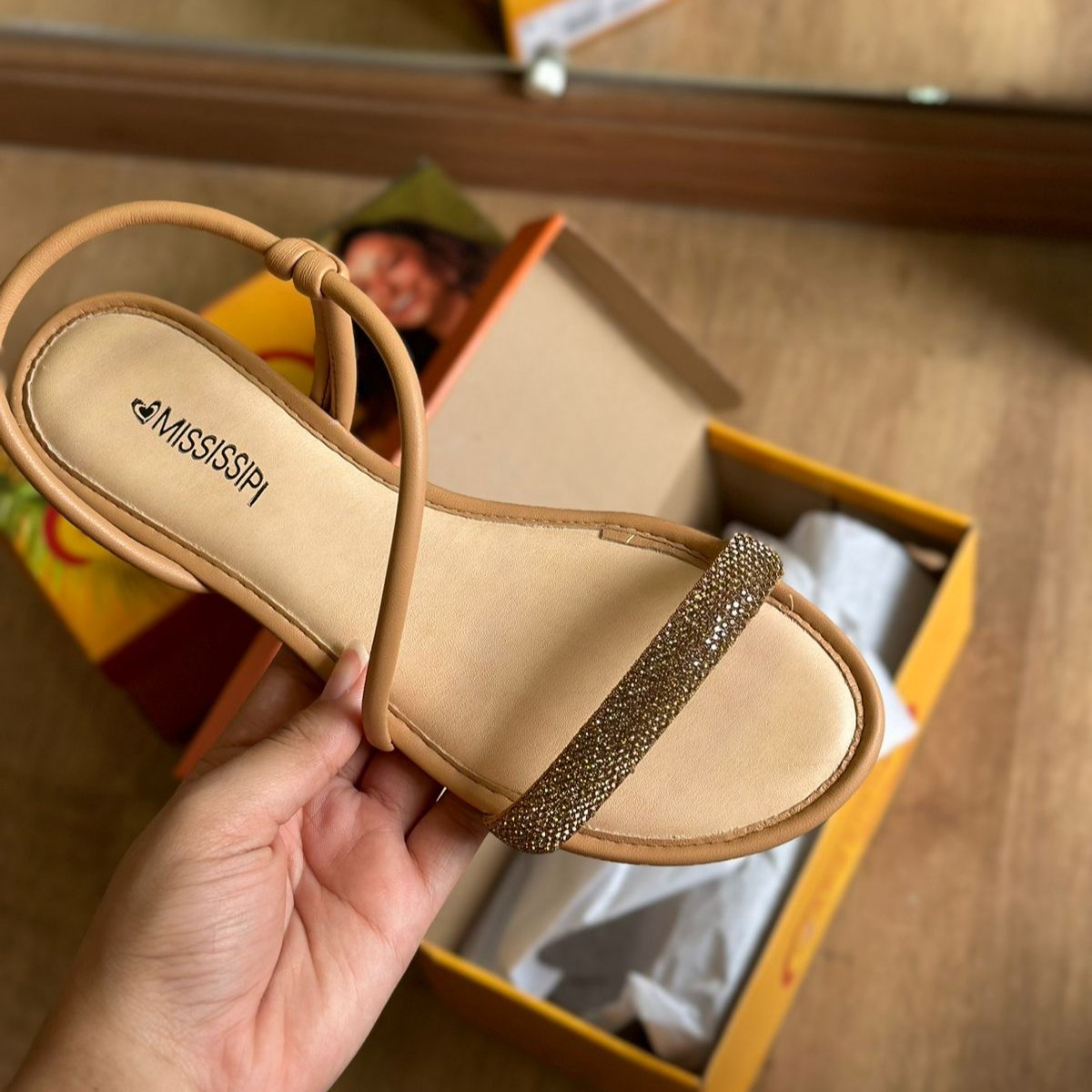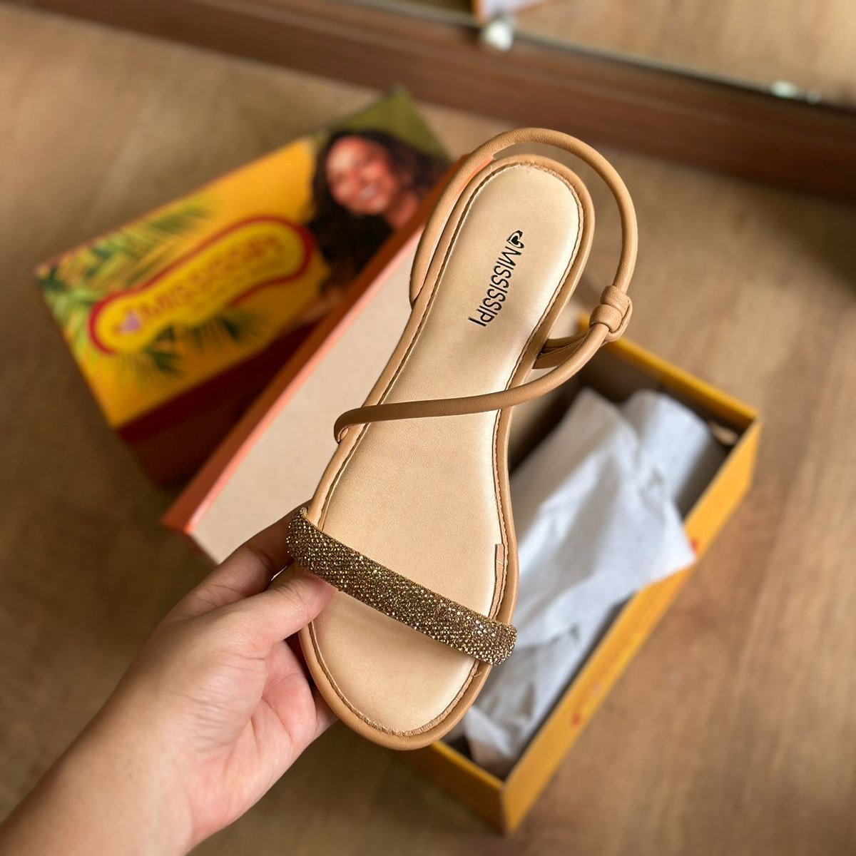 Sandália Mississipi Rasteira Tira Brilhosa MC441