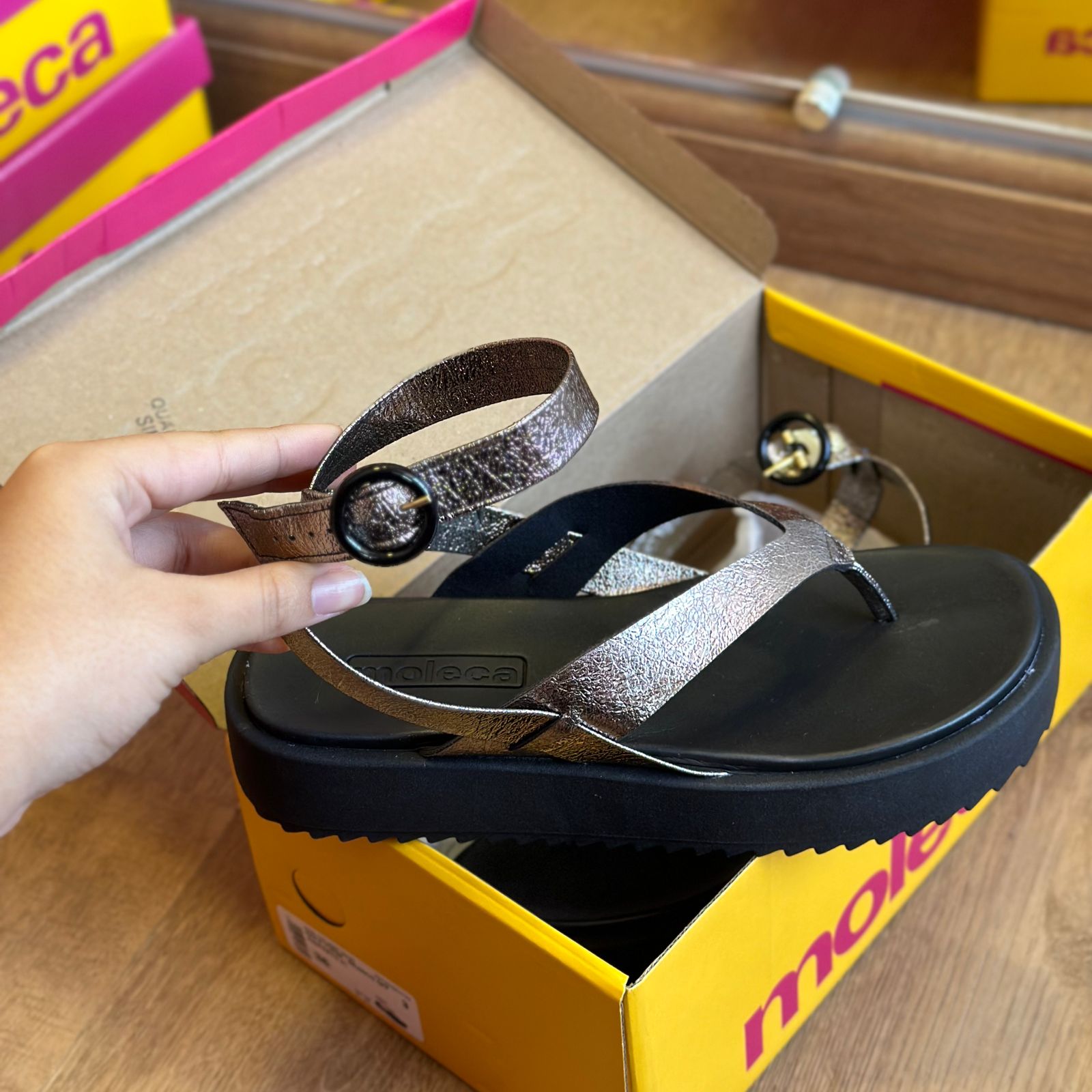 Desfile com o charme singular da Sandália Moleca 5489.105! Esta sandália não apenas envolve seus pés com conforto, mas também adiciona um toque de glamour com suas tiras brilhosas. Cada passo é uma celebração de elegância, graças ao design impecável das tiras que conferem um brilho extraordinário. A forma de sandália torna essa sandália uma escolha prática e estilosa para diversas ocasiões. Adquira agora a Sandália Moleca 5489.104 e experimente a fusão perfeita entre conforto, brilho e moda descontraída. Seu estilo, seu brilho, sua Moleca! 💖✨👣