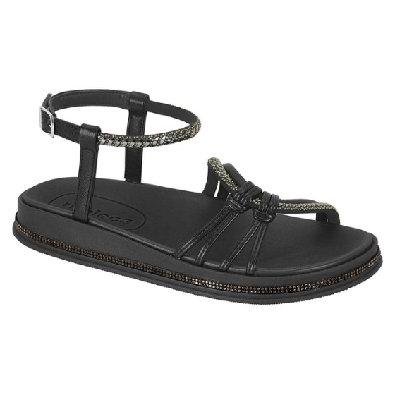 É uma peça versátil e confortável, com cabedal feito em material sintético e detalhes com tiras em strass, conferindo um toque de glamour ao design casual. A palmilha é acolchoada e super confortável, garantindo conforto ao longo do dia. O solado é emborrachado, proporcionando aderência e segurança. O bico arredondado assegura o conforto dos dedos, e o fechamento em fivela facilita o calce. Com acabamento cuidadoso e excelente respirabilidade, essa sandália é perfeita para quem busca estilo e funcionalidade em uma peça única. Altura da sola 2,5 cm.