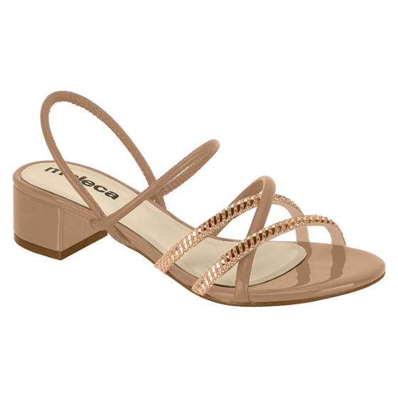 A sandália feminina Moleca é confeccionada com material em verniz de alta qualidade. O fechamento em elástico facilita o calce e ajuste, adaptando-se ao formato do pé com praticidade e segurança. Seu salto grosso de 3 cm, oferecendo uma altura confortável e estável para o uso diário ou para ocasiões especiais.