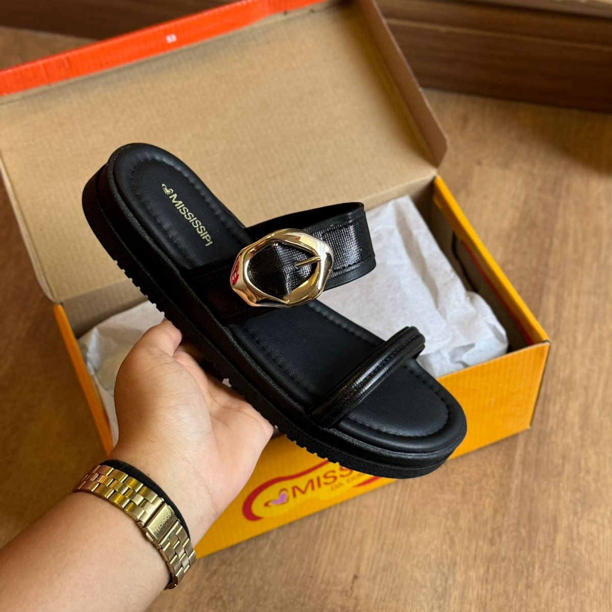 Sandália Papete Mississipi Detalhe Dourado MC581