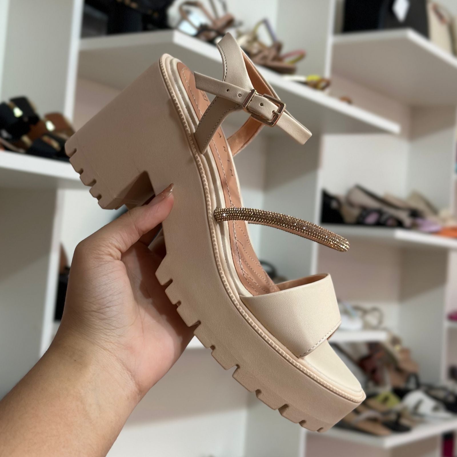 Com sua sola alta e tratorada, essa sandália se destaca pela sua pegada urbana e cheia de atitude. Combine com vestidos, saias, expressando o ar leve e fresco da estação mais quente do ano!