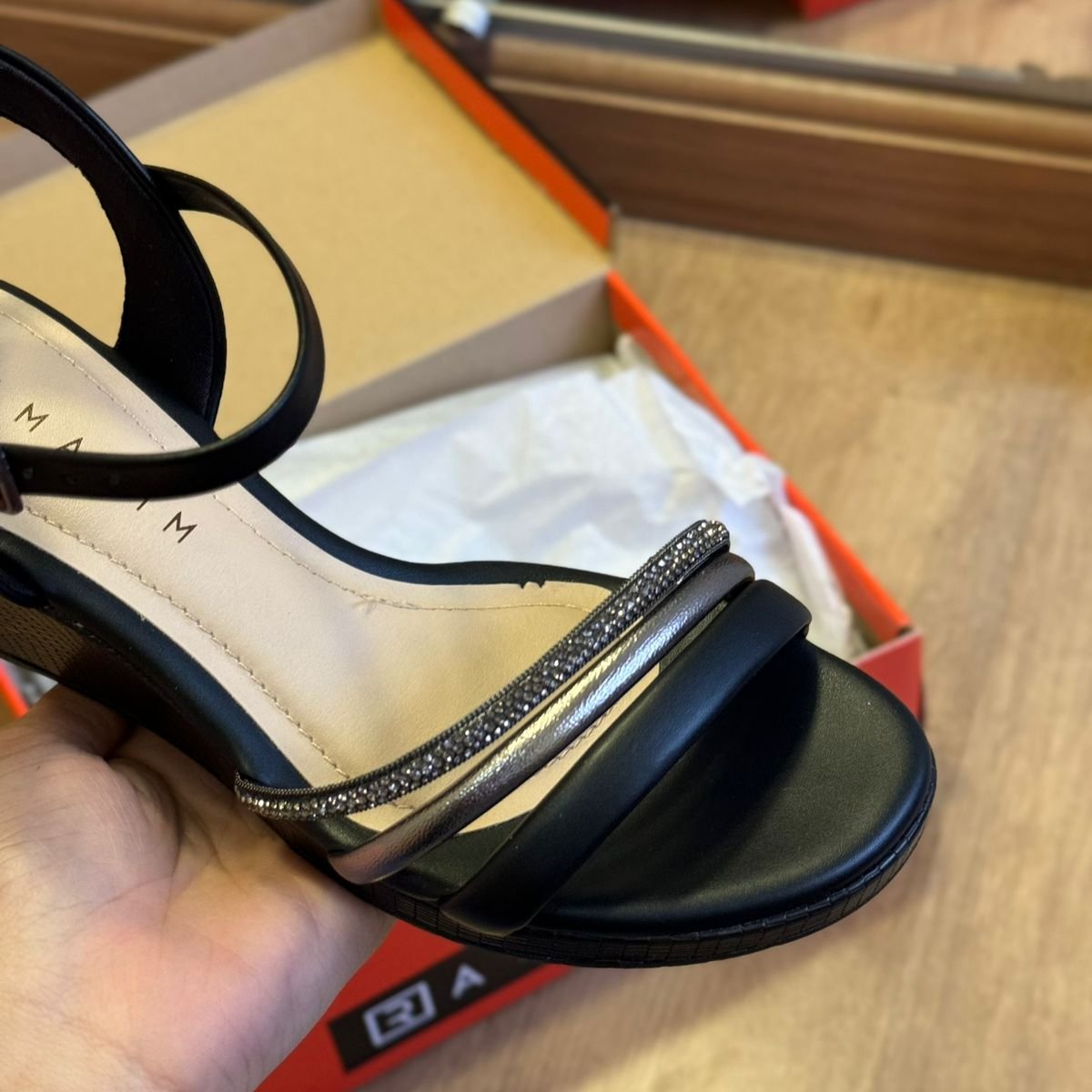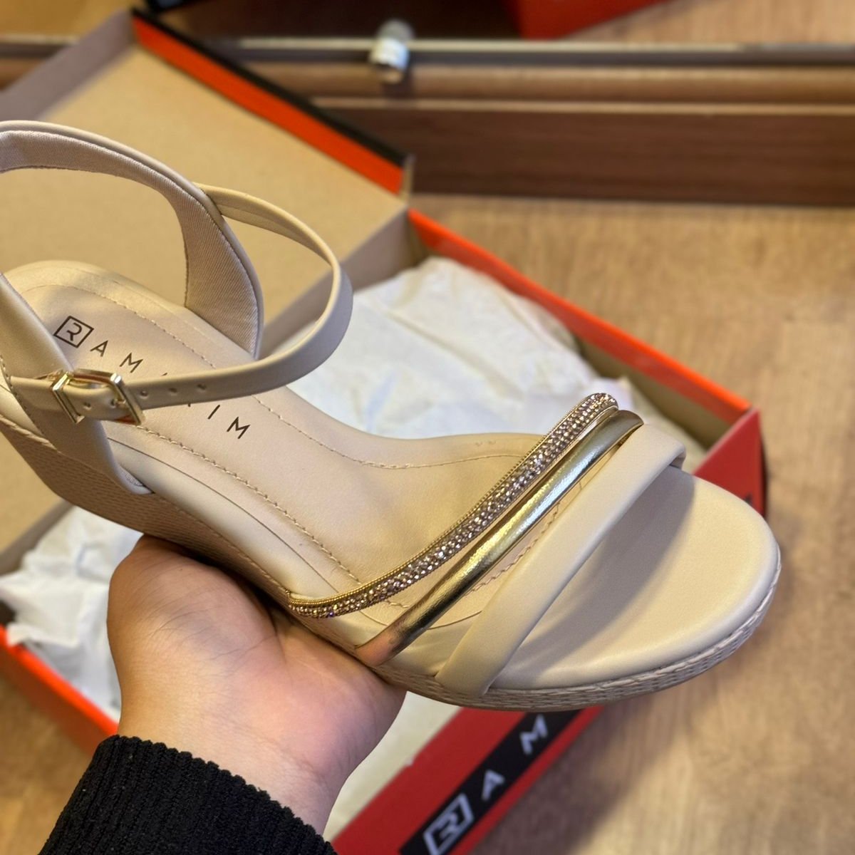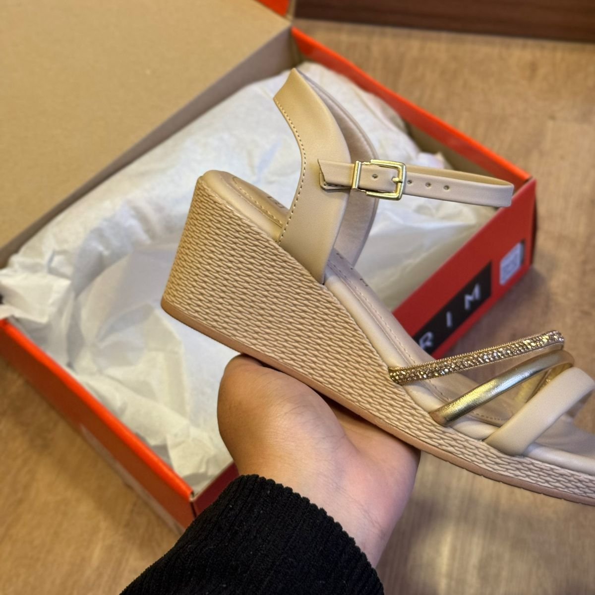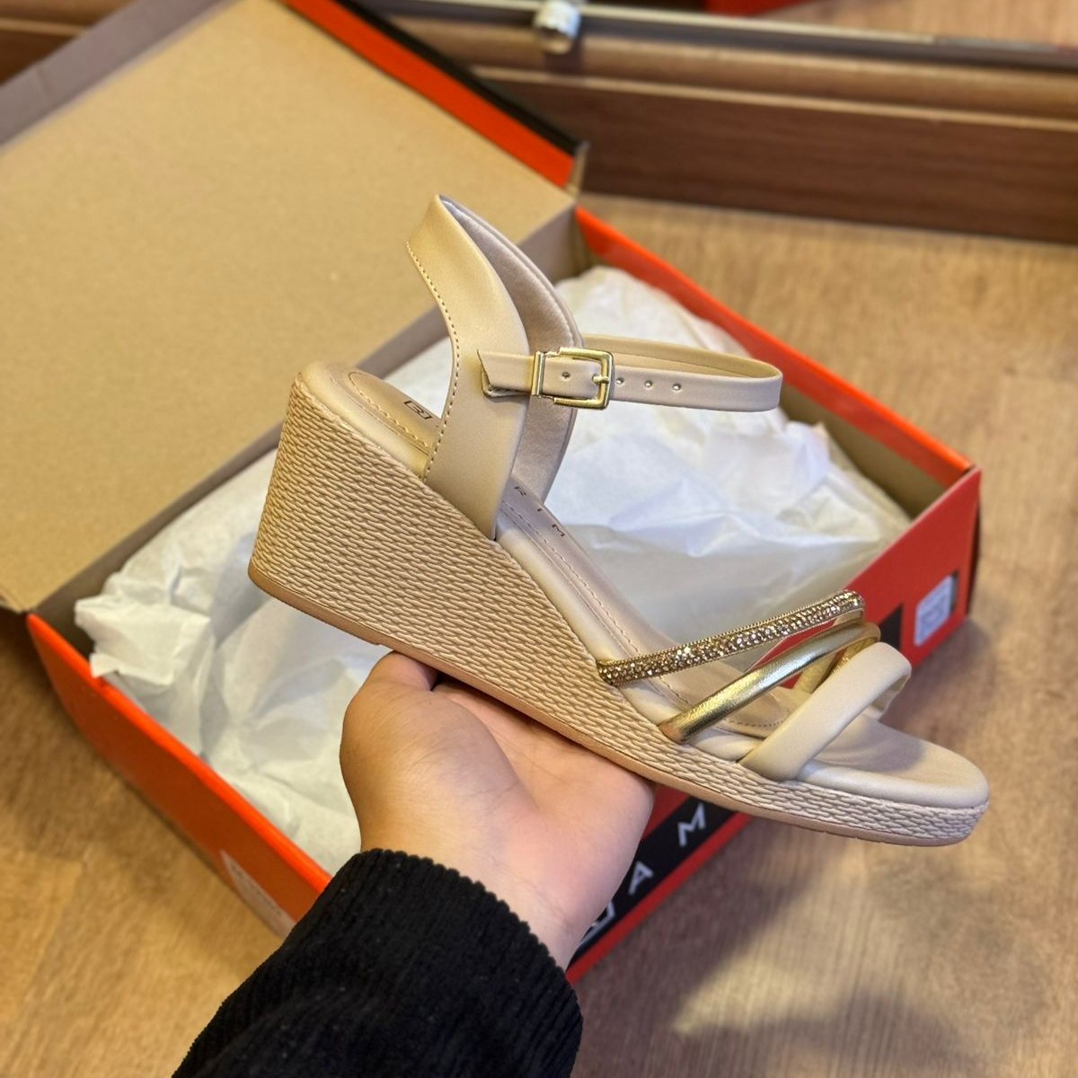 Com um salto anabela de altura média, proporciona estabilidade e conforto durante todo o dia, sem abrir mão do charme. O design conta com tiras finas e brilhos discretos em dourado, conferindo um visual contemporâneo e versátil Inspirada no conceito de moda minimalista, essa sandália é ideal para mulheres que valorizam a beleza nos detalhes. Seu salto anabela, revestido com textura de corda, complementa um estilo natural chic, que remete à leveza e à simplicidade com sofisticação. O fechamento ajustável no tornozelo garante uma firmeza extra, tornando-a perfeita para ocasiões que pedem estilo sem abrir mão do conforto.