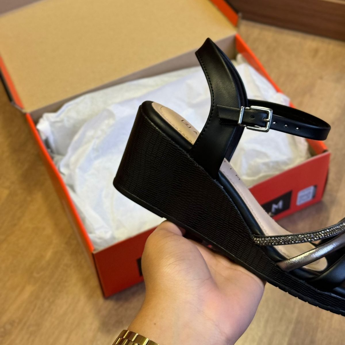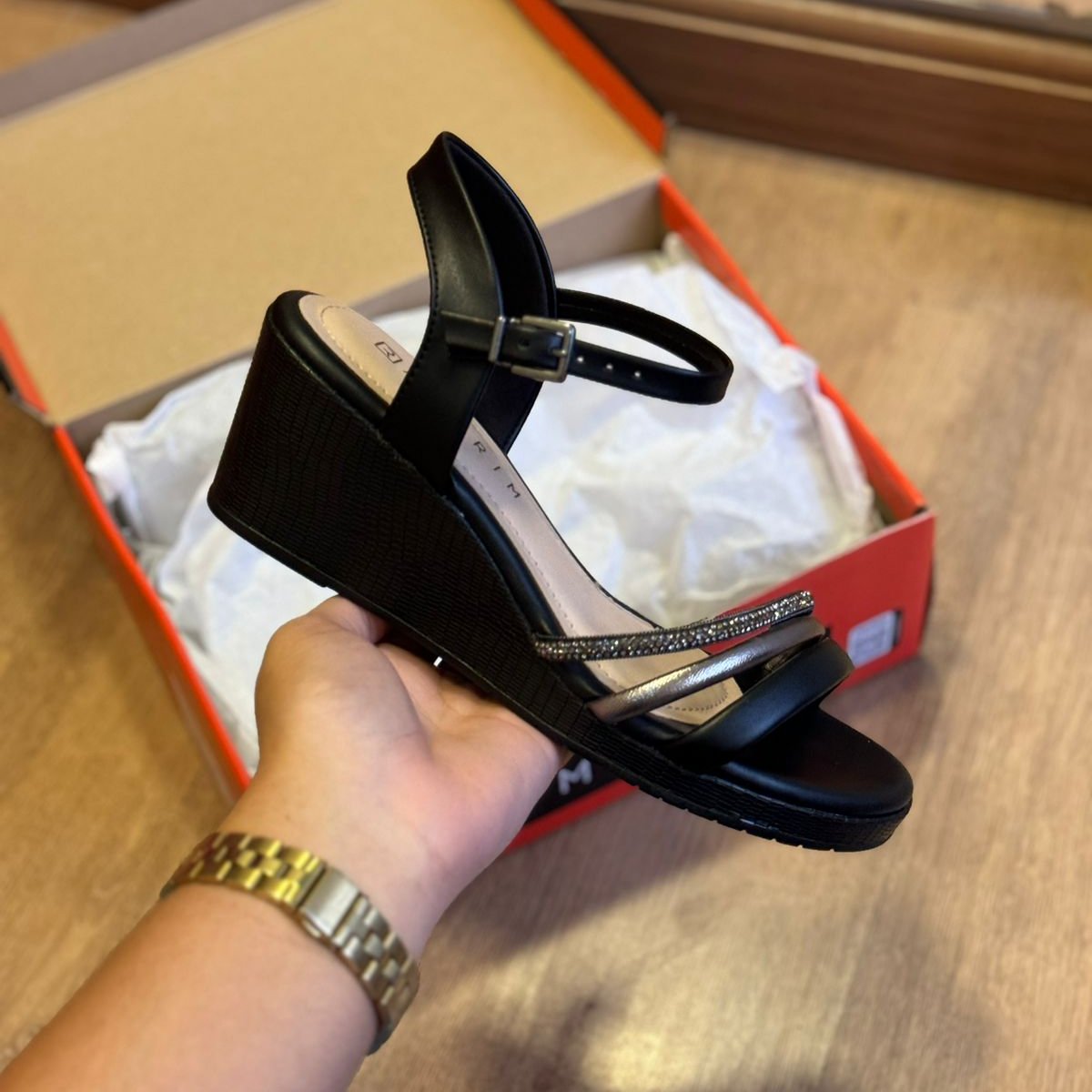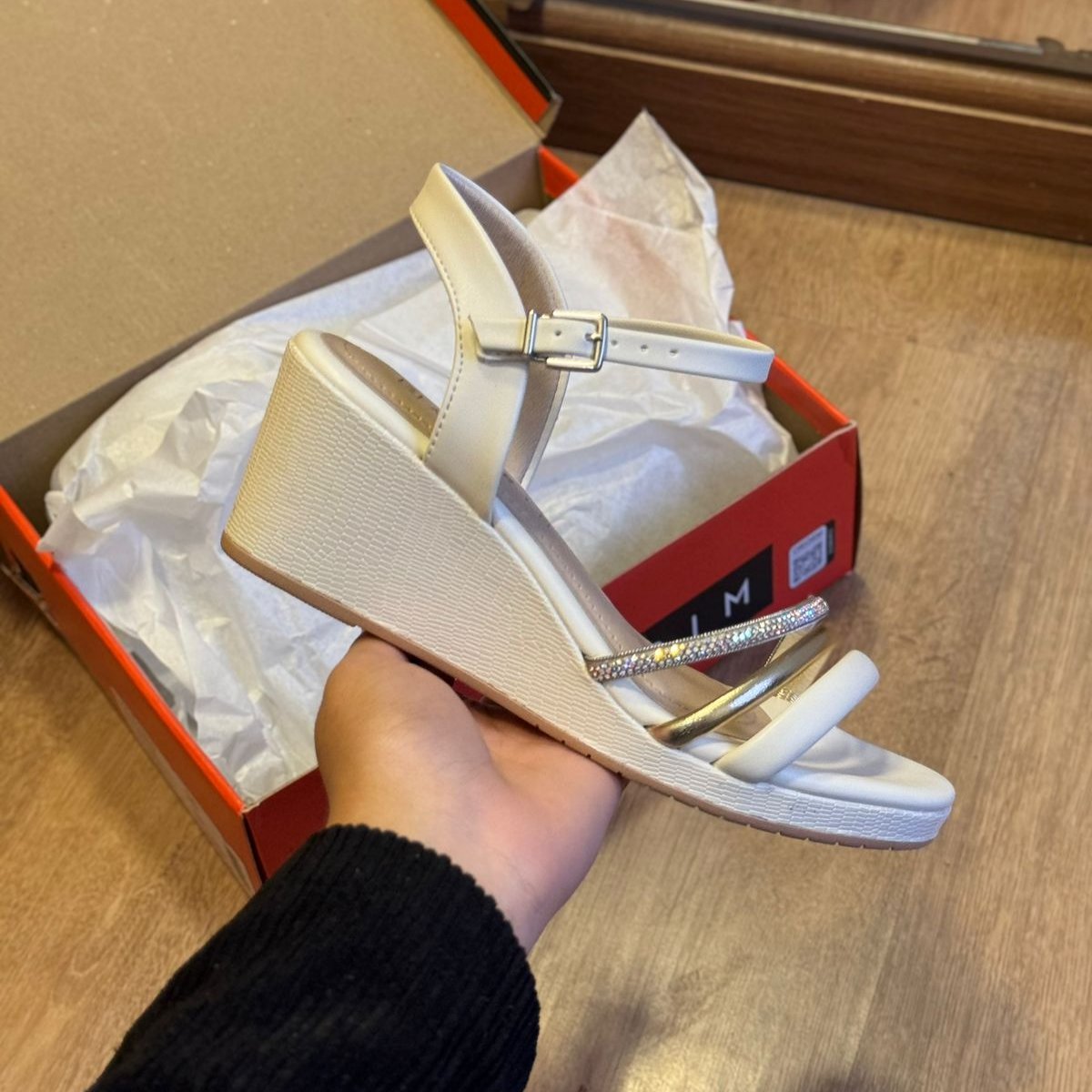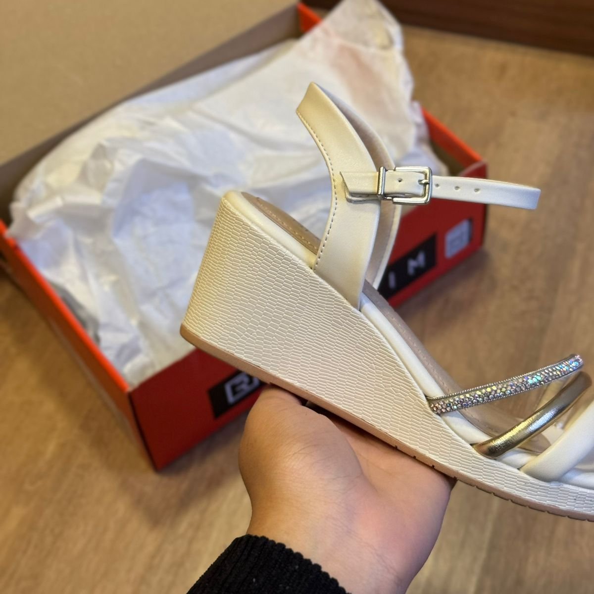 Com um salto anabela de altura média, proporciona estabilidade e conforto durante todo o dia, sem abrir mão do charme. O design conta com tiras finas e brilhos discretos em dourado, conferindo um visual contemporâneo e versátil Inspirada no conceito de moda minimalista, essa sandália é ideal para mulheres que valorizam a beleza nos detalhes. Seu salto anabela, revestido com textura de corda, complementa um estilo natural chic, que remete à leveza e à simplicidade com sofisticação. O fechamento ajustável no tornozelo garante uma firmeza extra, tornando-a perfeita para ocasiões que pedem estilo sem abrir mão do conforto.