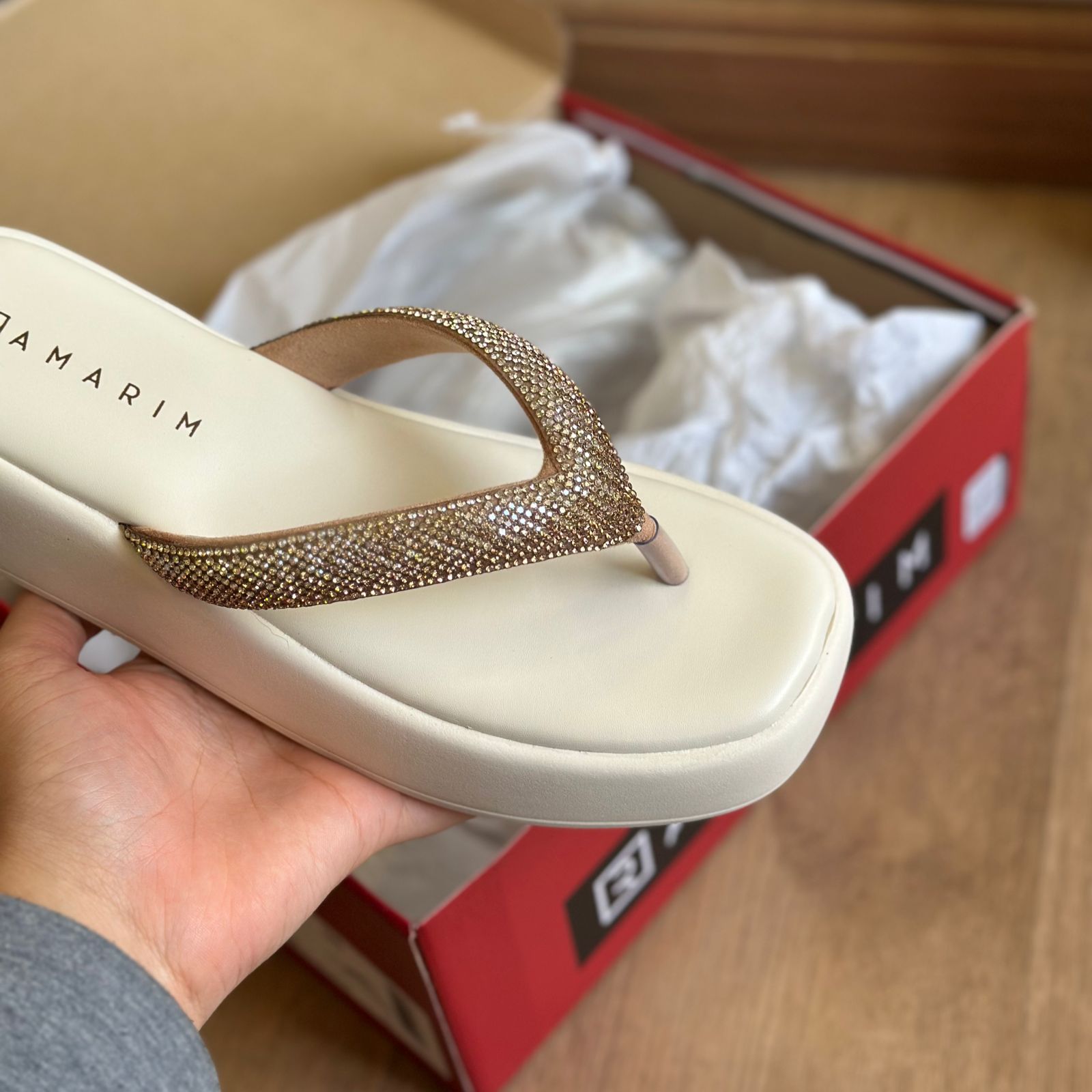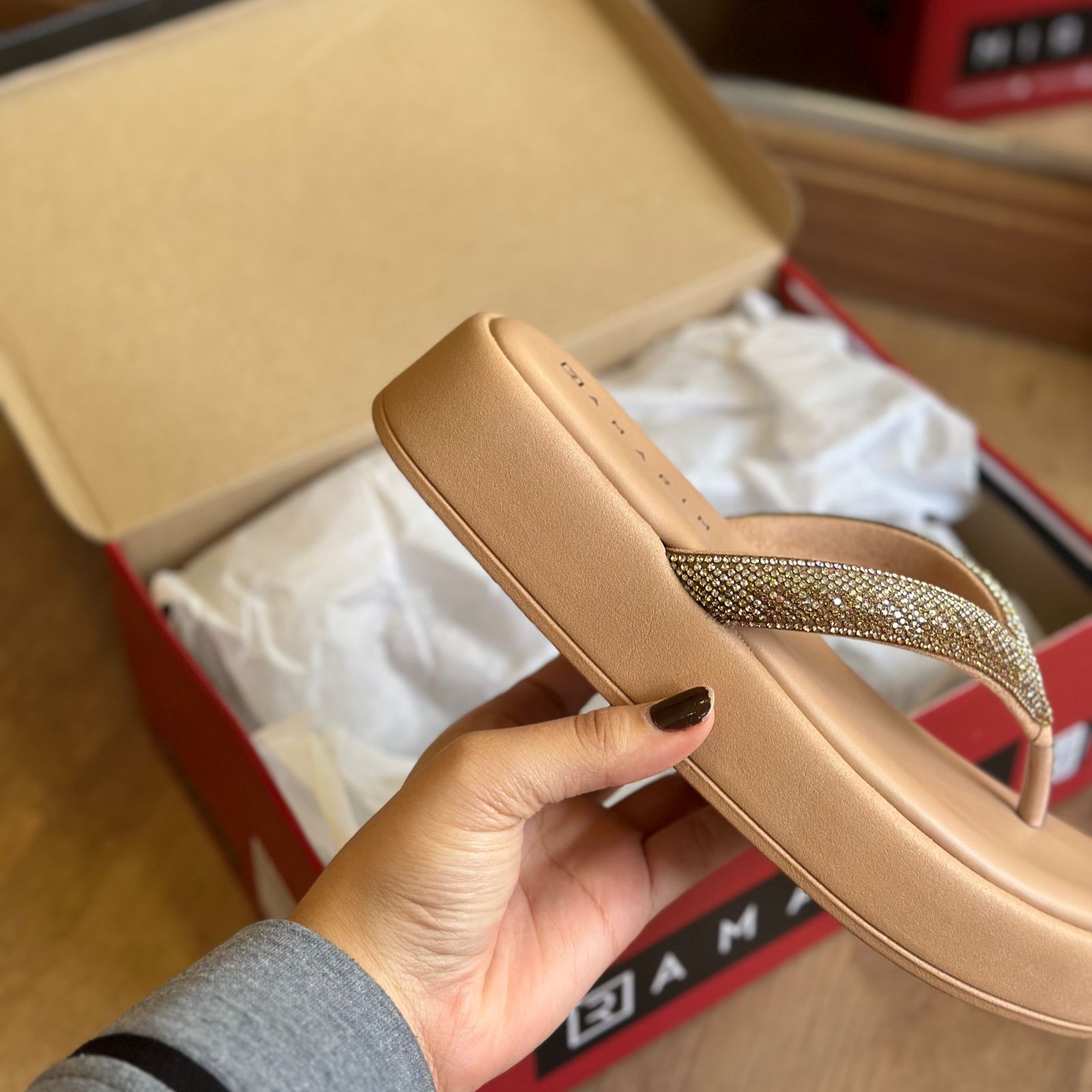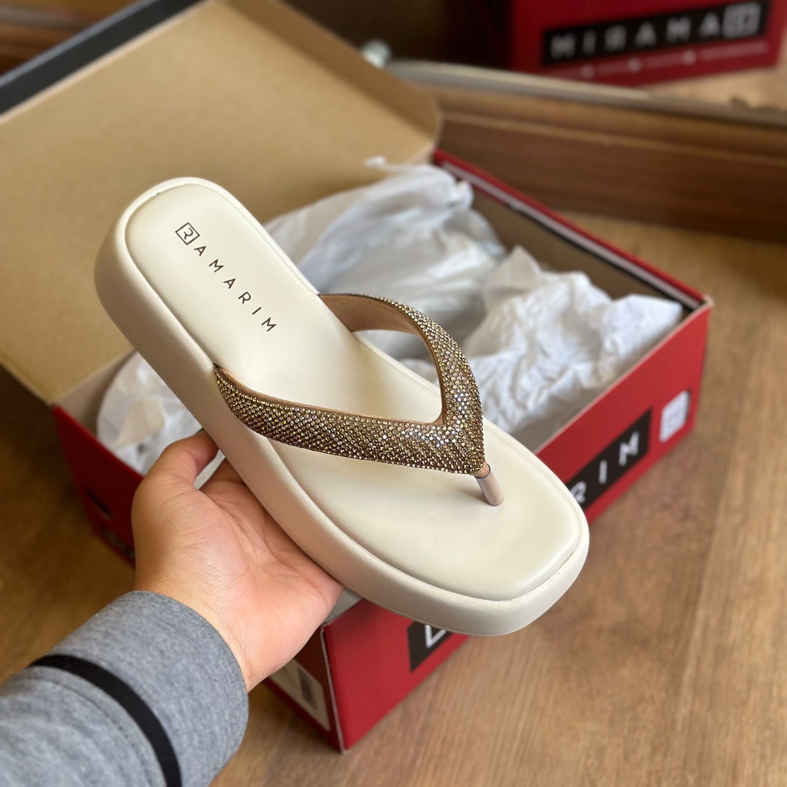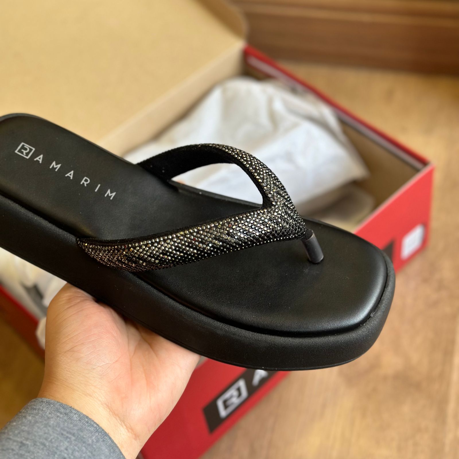 A Sandália Ramarim Tira com Brilho 2439236 é a combinação perfeita de conforto e estilo. Com uma base macia que proporciona uma sensação de leveza a cada passo, ela é ideal para o dia a dia. As tiras com brilho dão um toque especial e sofisticado, elevando o visual de uma peça que, à primeira vista, parece um chinelo, mas surpreende pela elegância. Versátil e prática, esta sandália é a escolha certa para quem deseja unir conforto e um brilho discreto em um único calçado.
