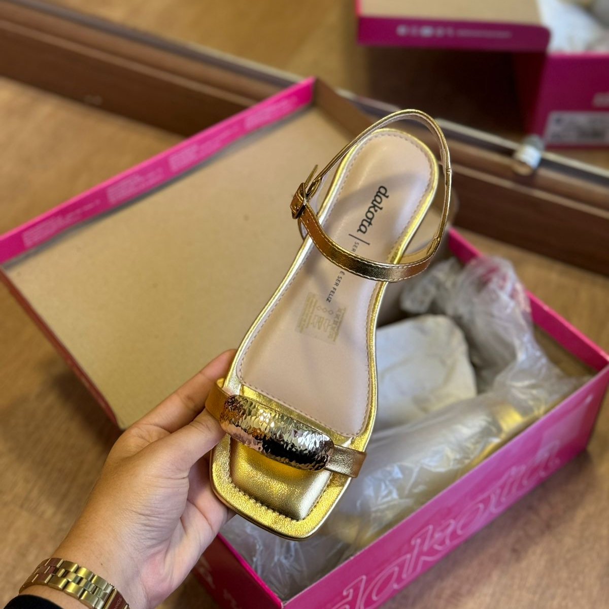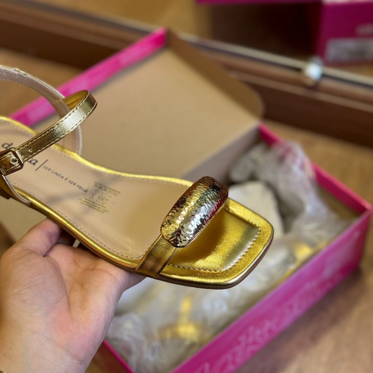 Design Sofisticado: Com acabamento metalizado e tiras finas, esta sandália proporciona um visual delicado e feminino.