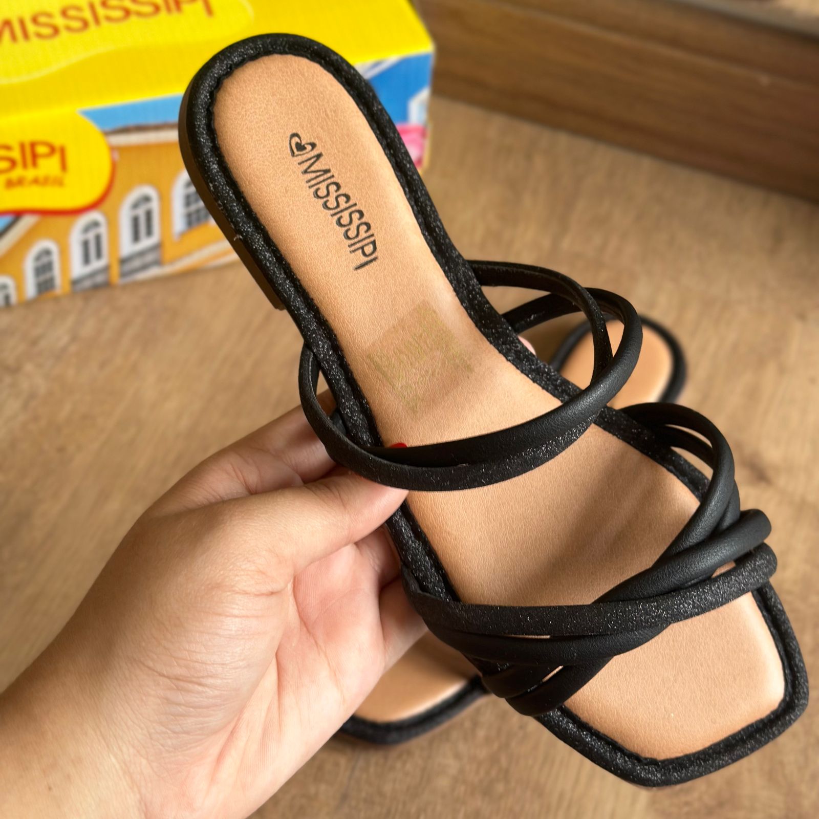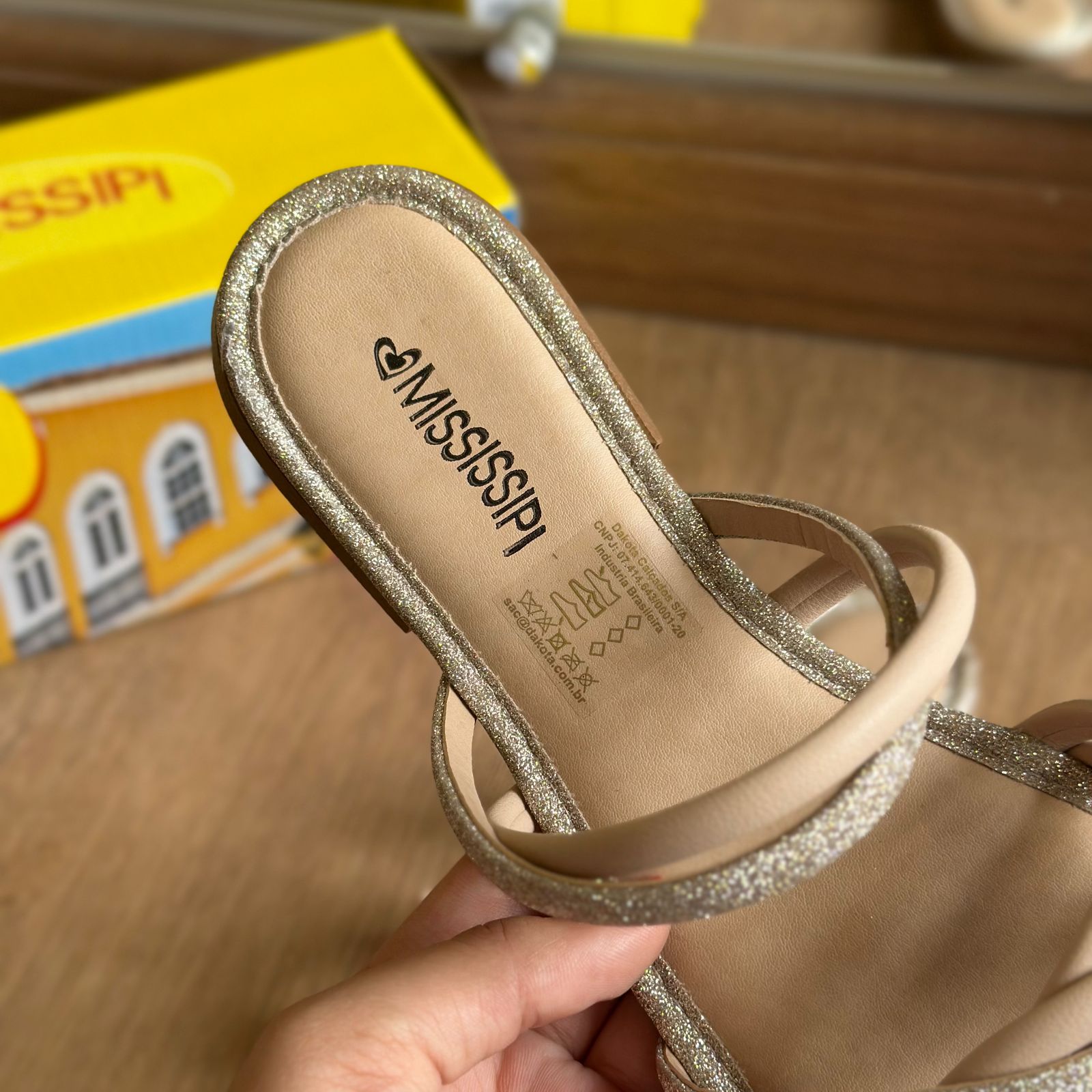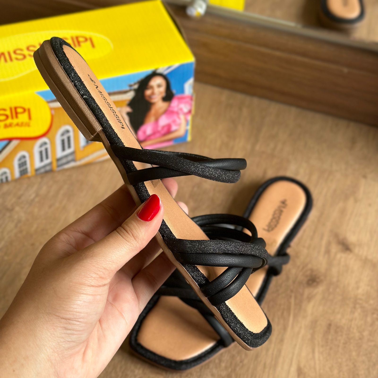 O Slide Mississipi com Brilhos é a escolha ideal para quem procura por um calçado versátil, moderno e confortável para os dias de calor. Com contorno quadrado da sola, este slide é composto por tiras finas entrelaçadas que proporcionam um visual minimalista e elegante. O grande destaque deste modelo são os brilhos nas tiras, que adicionam um toque de sofisticação e brilho ao calçado.