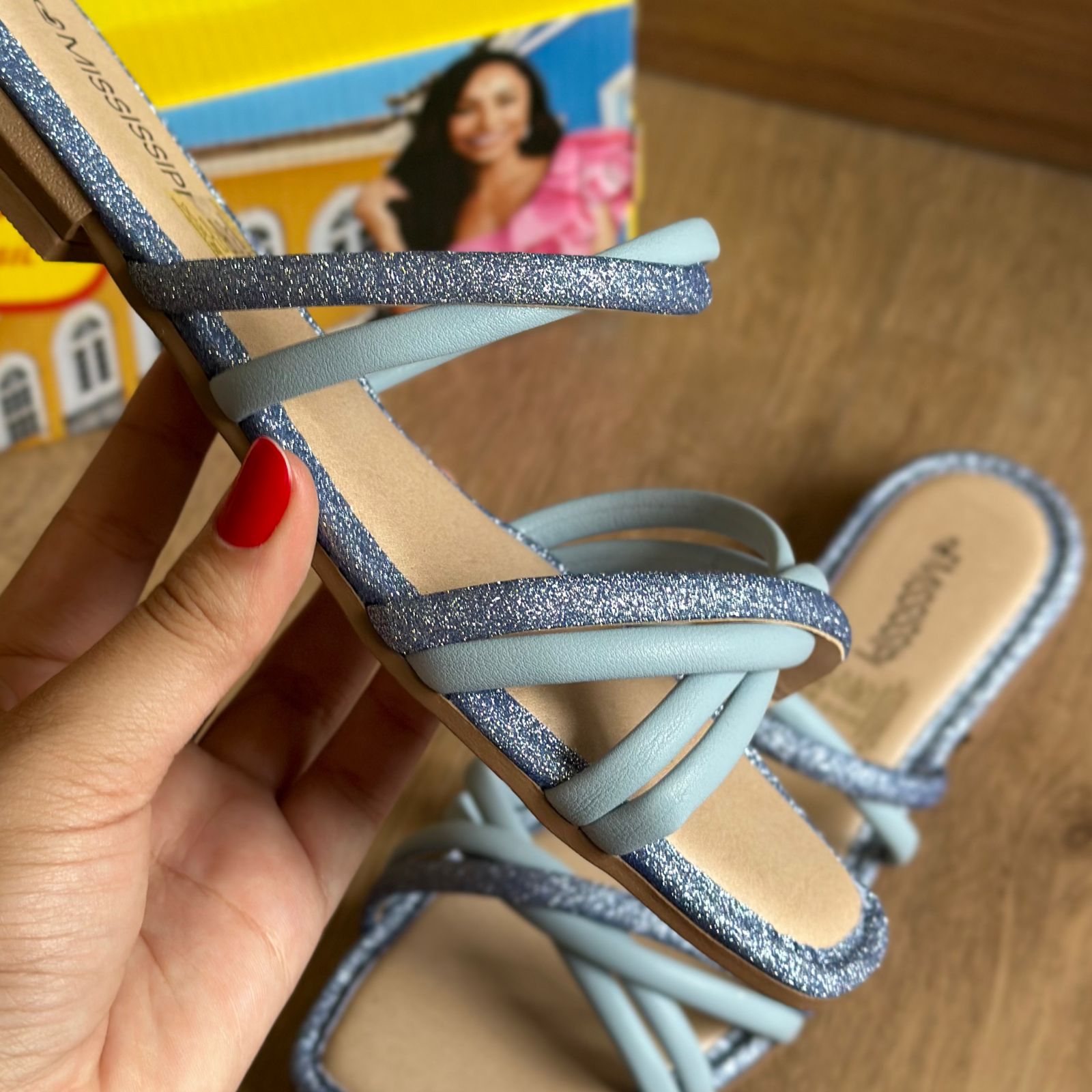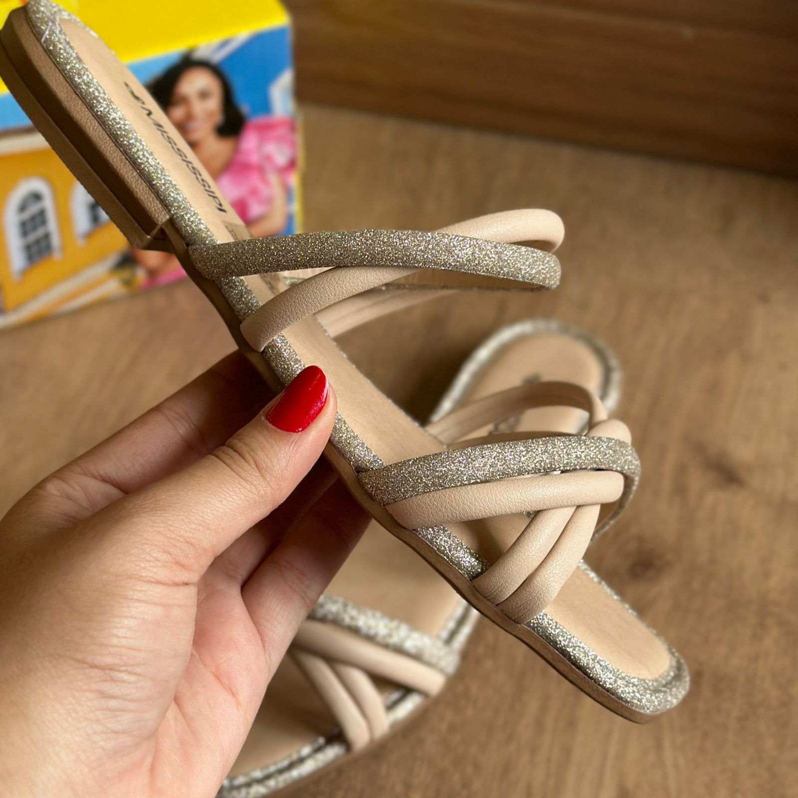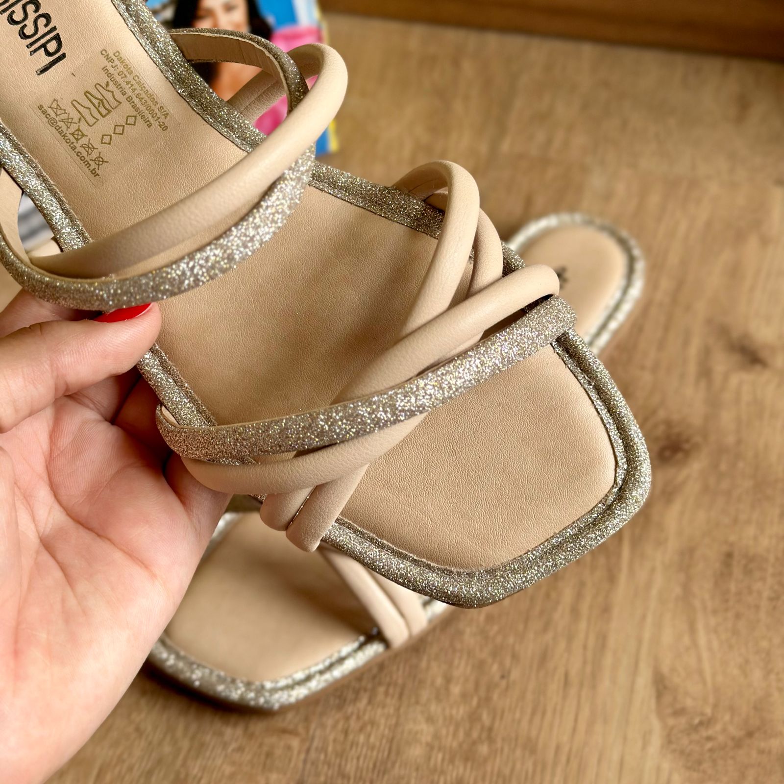 O Slide Mississipi com Brilhos é a escolha ideal para quem procura por um calçado versátil, moderno e confortável para os dias de calor. Com contorno quadrado da sola, este slide é composto por tiras finas entrelaçadas que proporcionam um visual minimalista e elegante. O grande destaque deste modelo são os brilhos nas tiras, que adicionam um toque de sofisticação e brilho ao calçado.