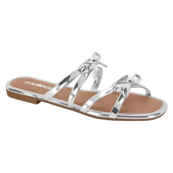Adicione um toque de brilho e diversão aos seus looks com a Sandália Rasteira Moleca Flat! Com acabamento metalizado e detalhe de laço, além de ser confortável e rasteira, é a escolha perfeita para arrasar por aí! (E ainda por cima, super fashion!)