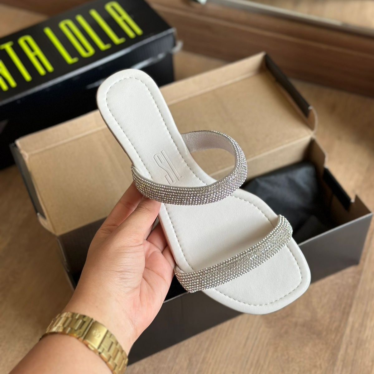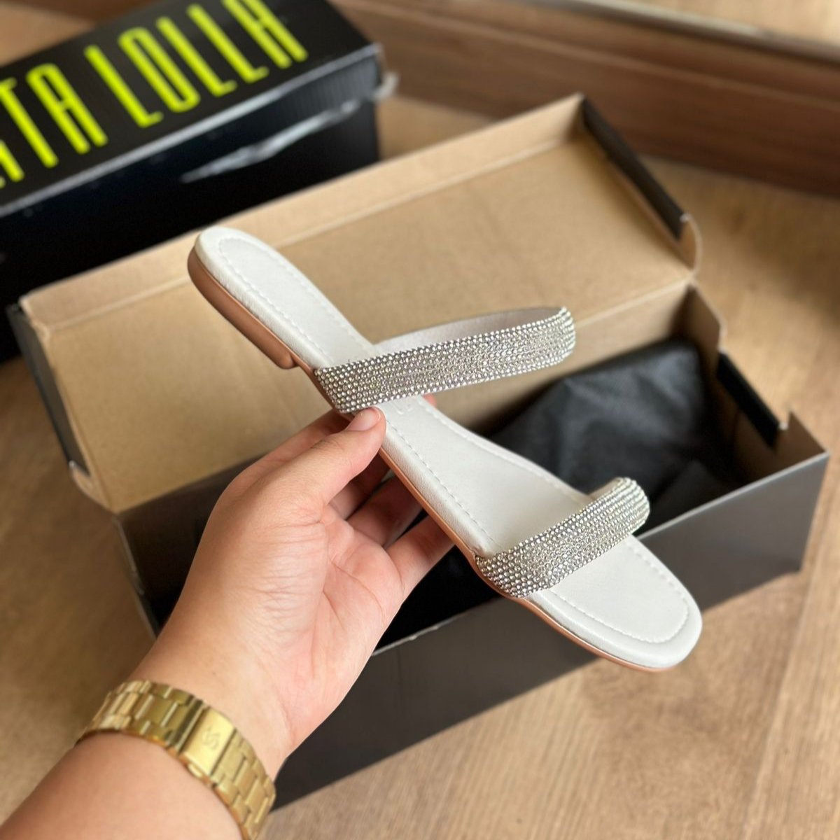 Sandália Rasteira Santa Lolla Bico Quadrado Brilho 01F7.452F.00D2