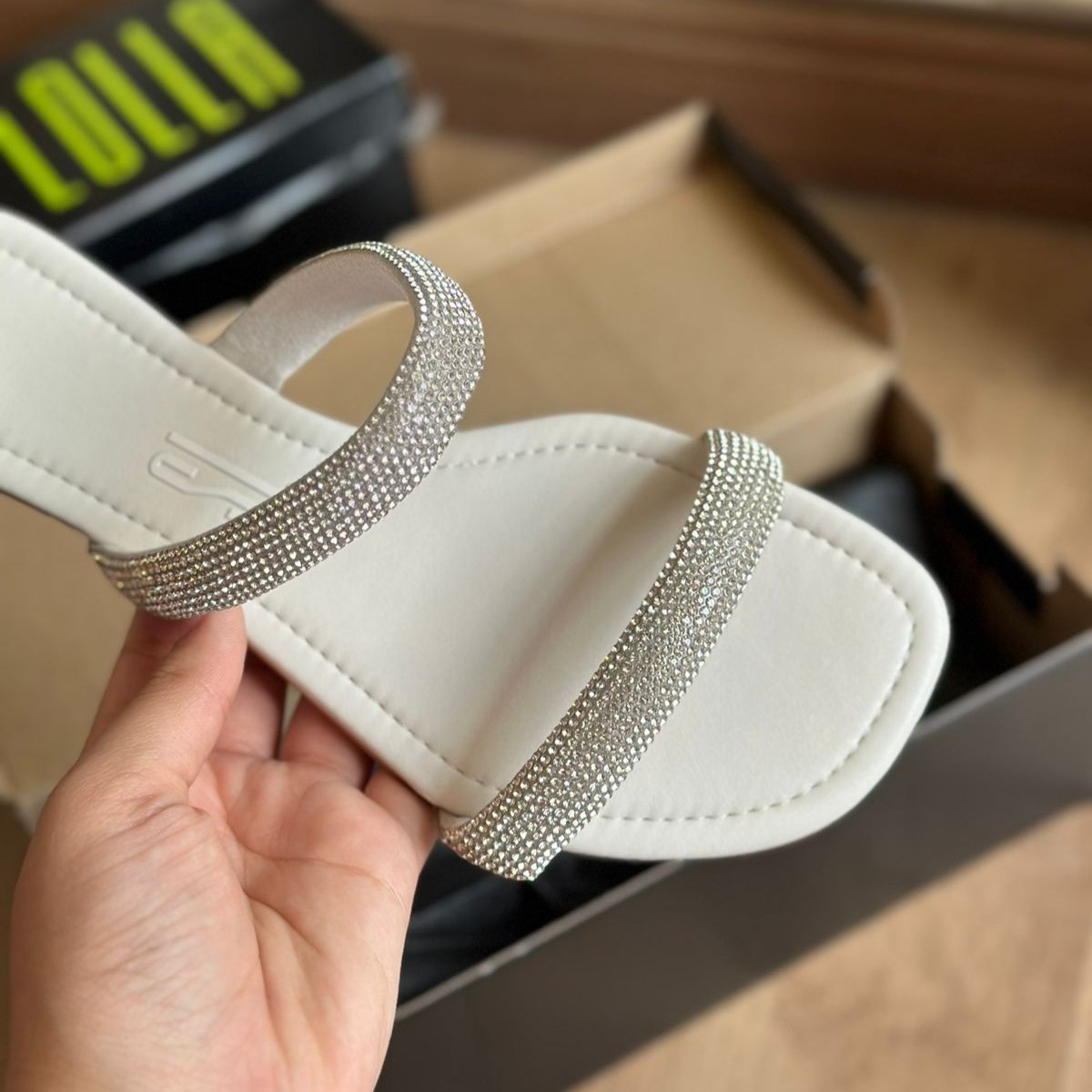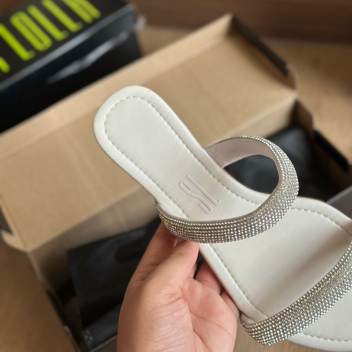 Rasteira confeccionada em manta cristal, salto flat, bico quadrado e tiras com brilhos, é uma escolha perfeita para quem busca conforto e estilo. Seus detalhes sofisticados e design versátil fazem dela um calçado ideal para diversas ocasiões, garantindo elegância e praticidade em qualquer look.