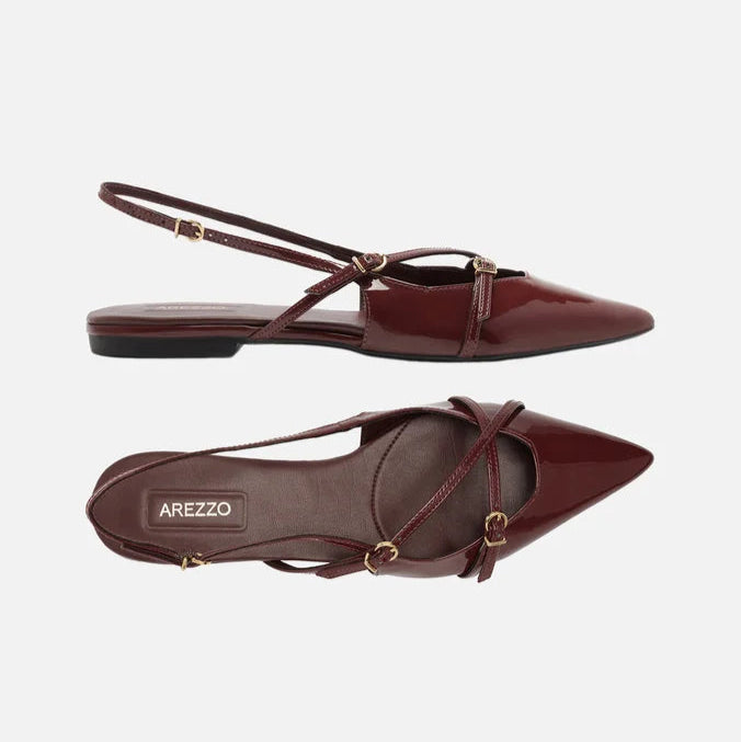 Sapatilha Arezzo Verniz Slingback Tiras Fivelas A132190004